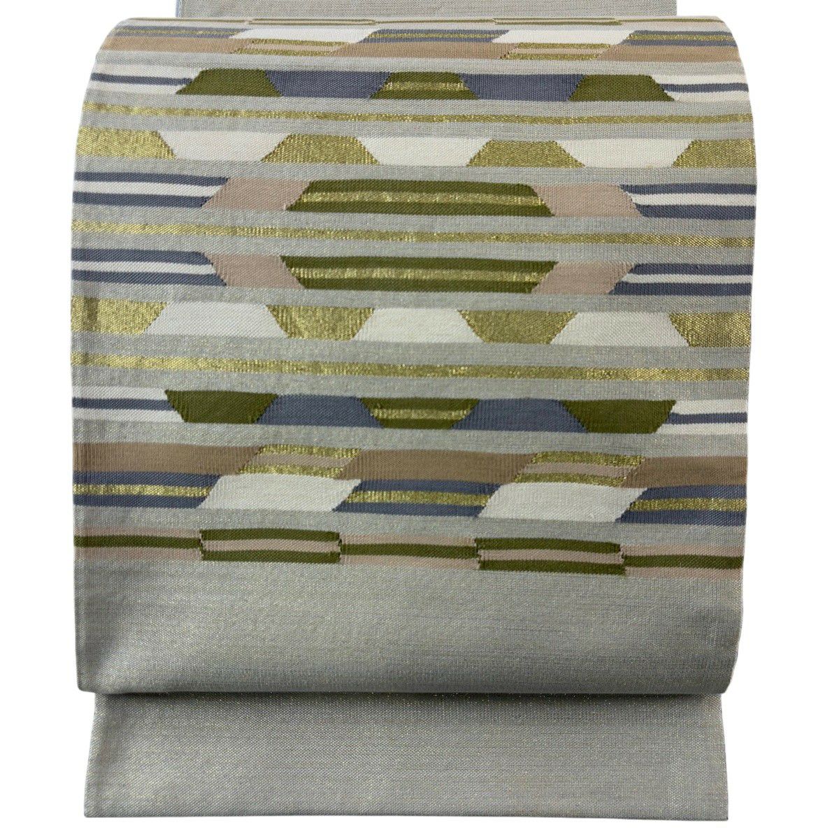 70%OFF 袋帯 秀品 幾何学模様 ぼかし 灰緑 全通 正絹 K70