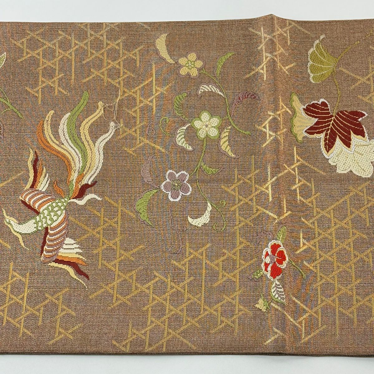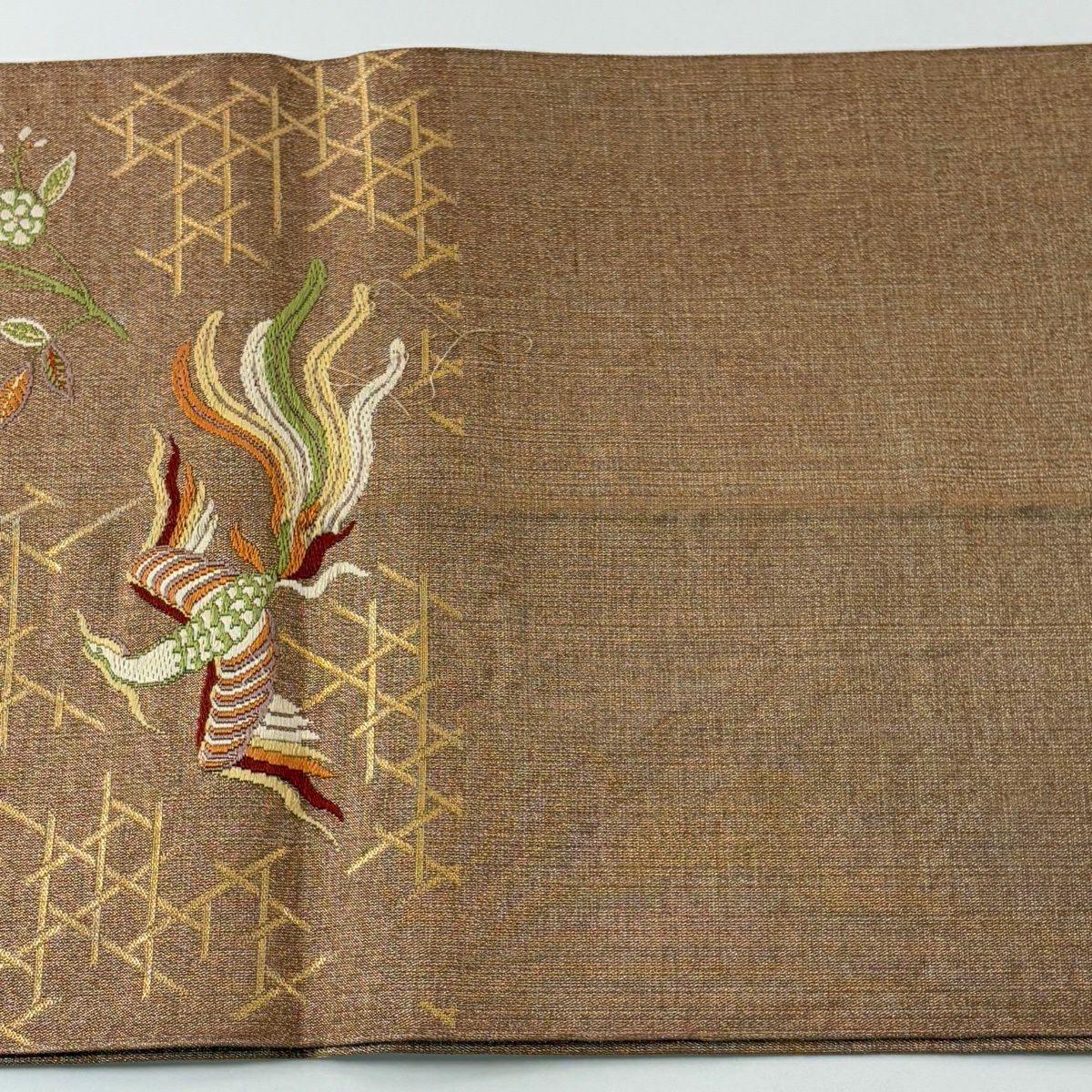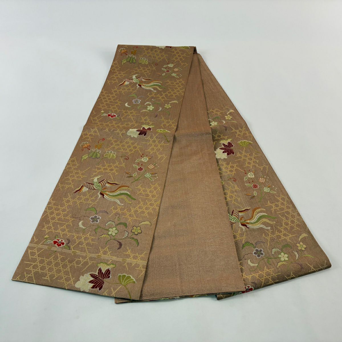 50%OFF 名古屋帯 秀品 華文 花鳥 金銀彩 箔 金色 正絹 K50
