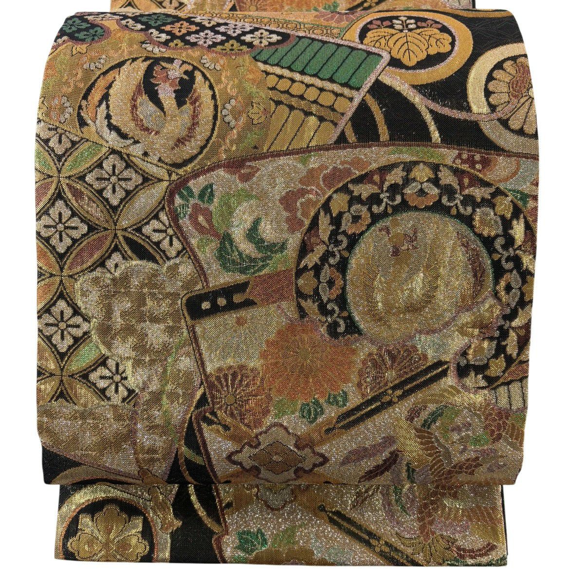 70%OFF 名古屋帯 秀品 生り物 丸文 金糸 金彩 黒 正絹 K70