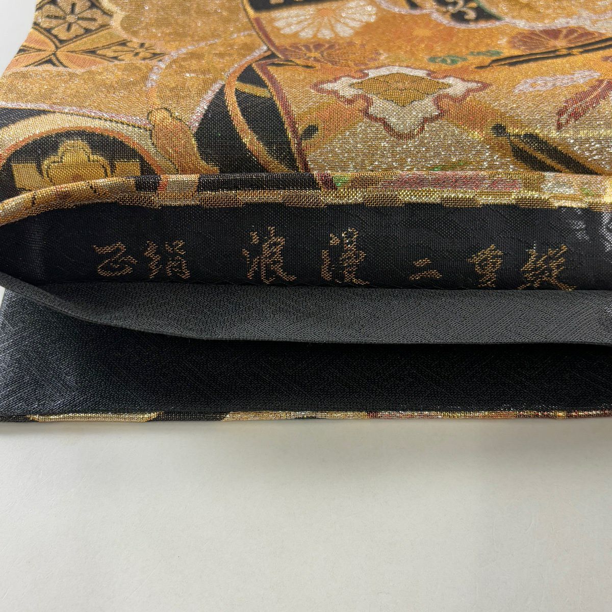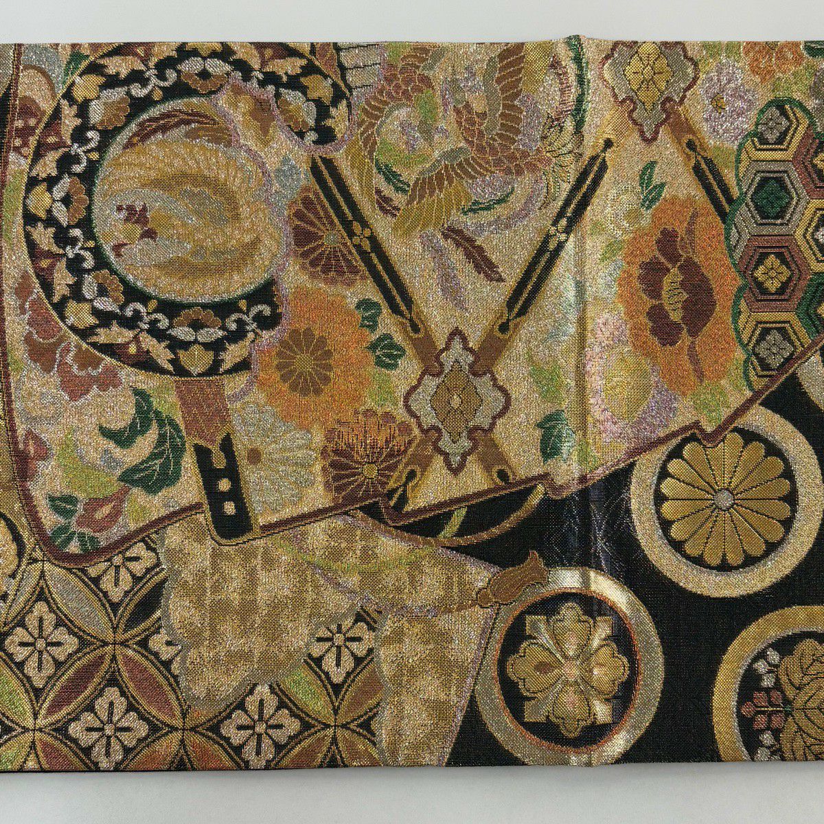 70%OFF 【美品】 袋帯 秀品 菊 椿 箔 黒 六通 正絹 K70