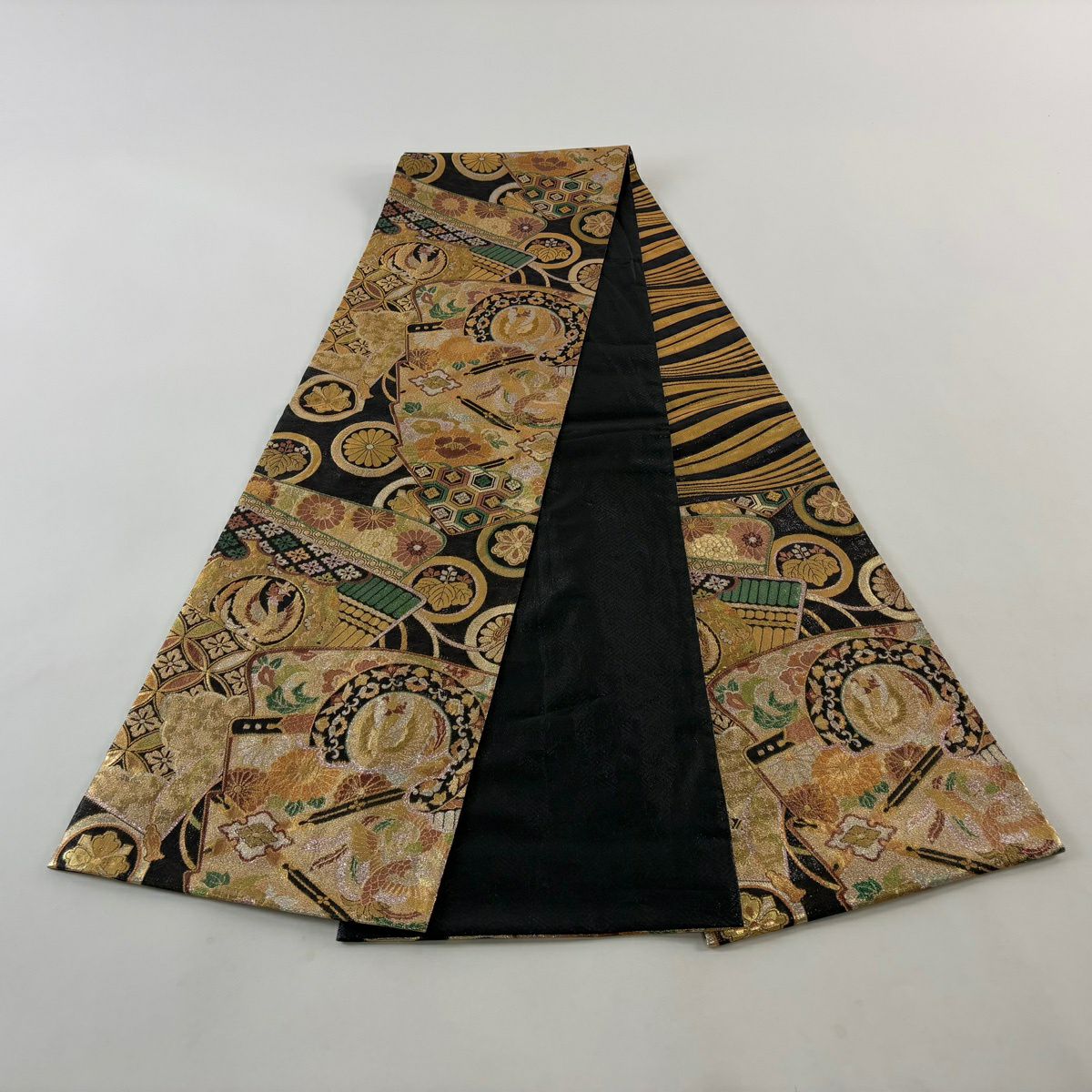 50%OFF 袋帯 秀品 扇面 蝶 唐織 金糸 金色 六通 正絹 K50
