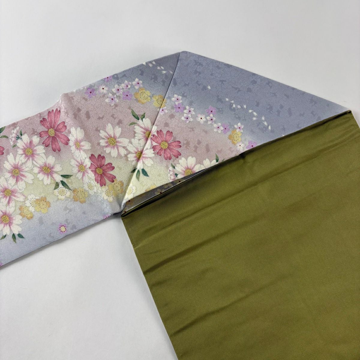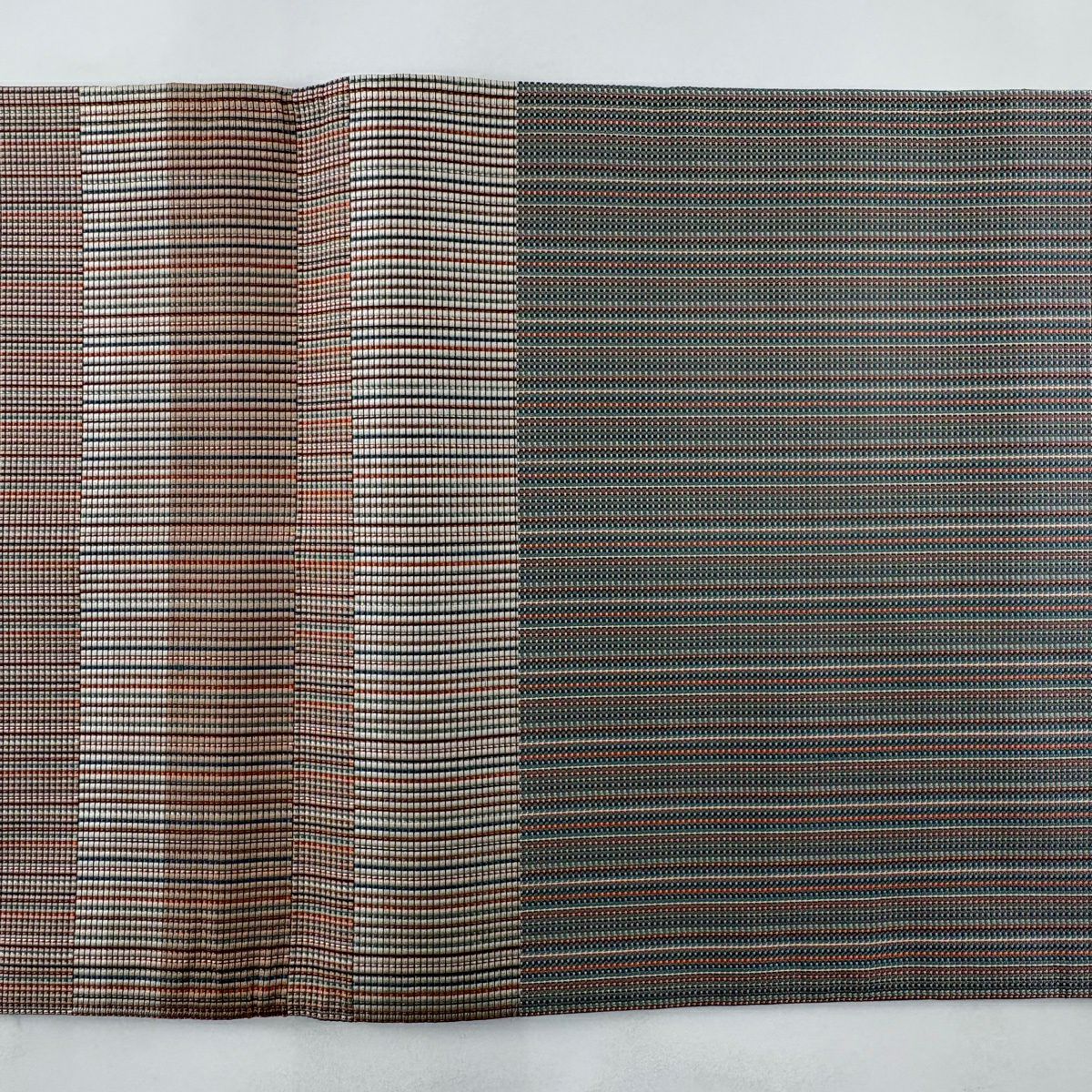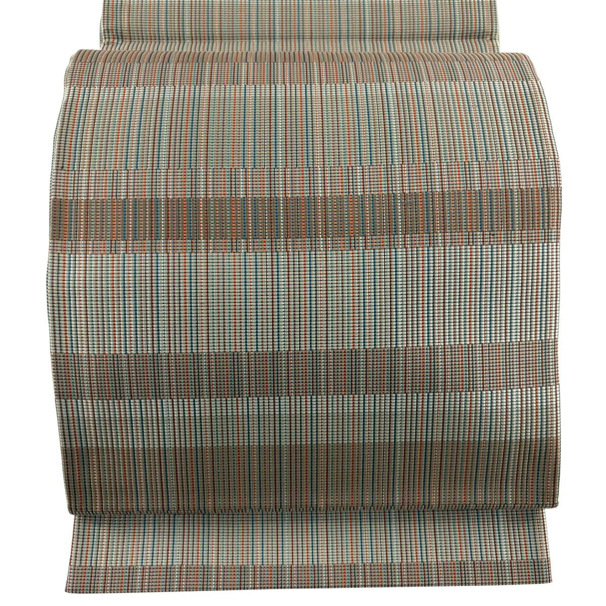 【美品】半幅帯 秀品 花柄 縞 灰緑 正絹