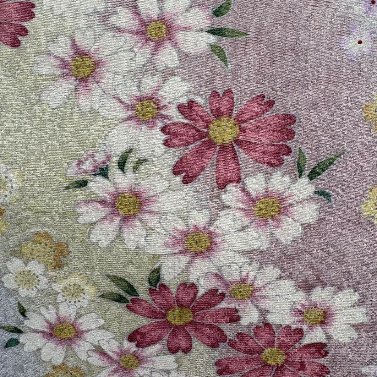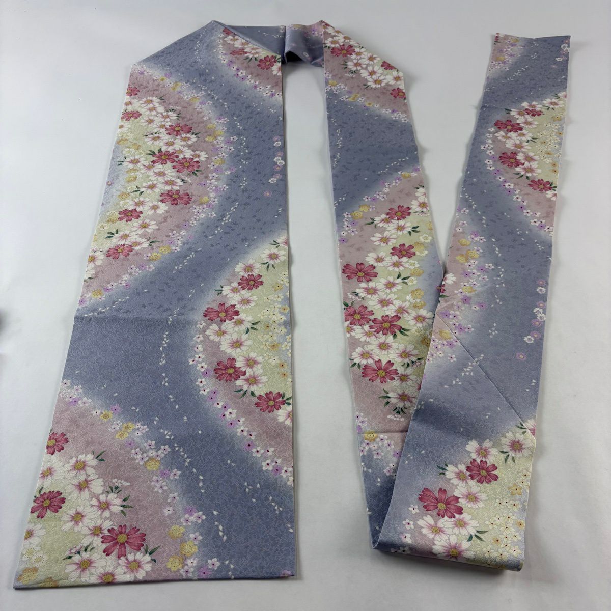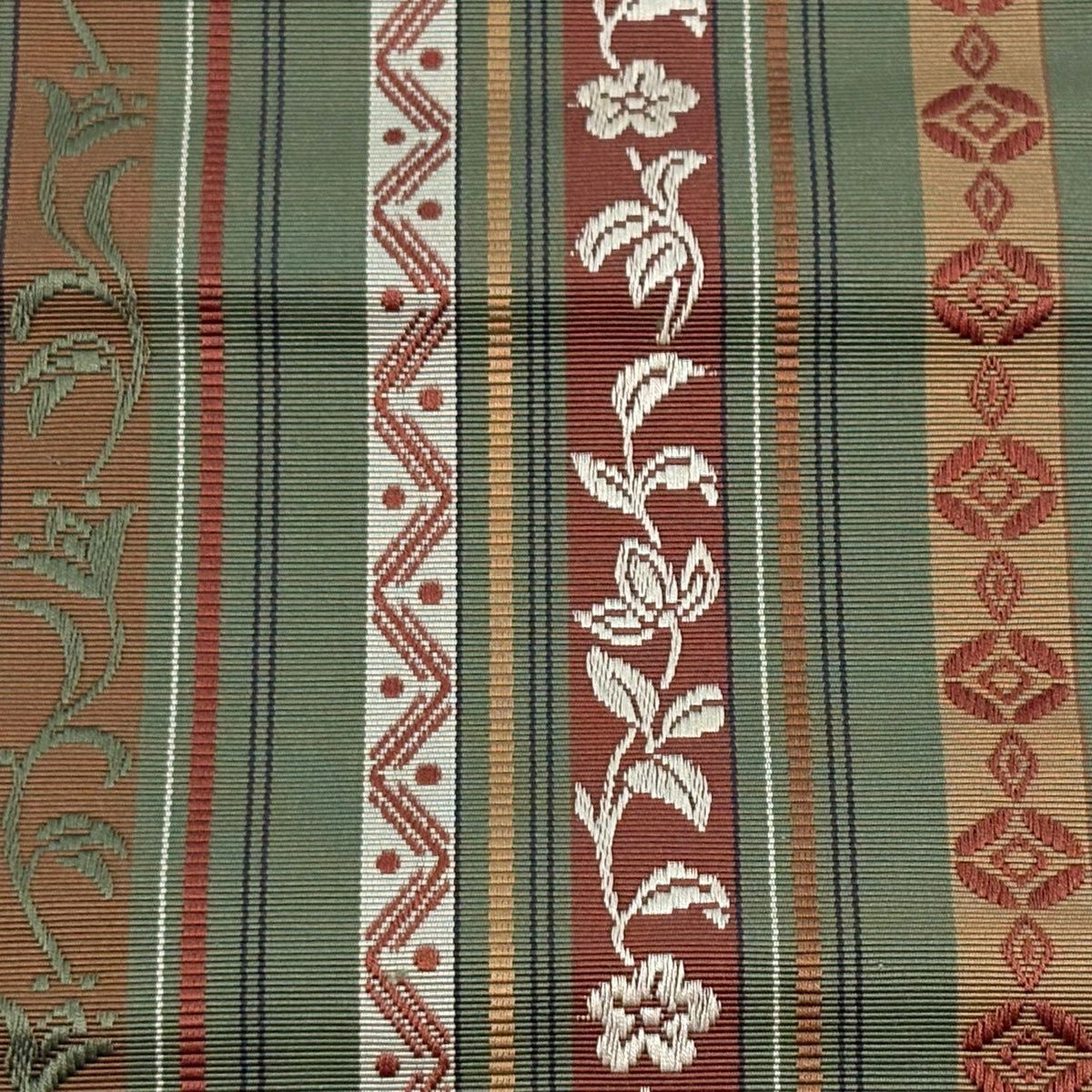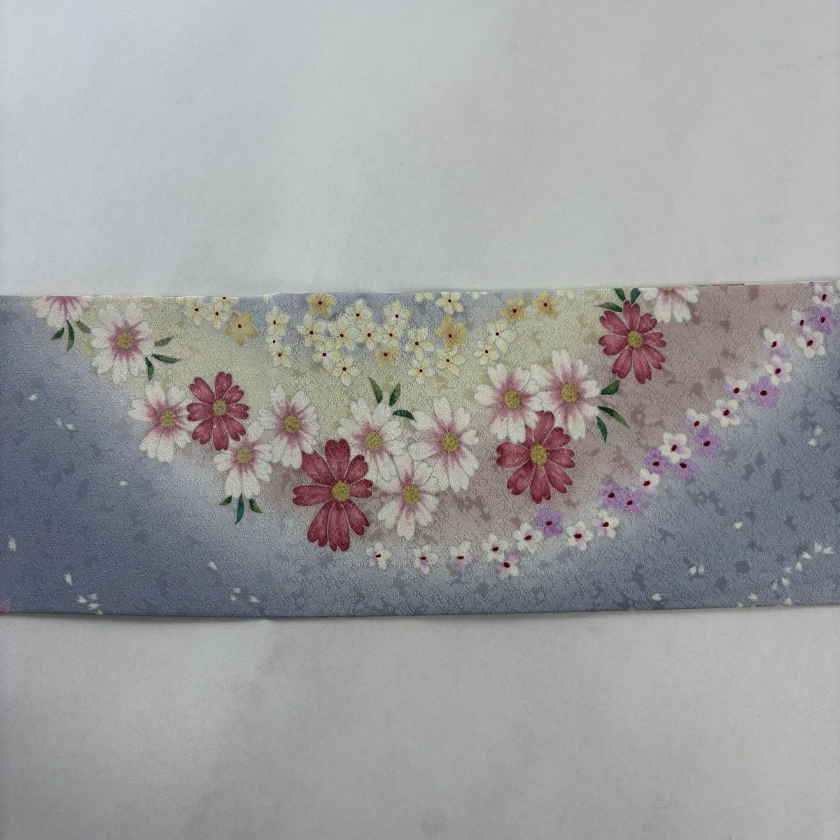 【美品】半幅帯 秀品 花柄 縞 灰緑 正絹