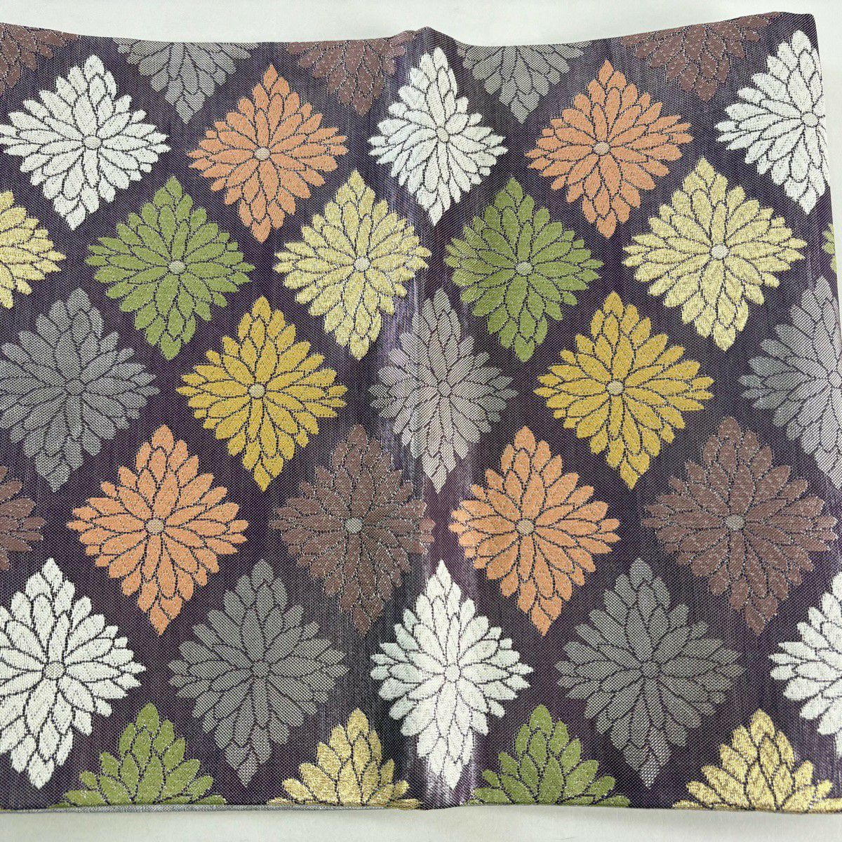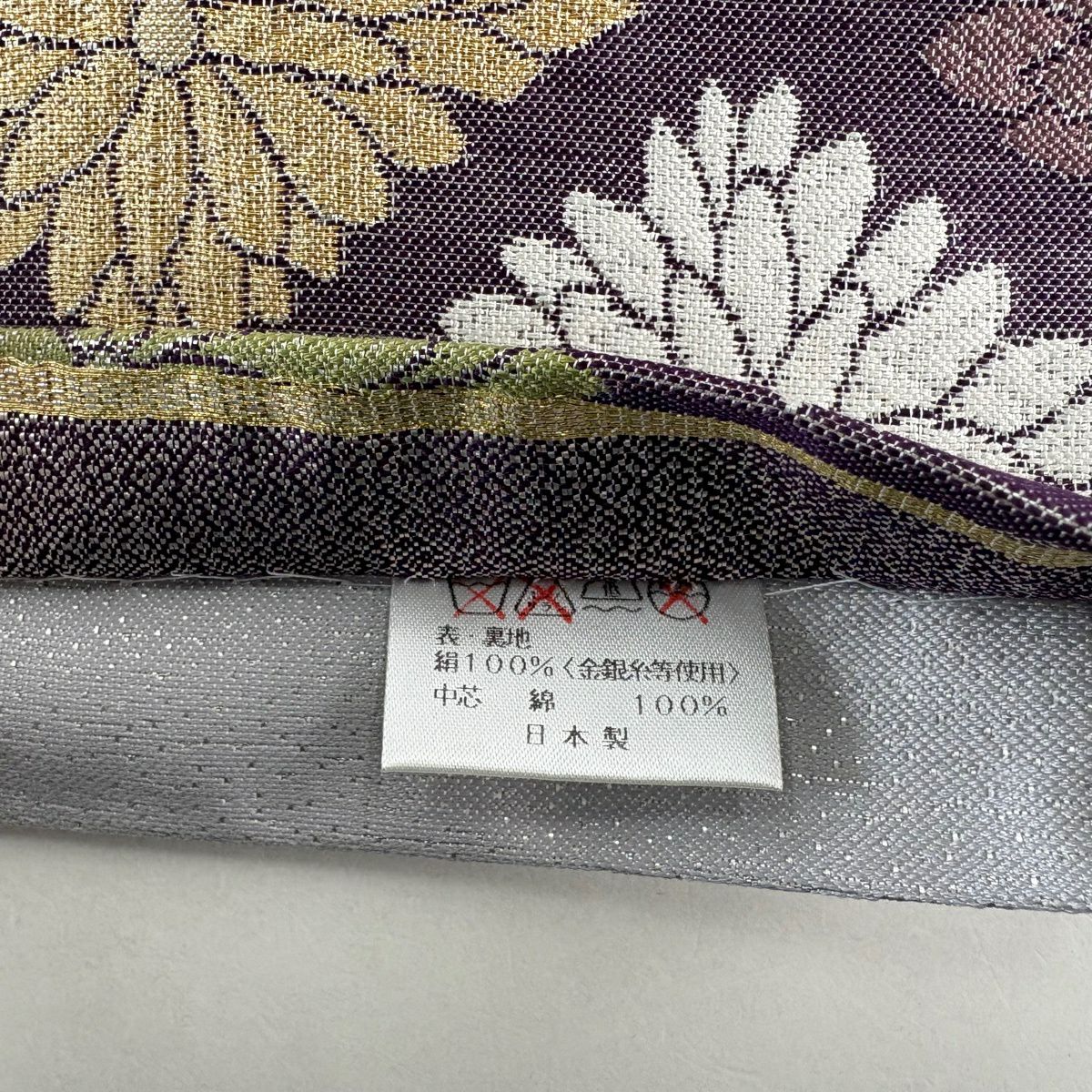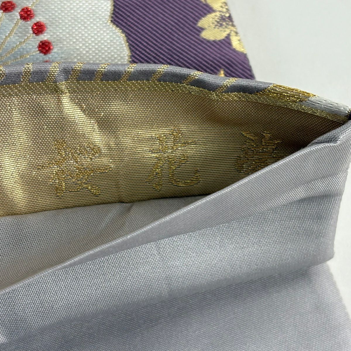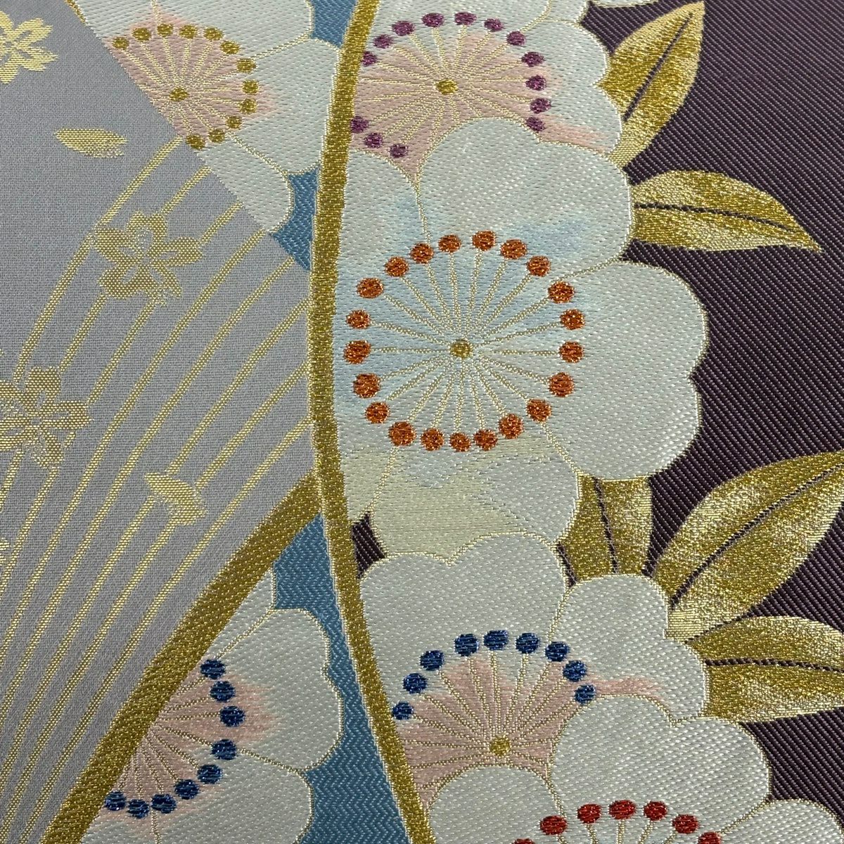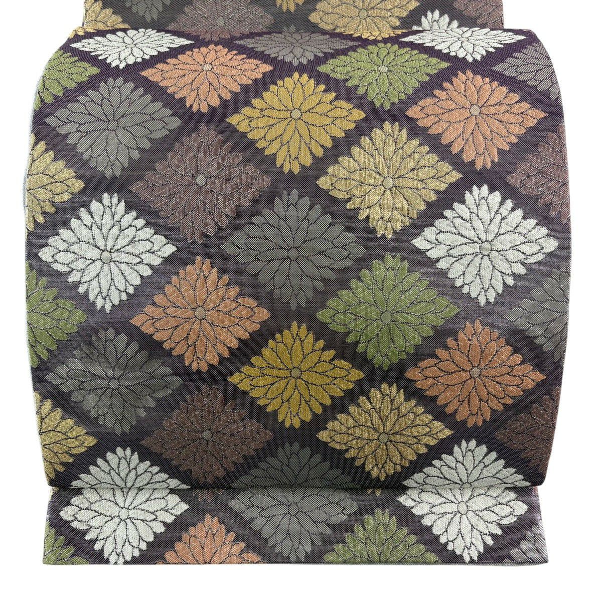 袋帯 秀品 花菱 金糸 箔 紫 六通 正絹