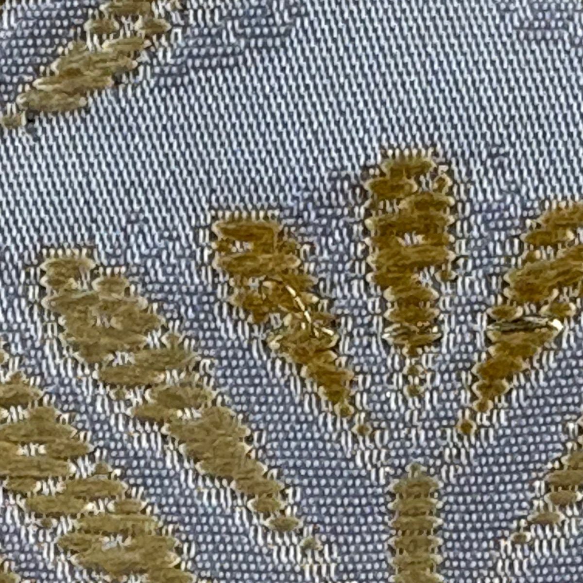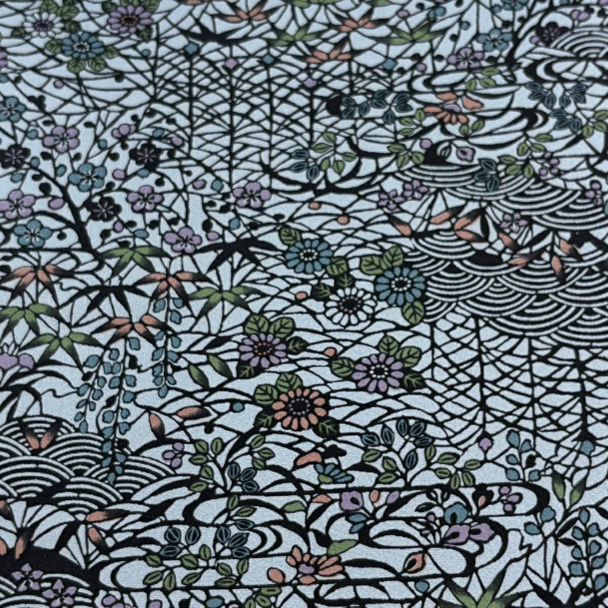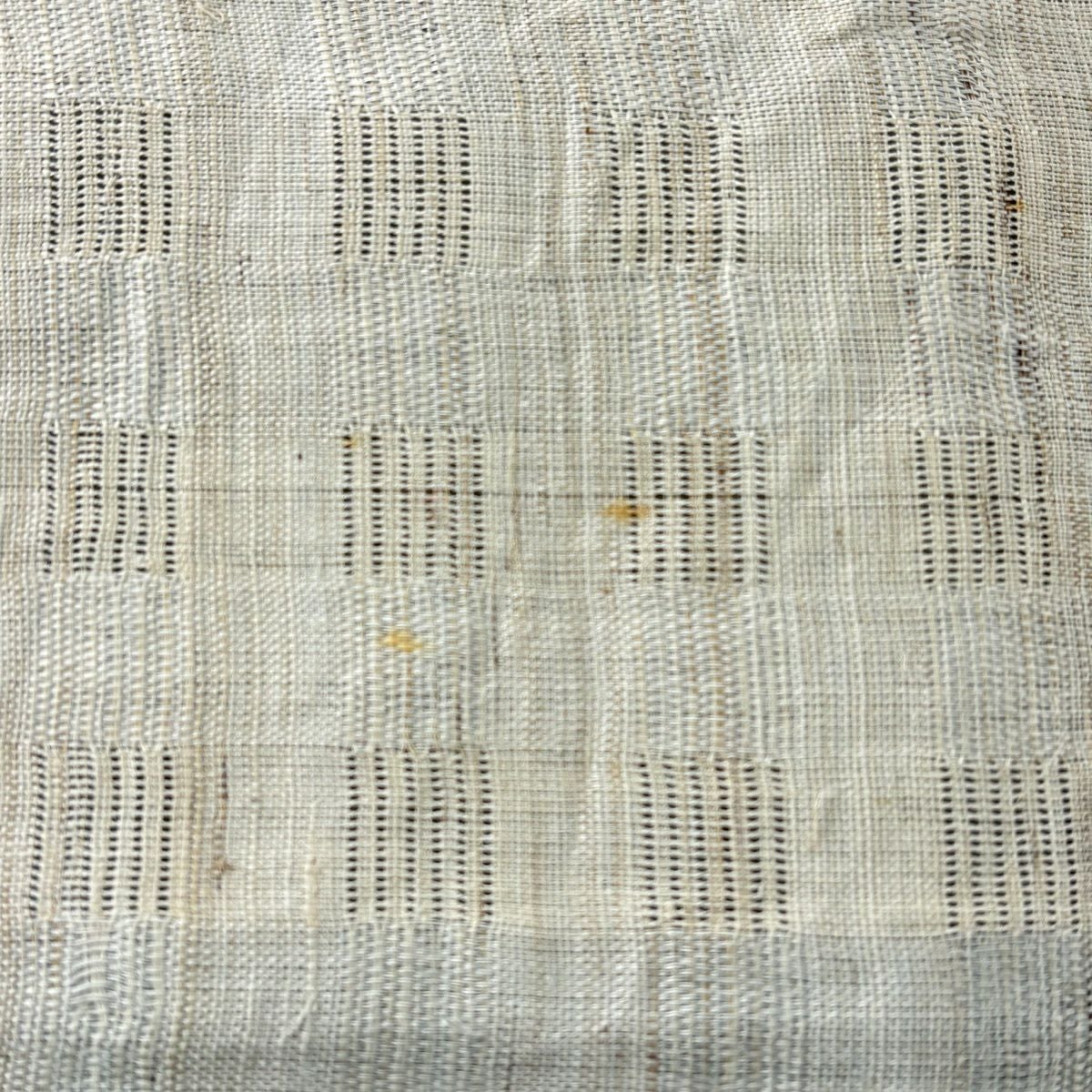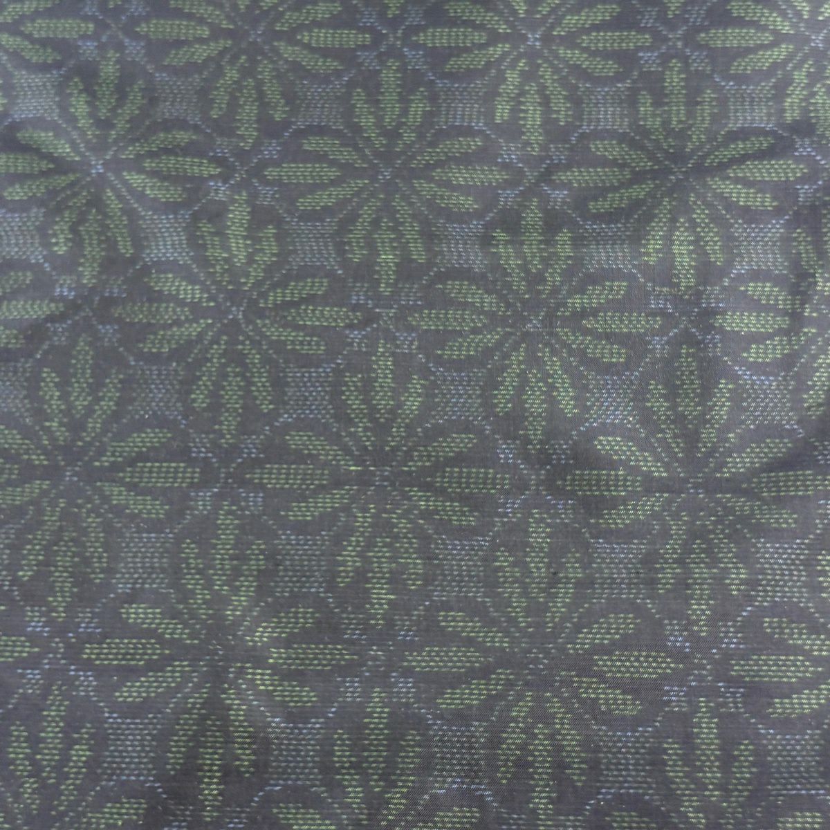 袋帯 秀品 格子 草花 青灰色 六通 正絹