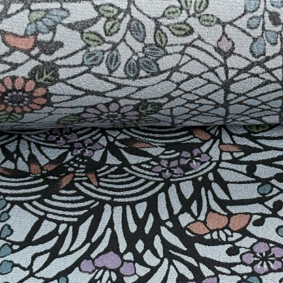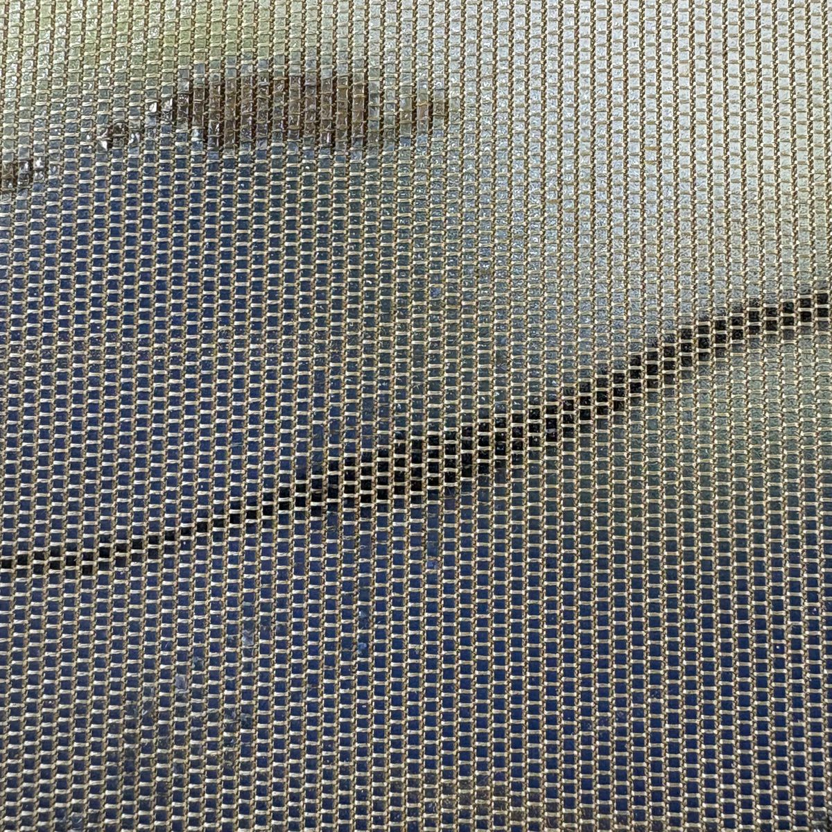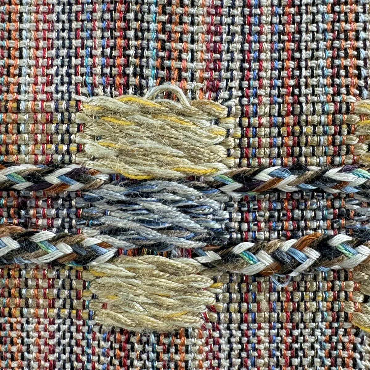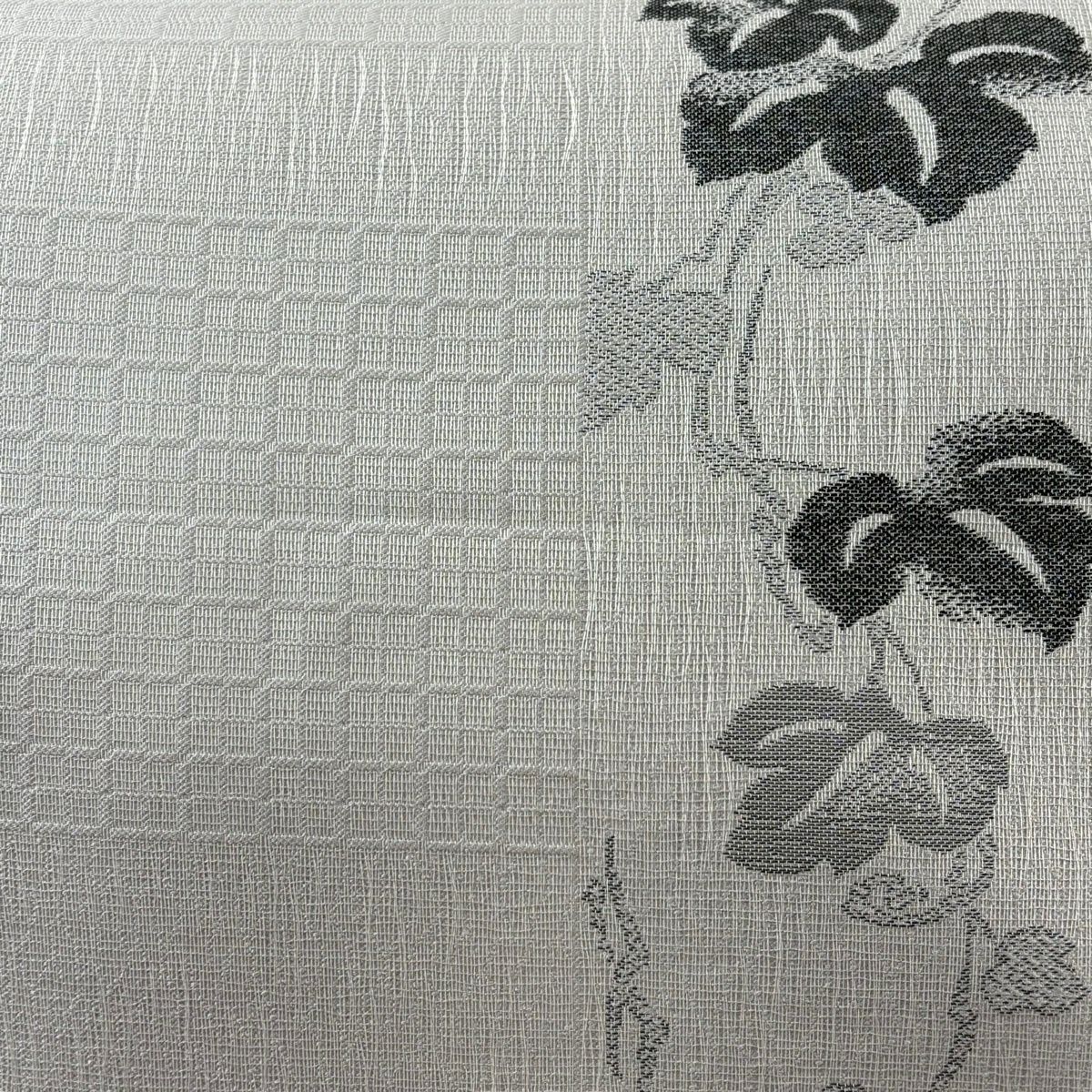 袋帯 秀品 格子 草花 青灰色 六通 正絹