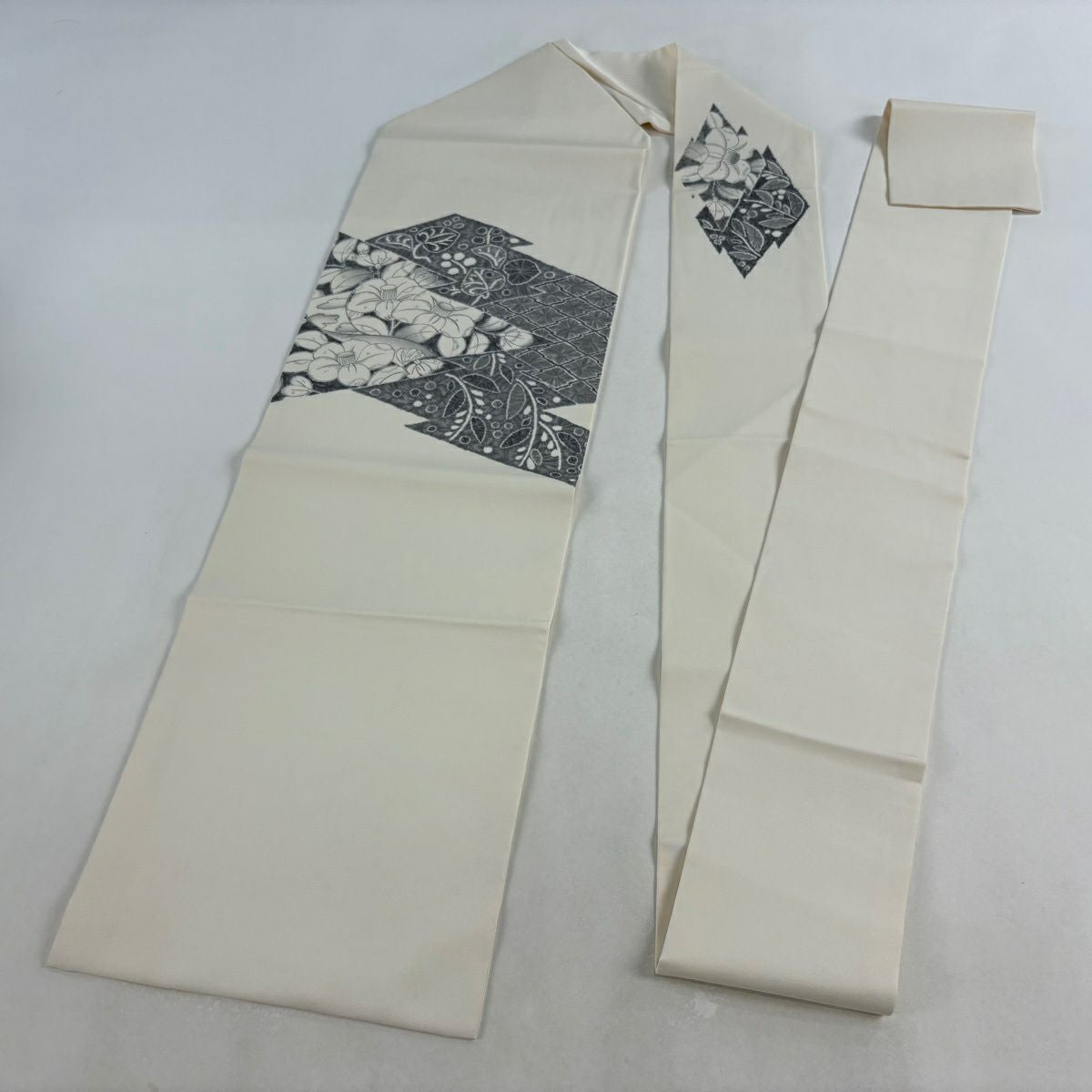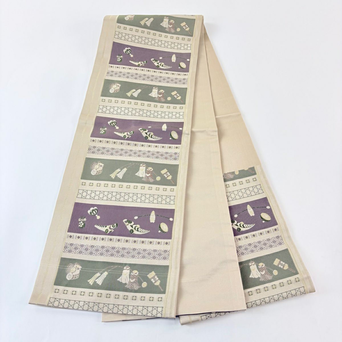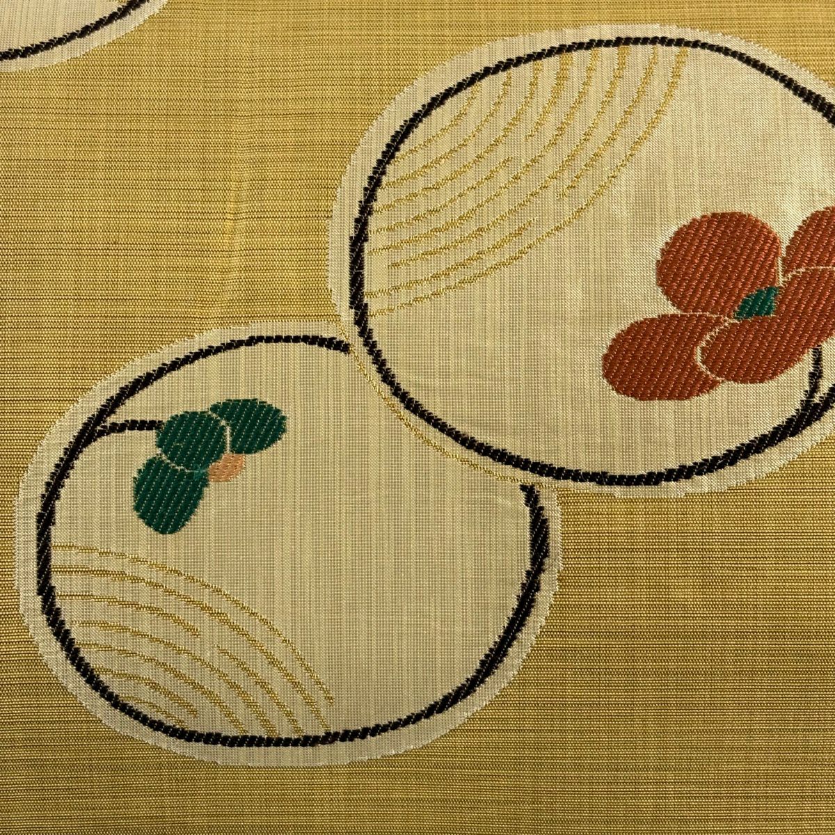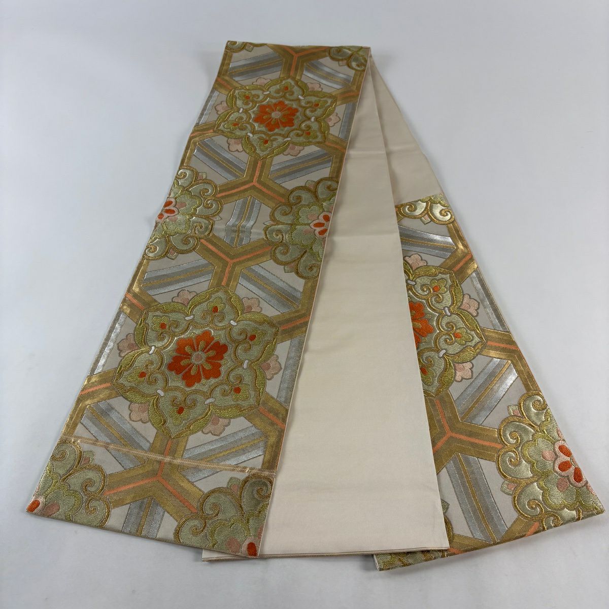 名古屋帯 秀品 椿 松皮菱 クリーム 正絹