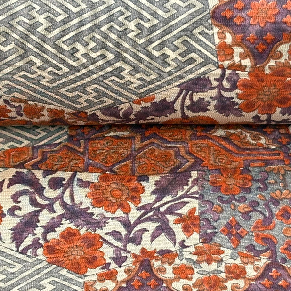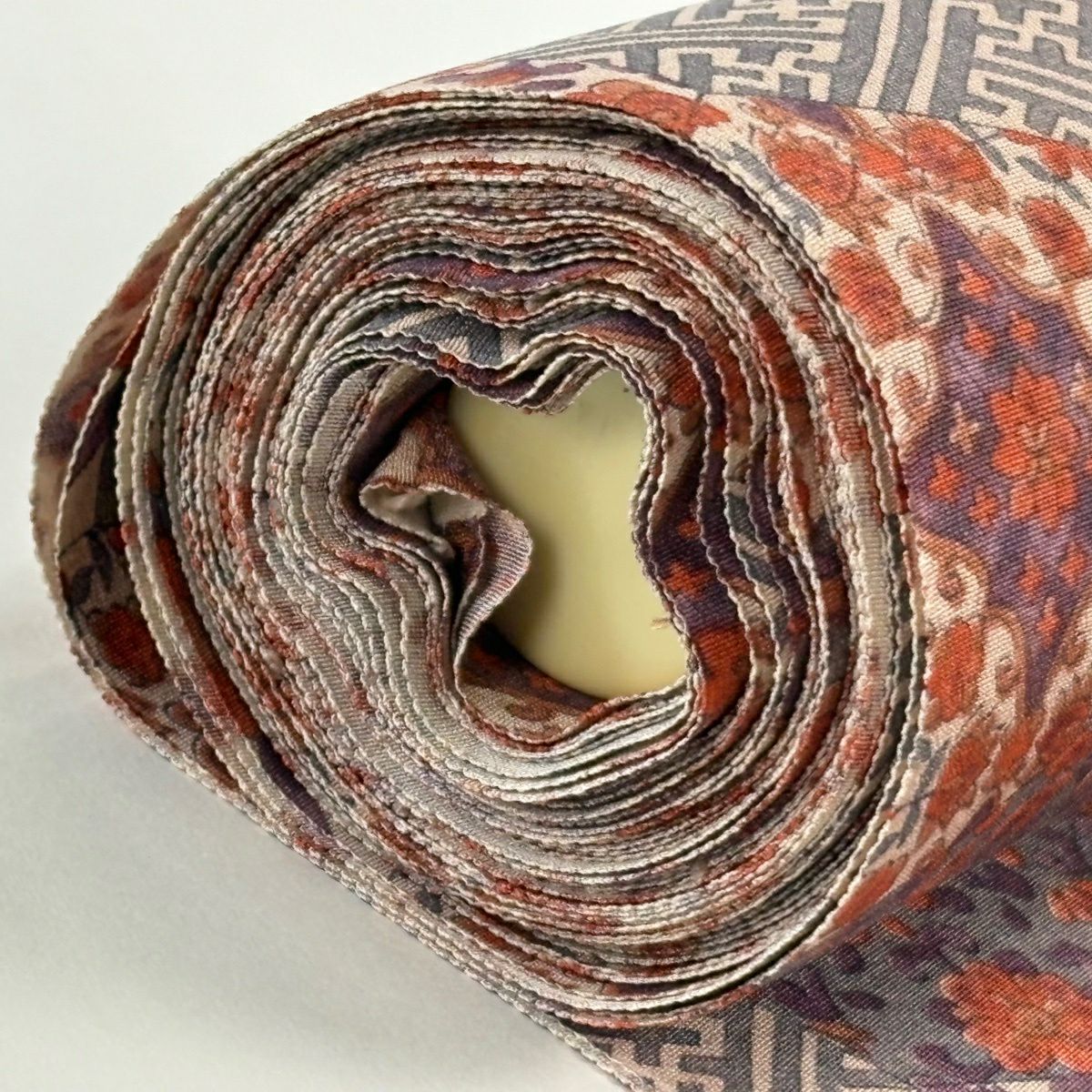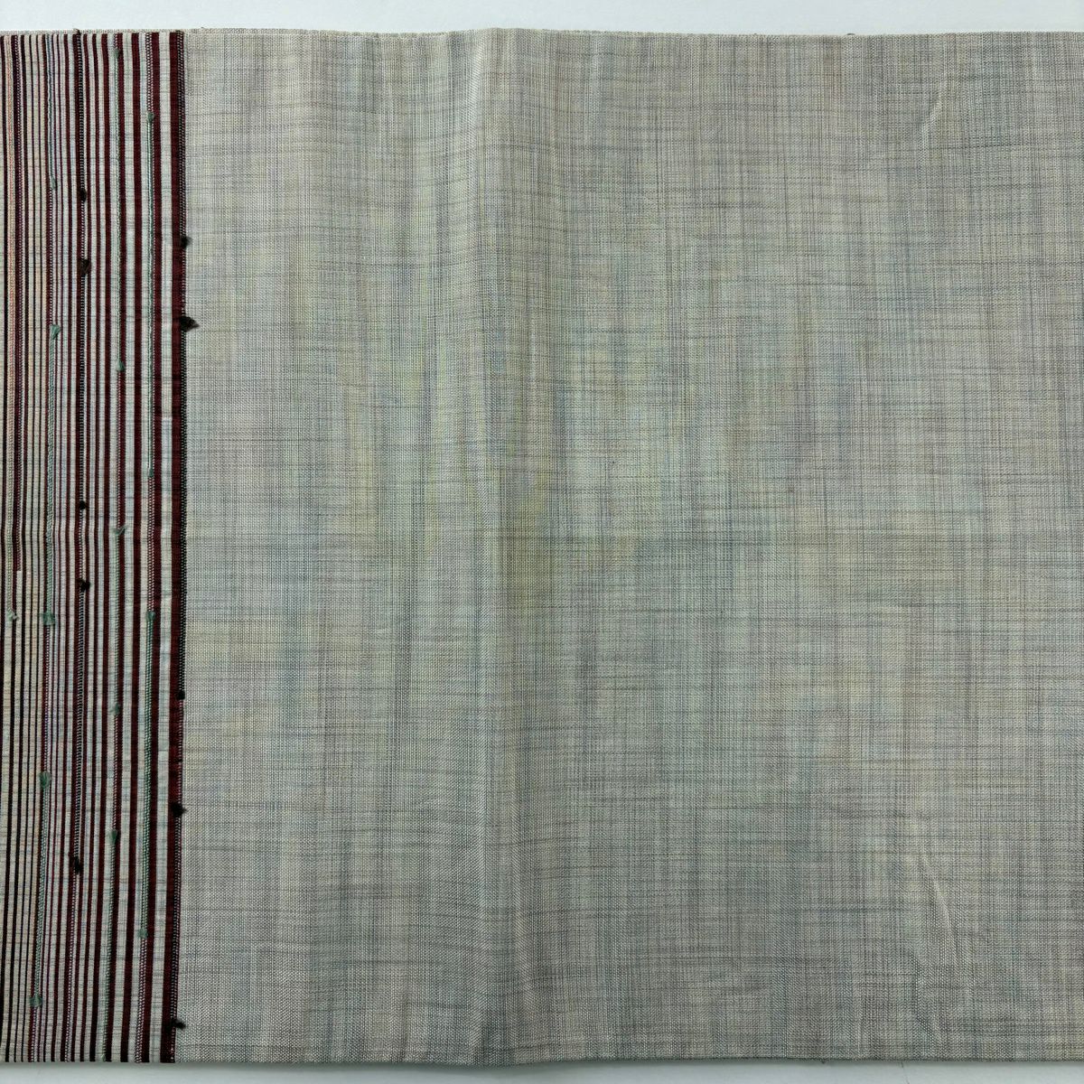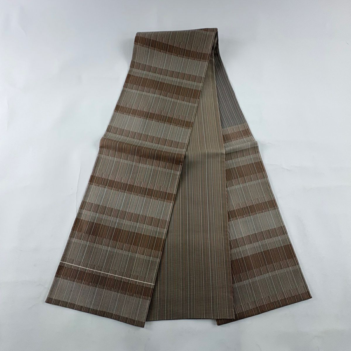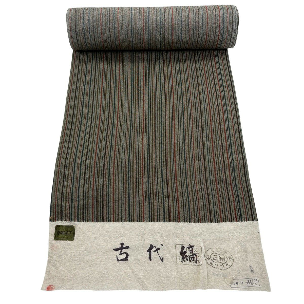 反物 秀品 小紋 古代縞 縮緬 灰茶 正絹
