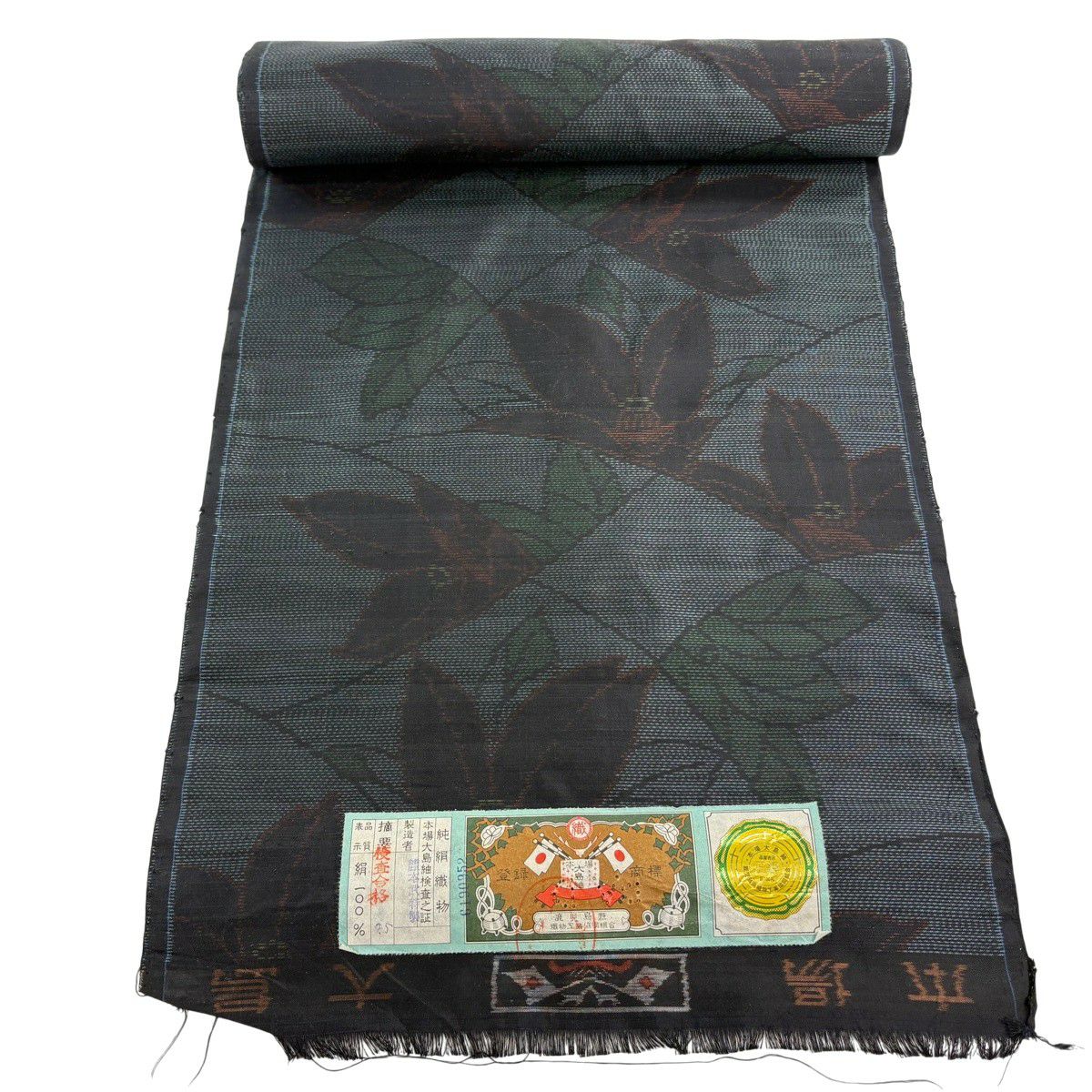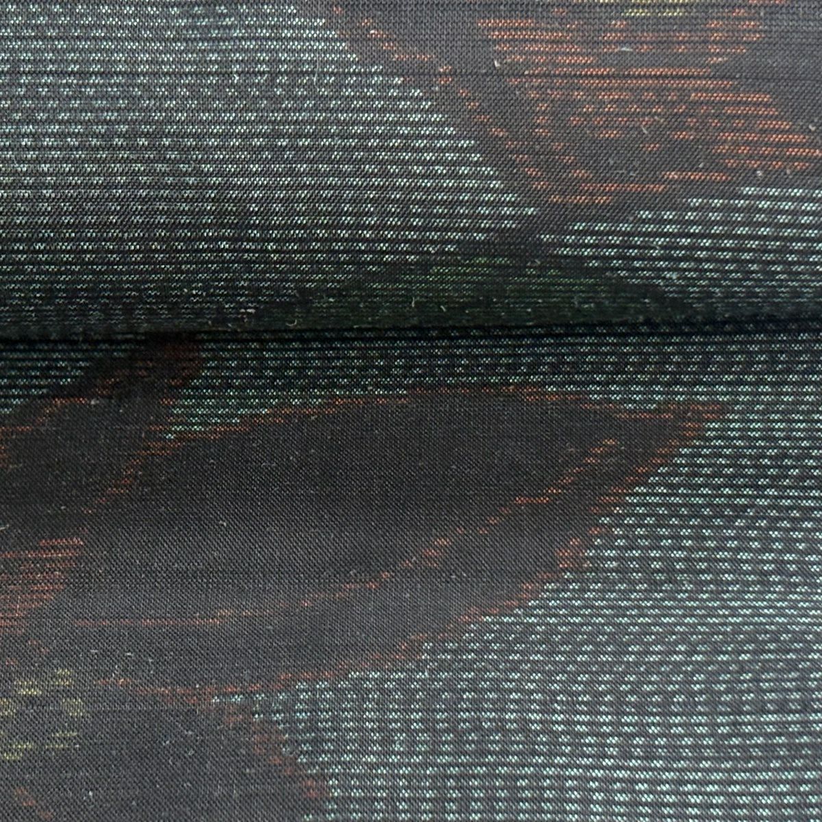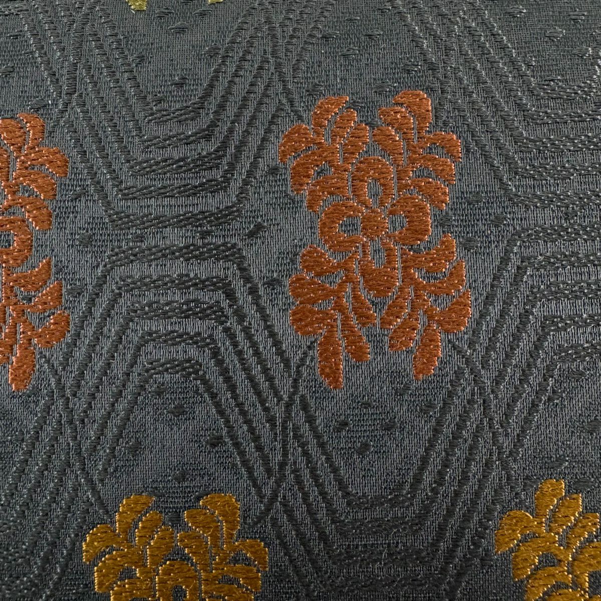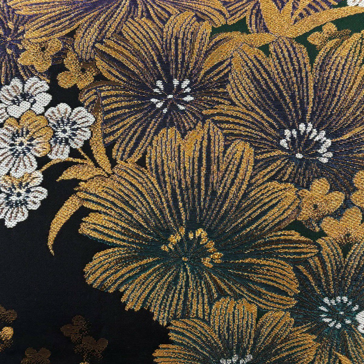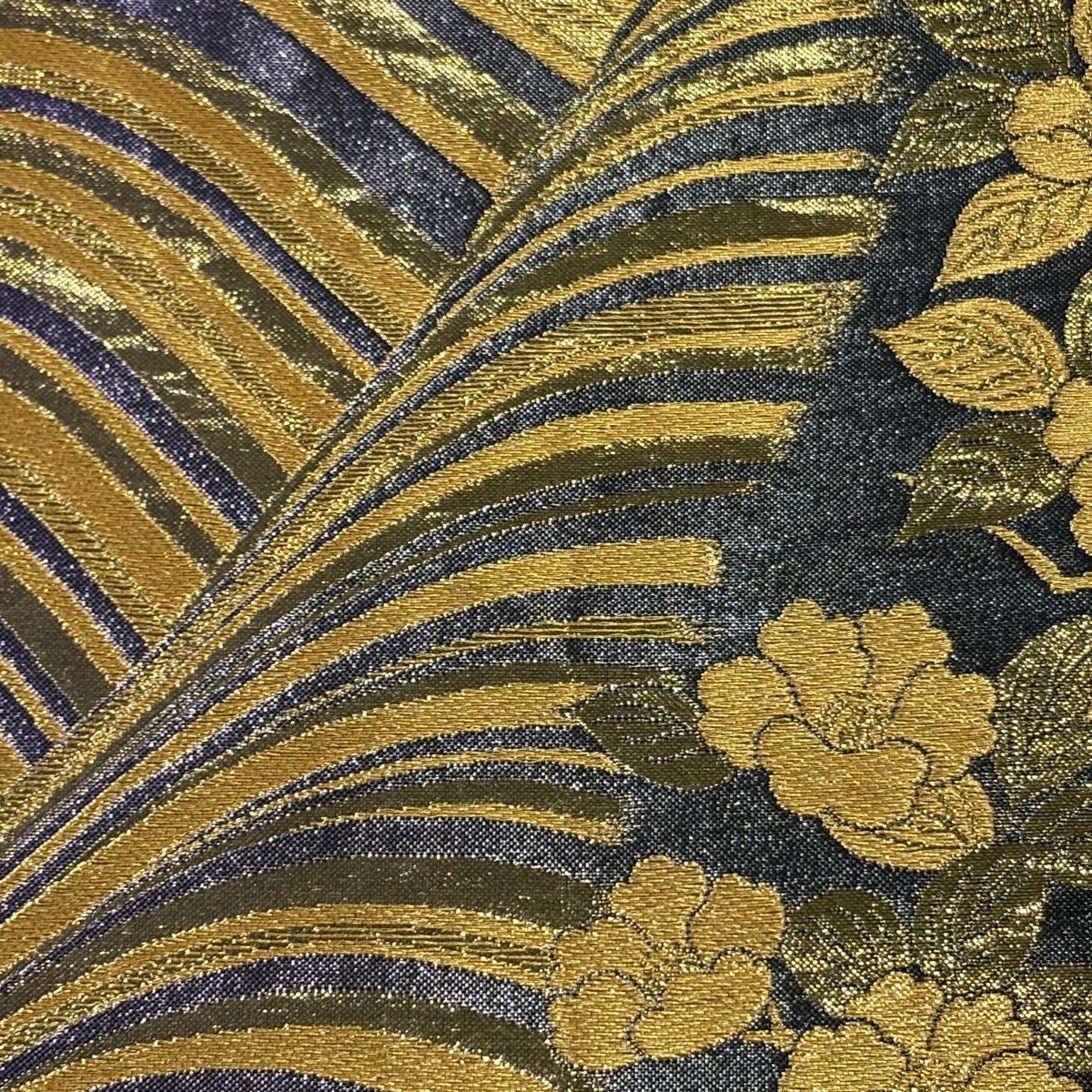 袋帯 秀品 枝花 波 箔 墨色 全通 正絹