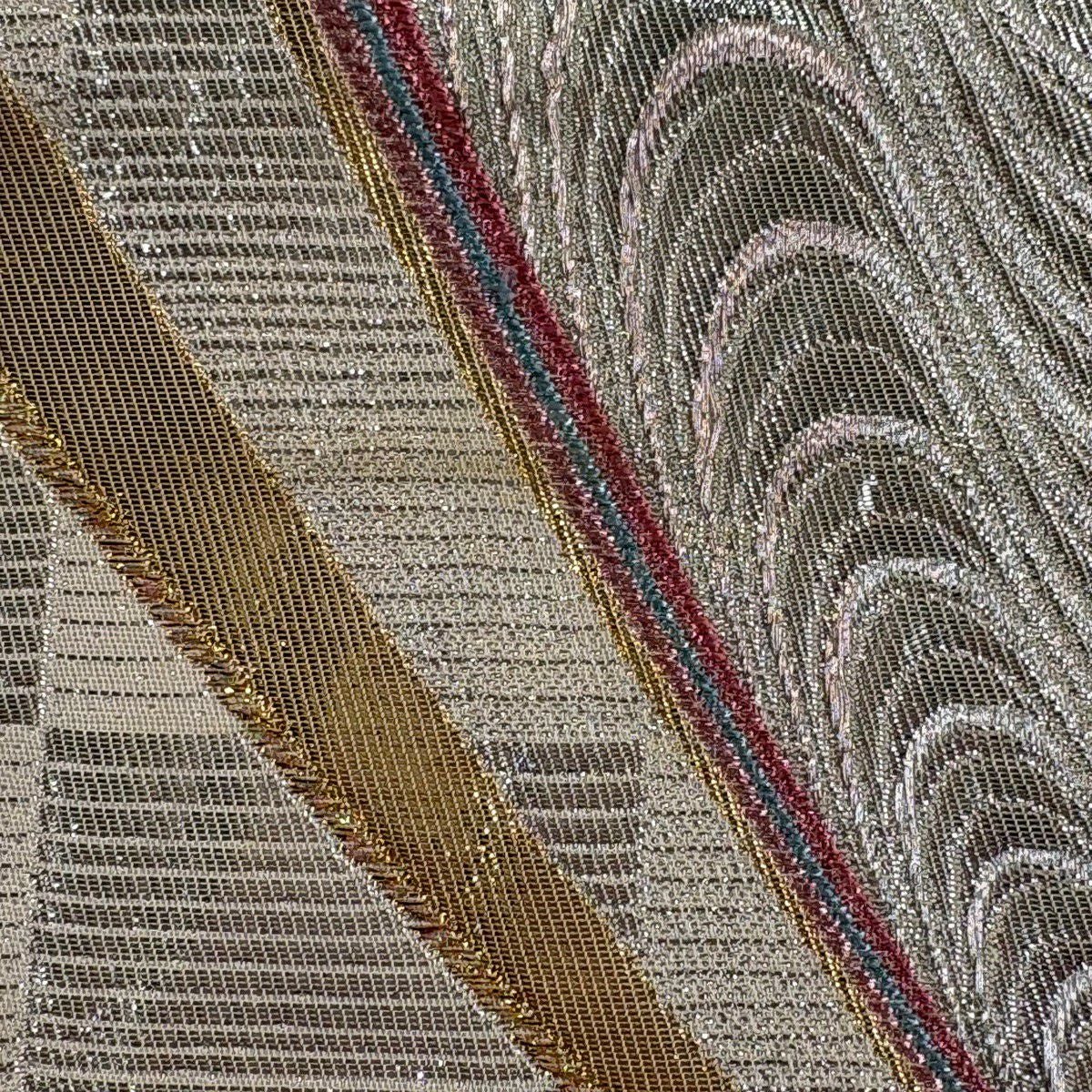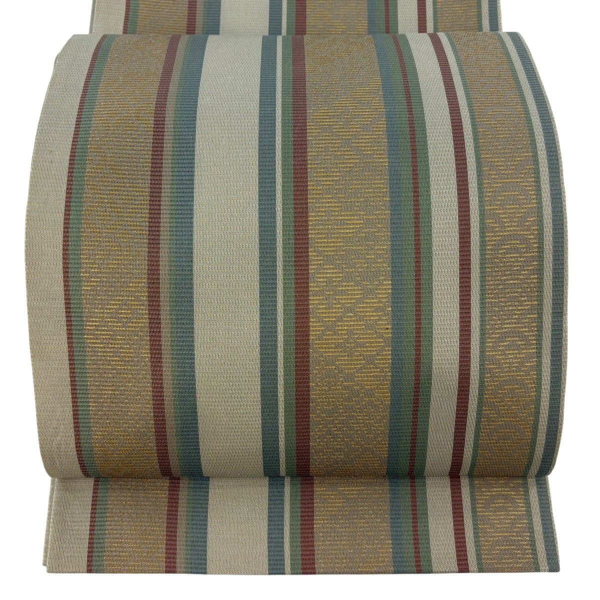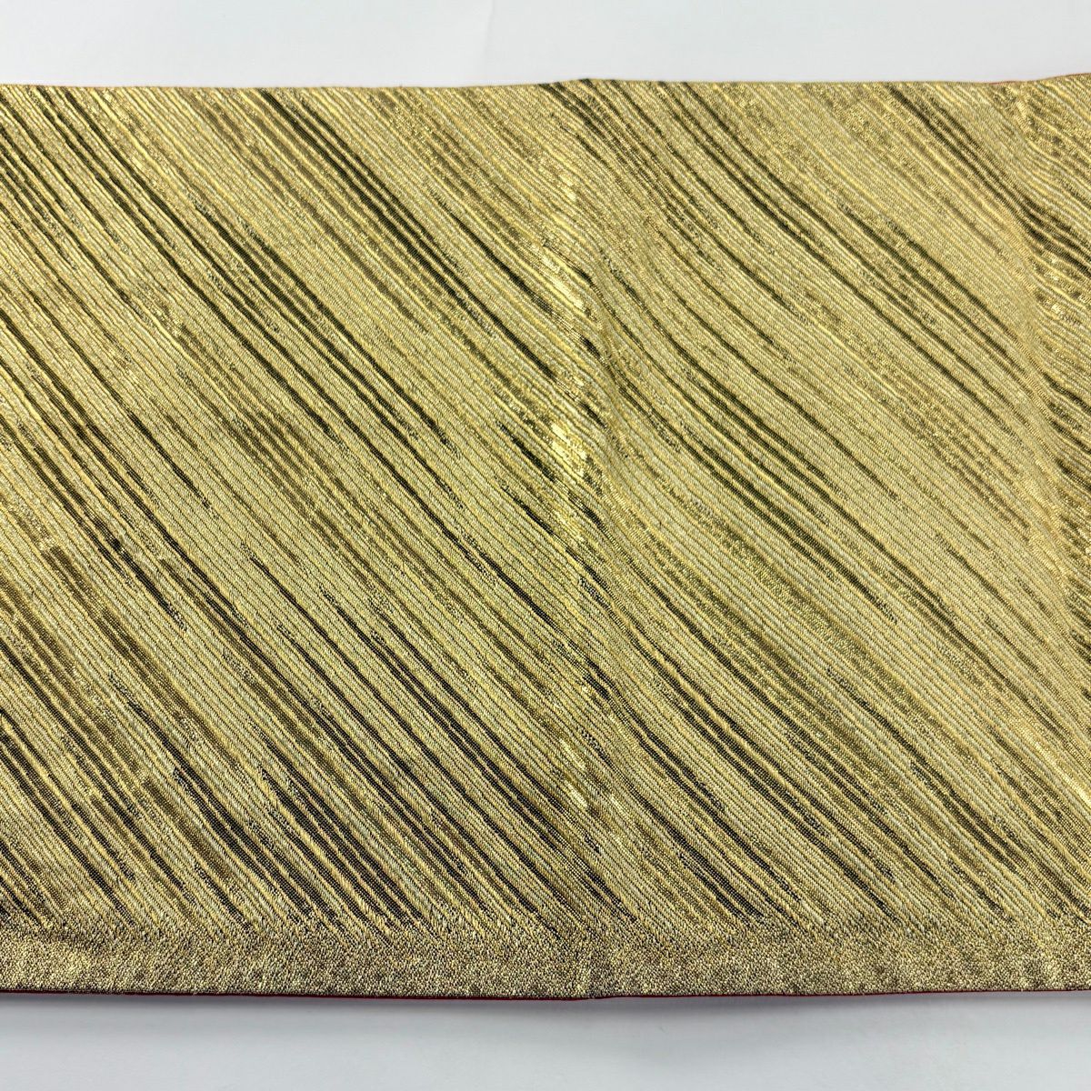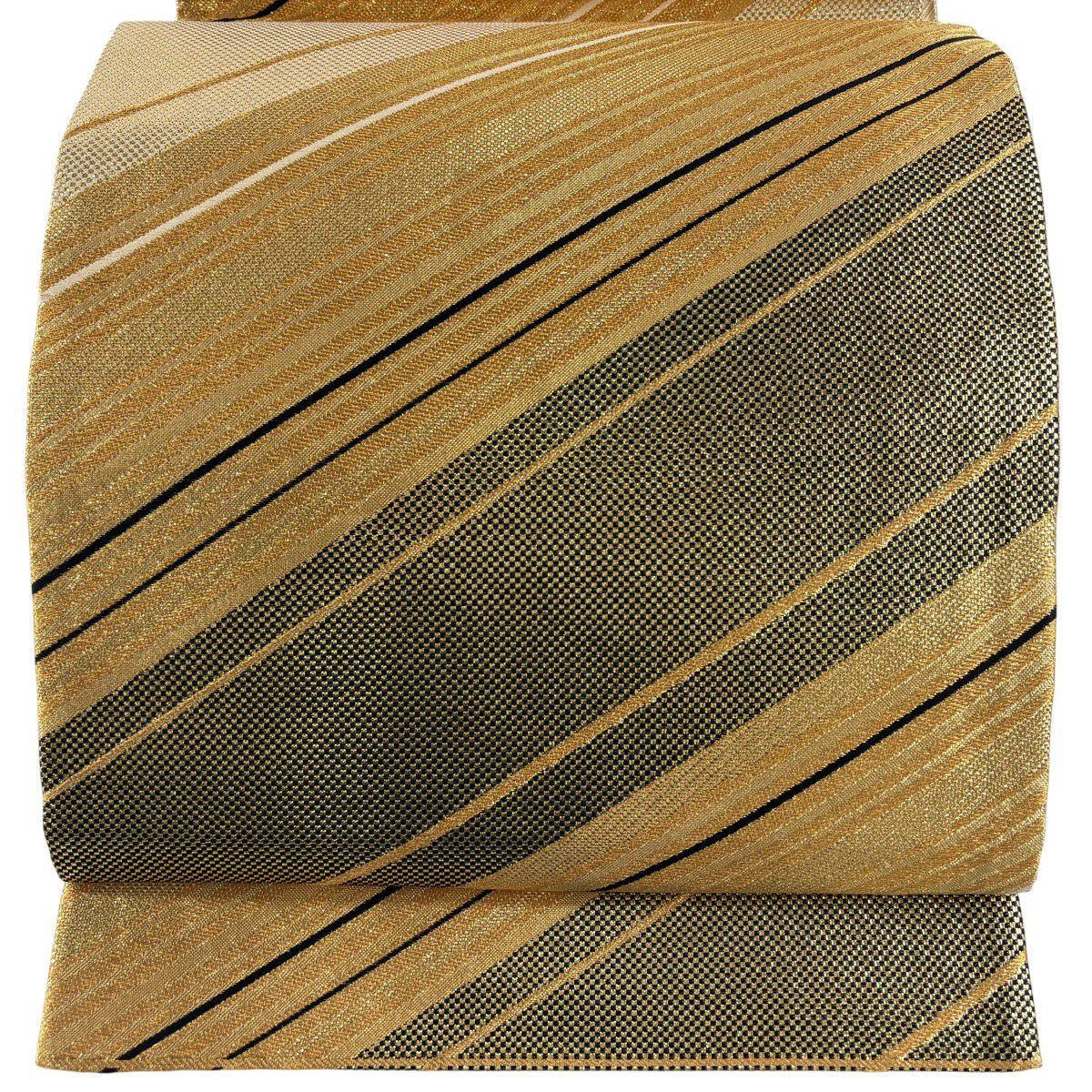 袋帯 秀品 斜縞 金糸 箔 金色 全通 正絹