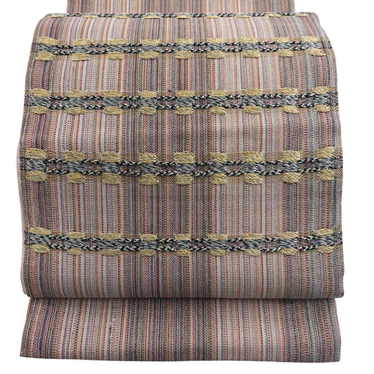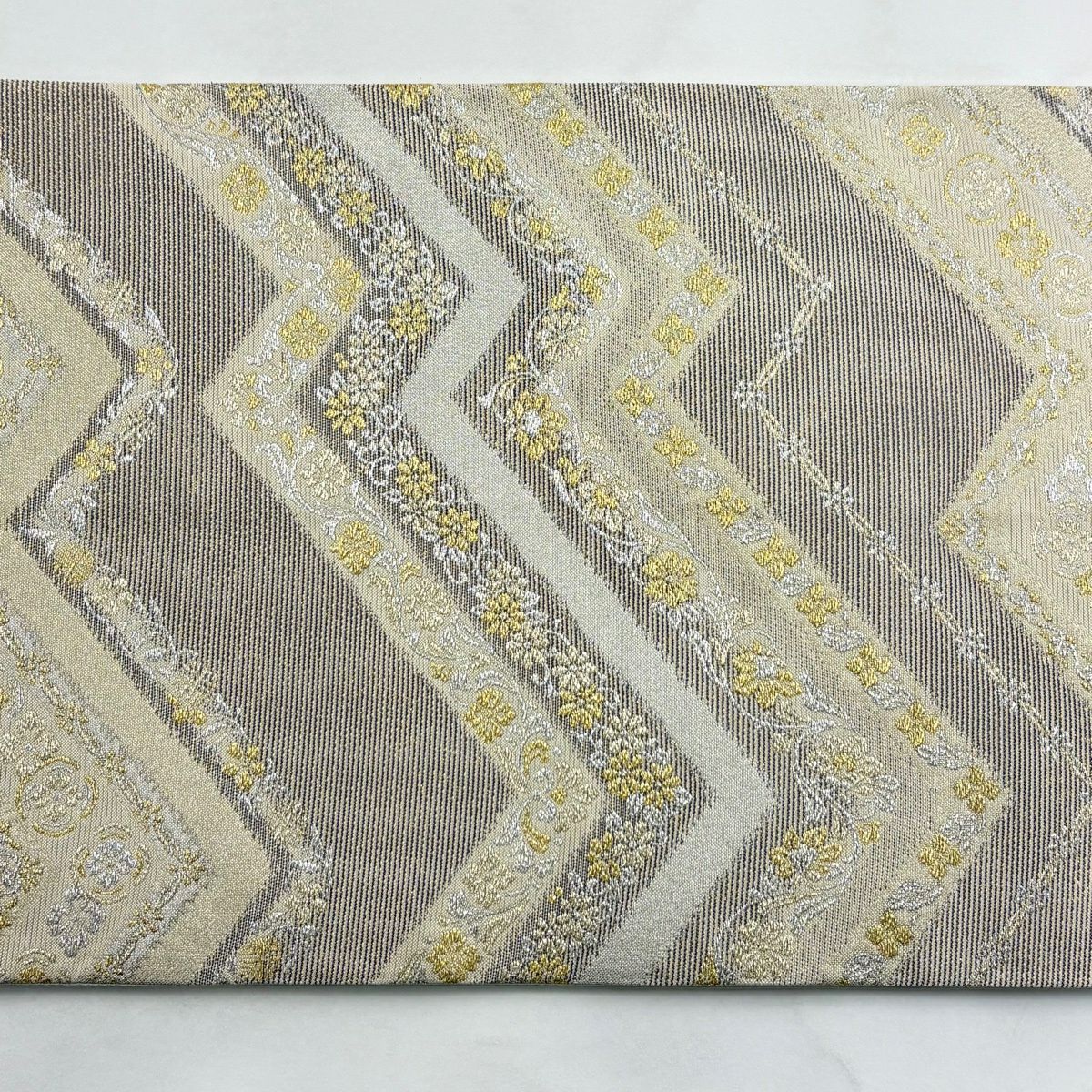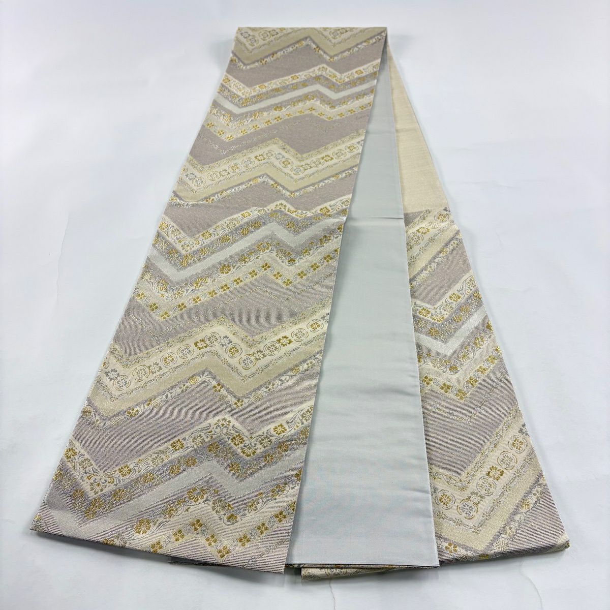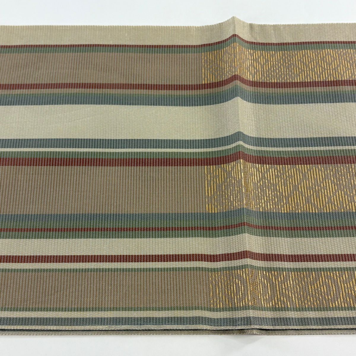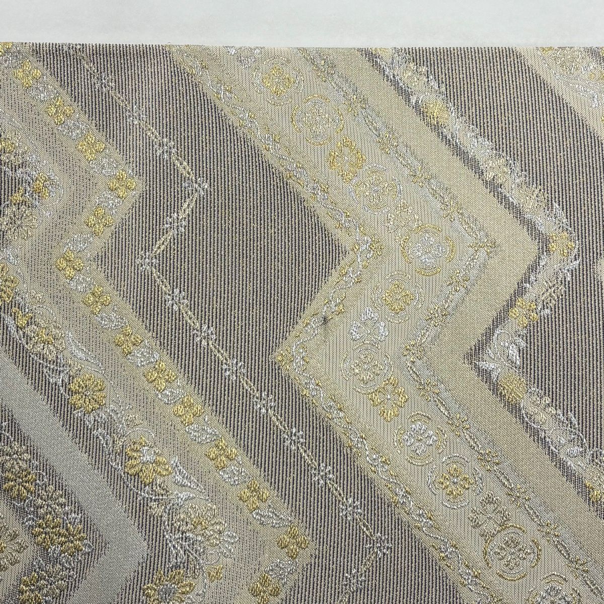 袋帯 秀品 縞 花菱 箔 灰茶 六通 正絹