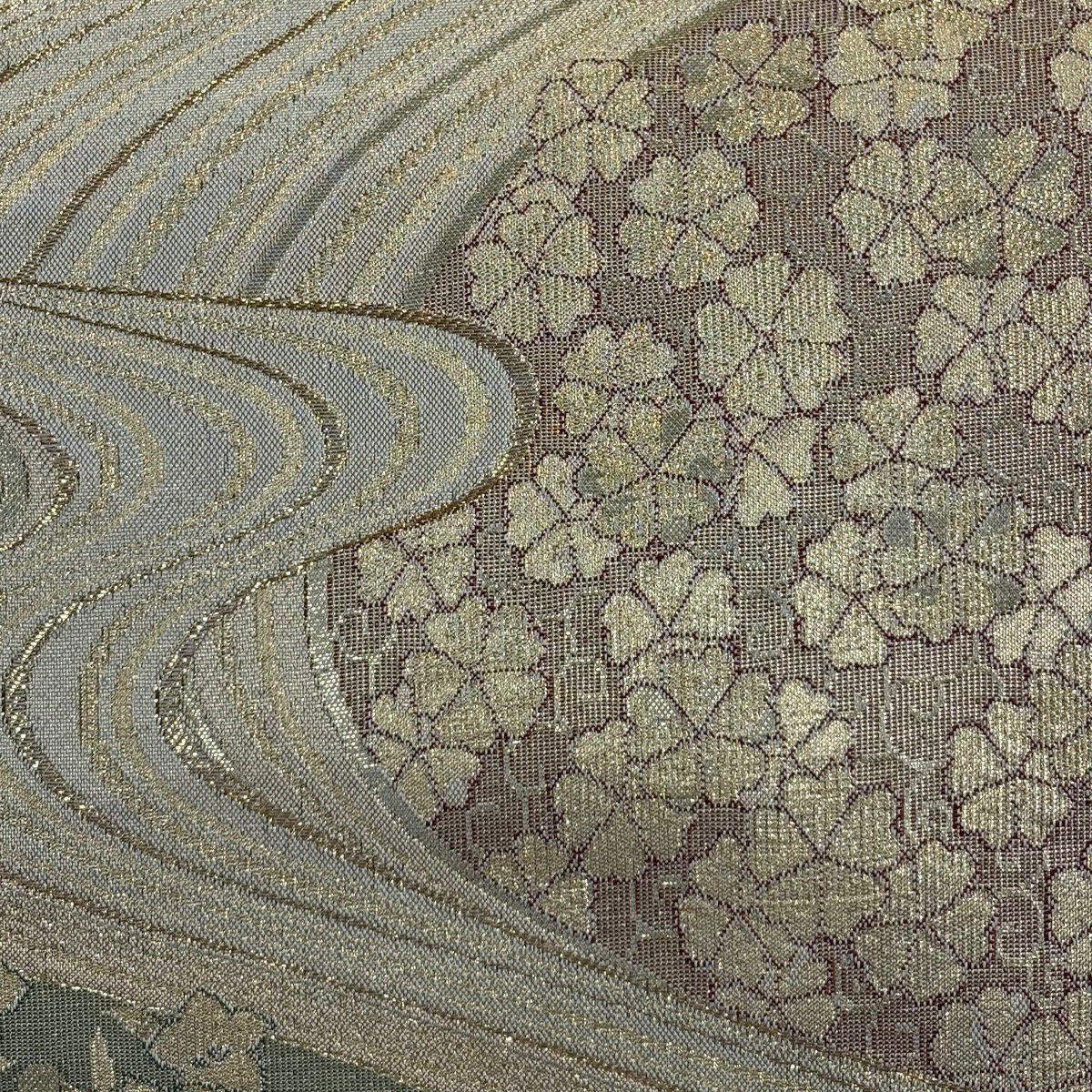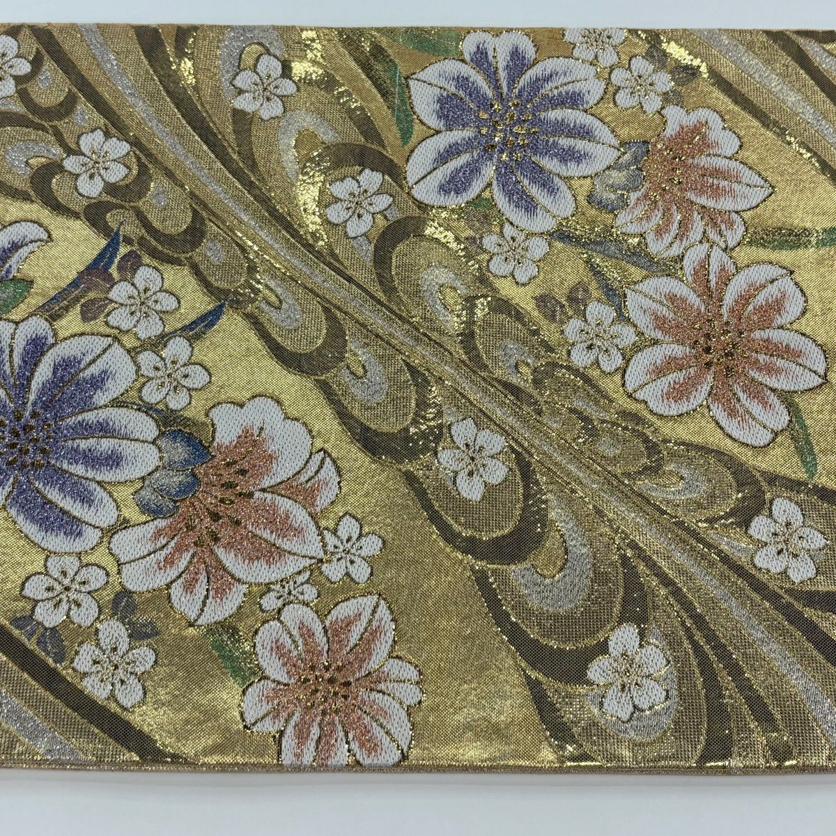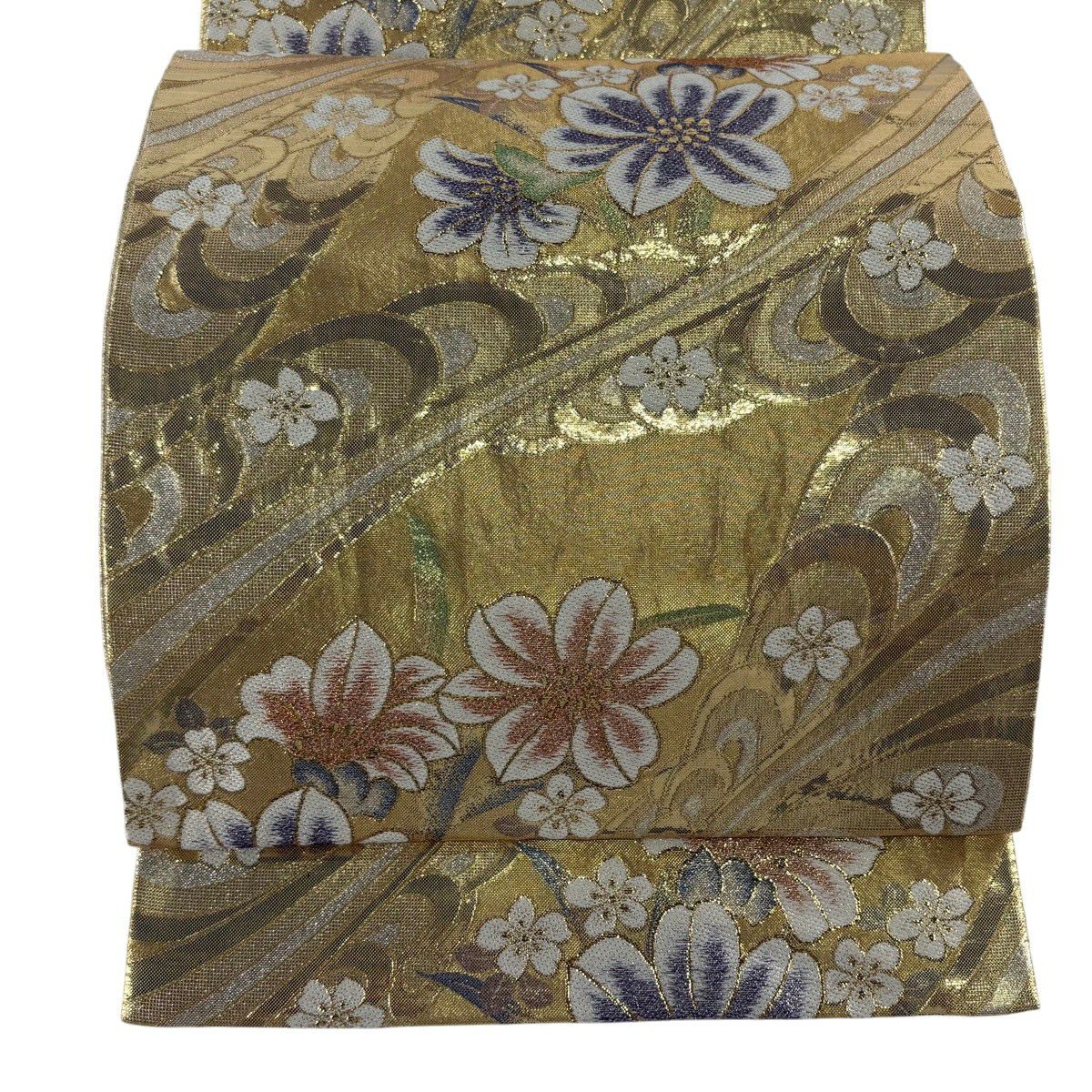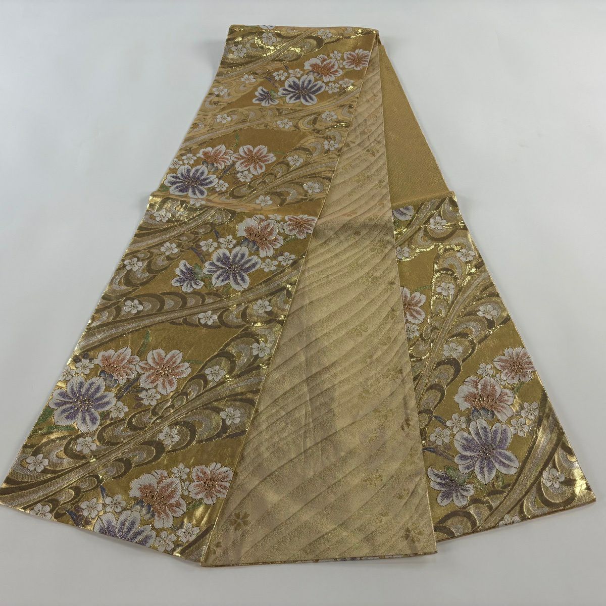 袋帯 秀品 桜 流水 箔 金色 六通 正絹