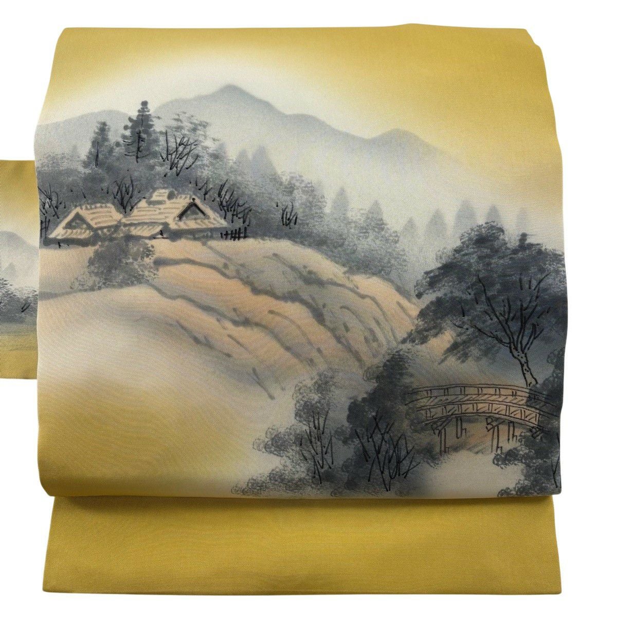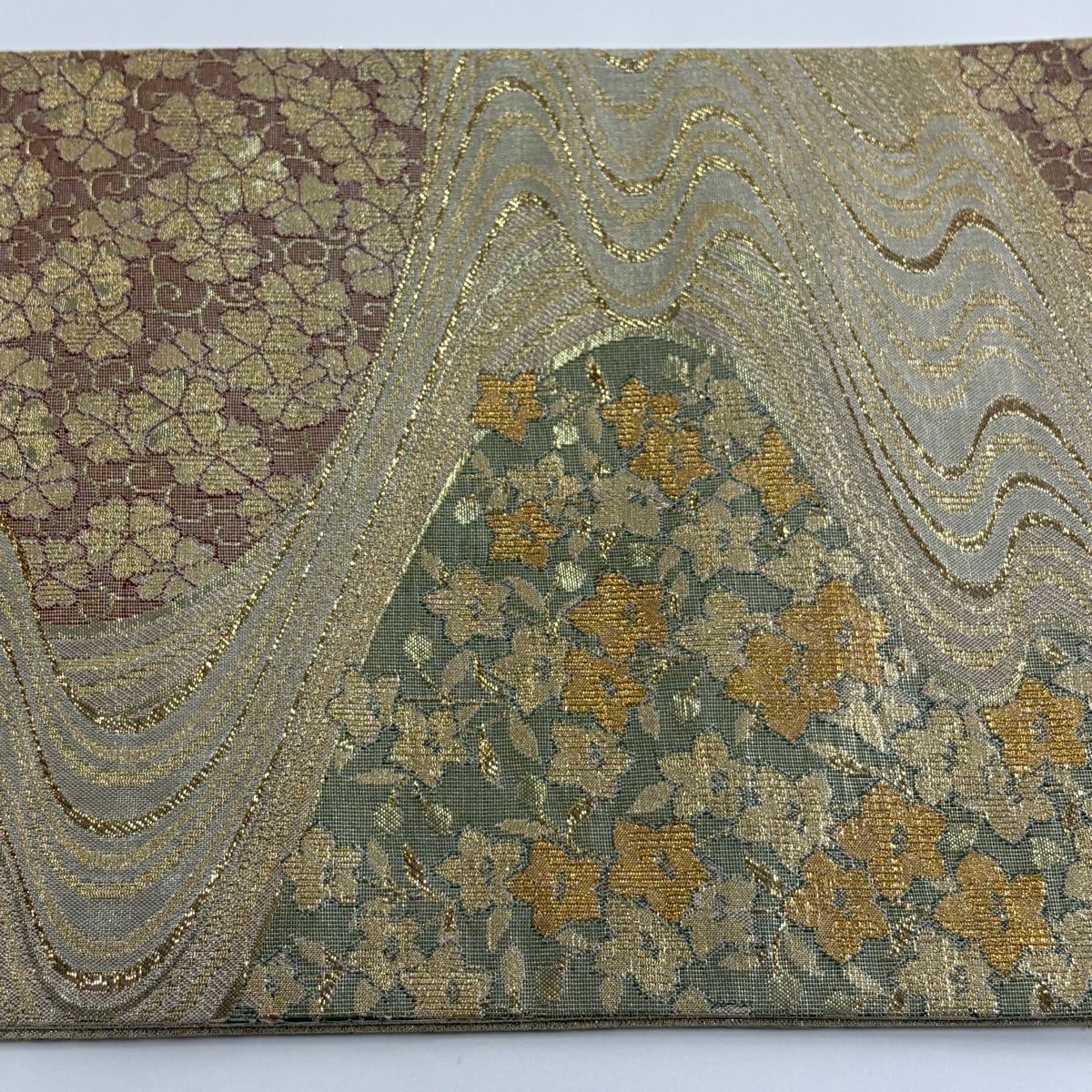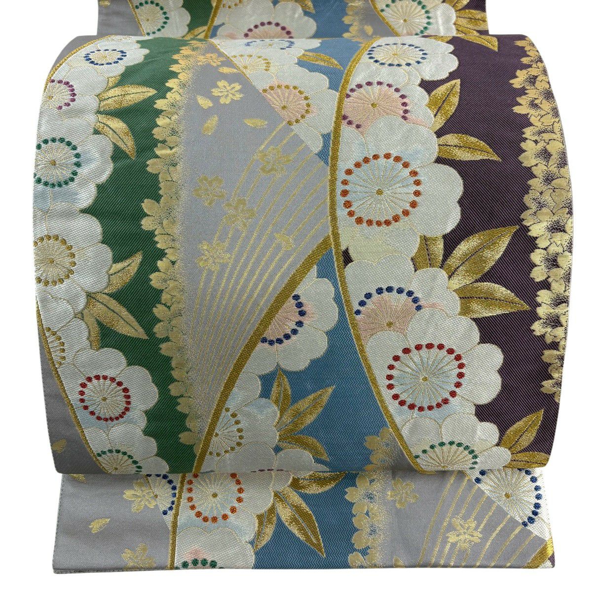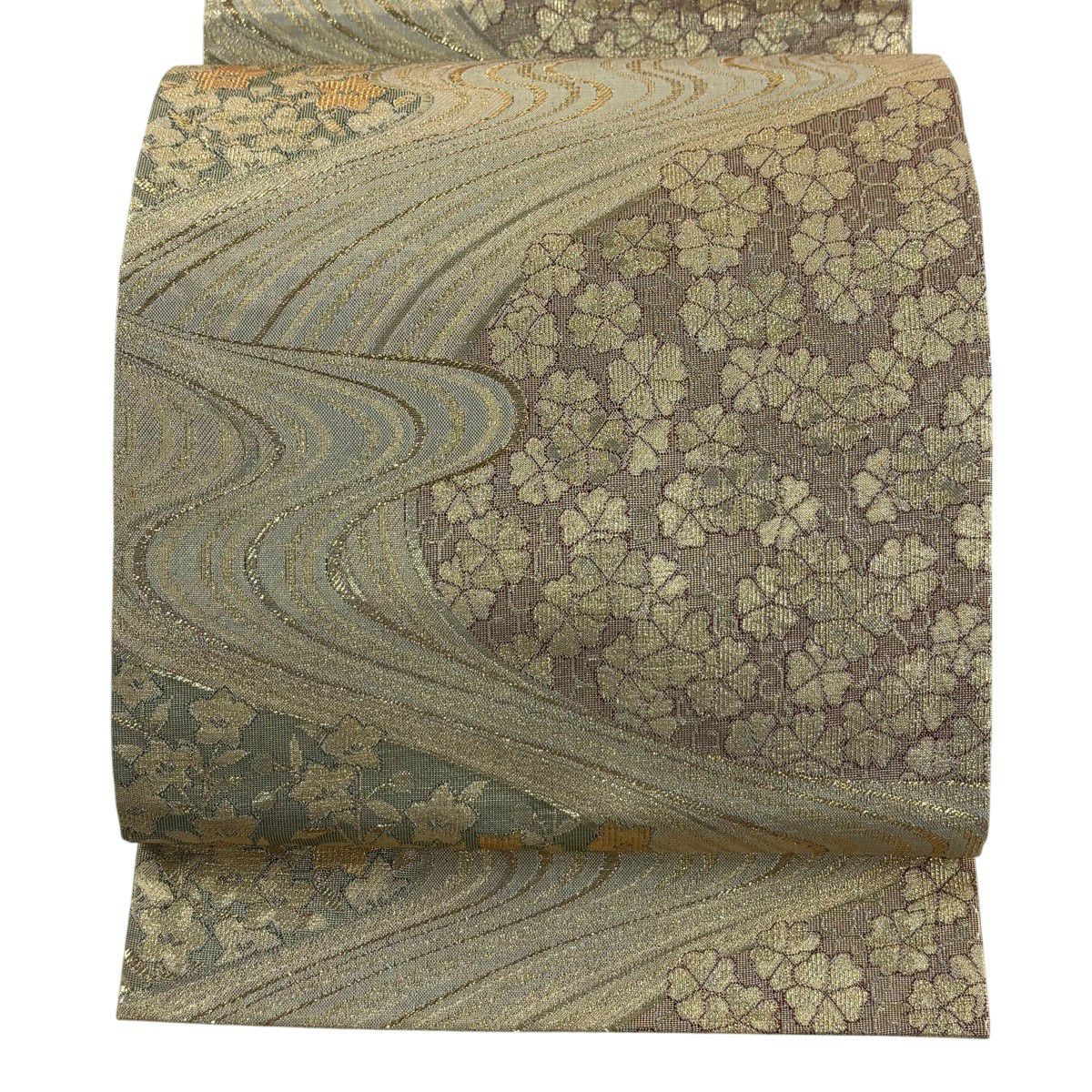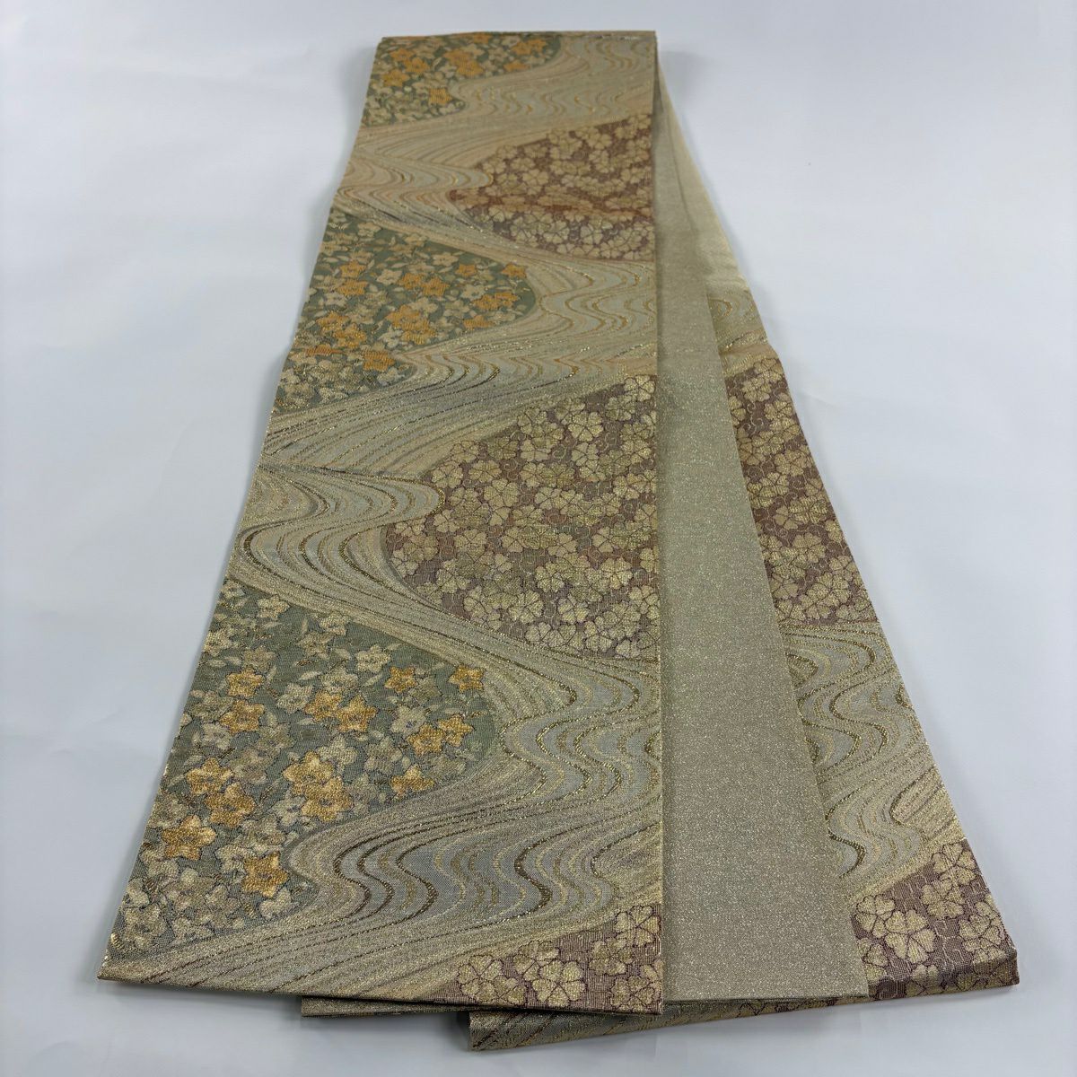 袋帯 秀品 桜 流水 箔 金色 六通 正絹