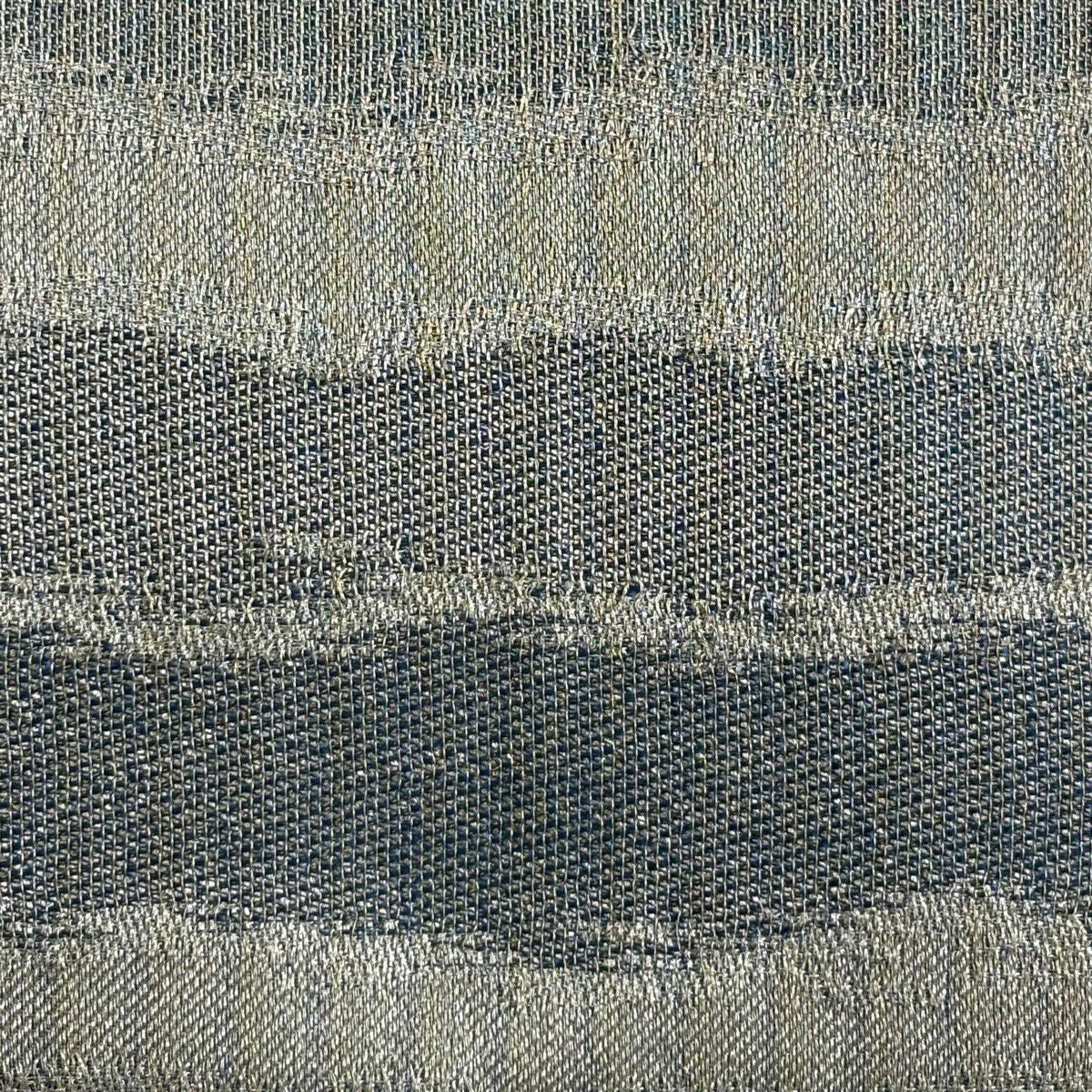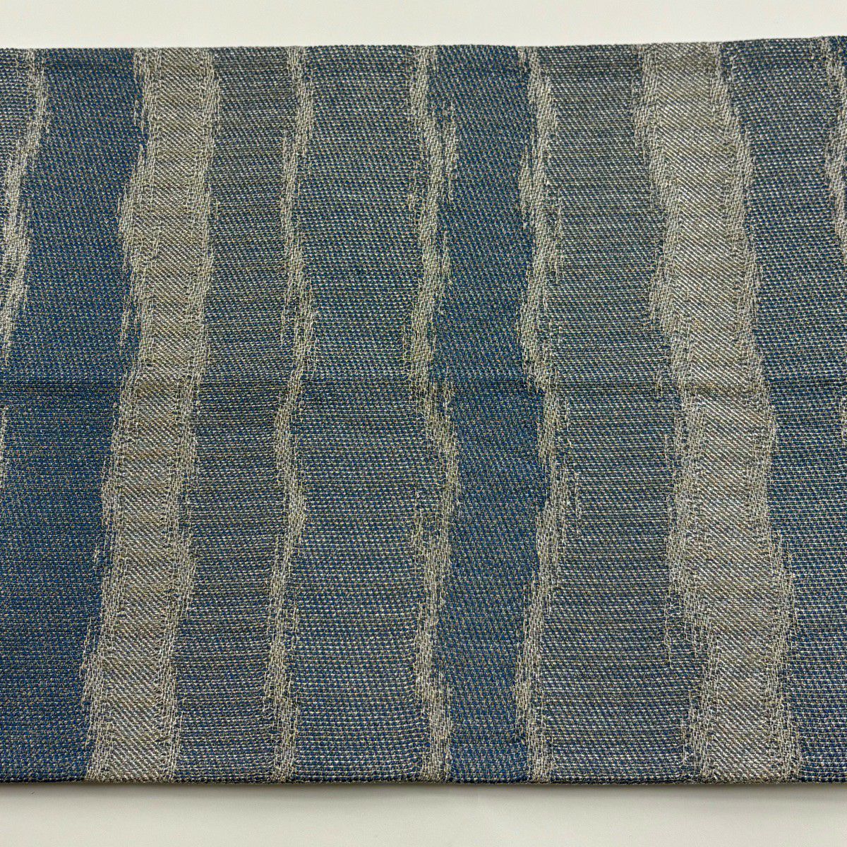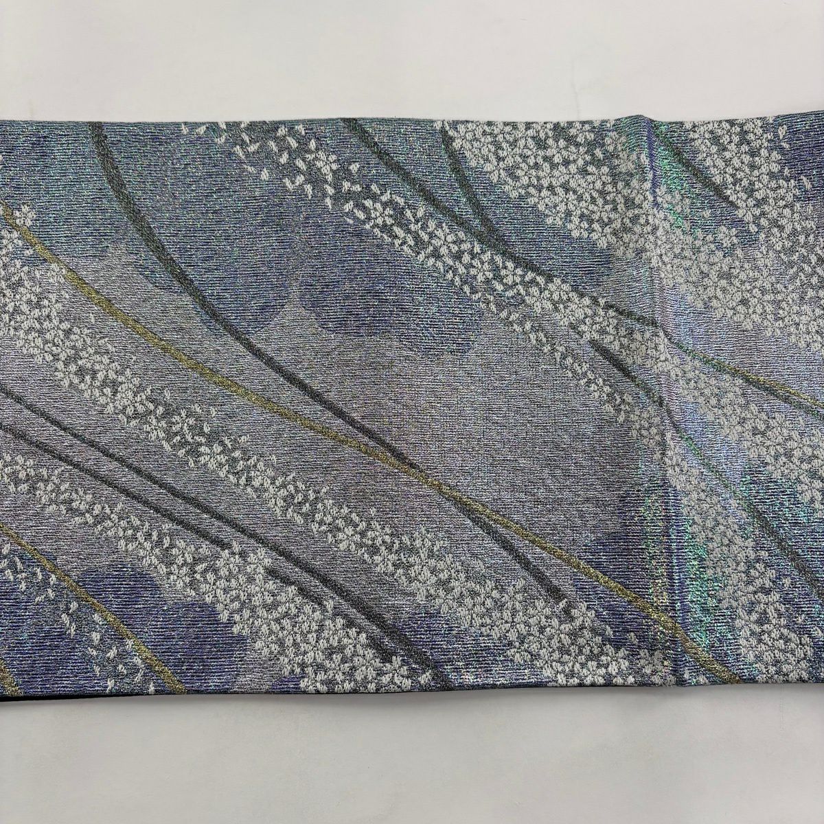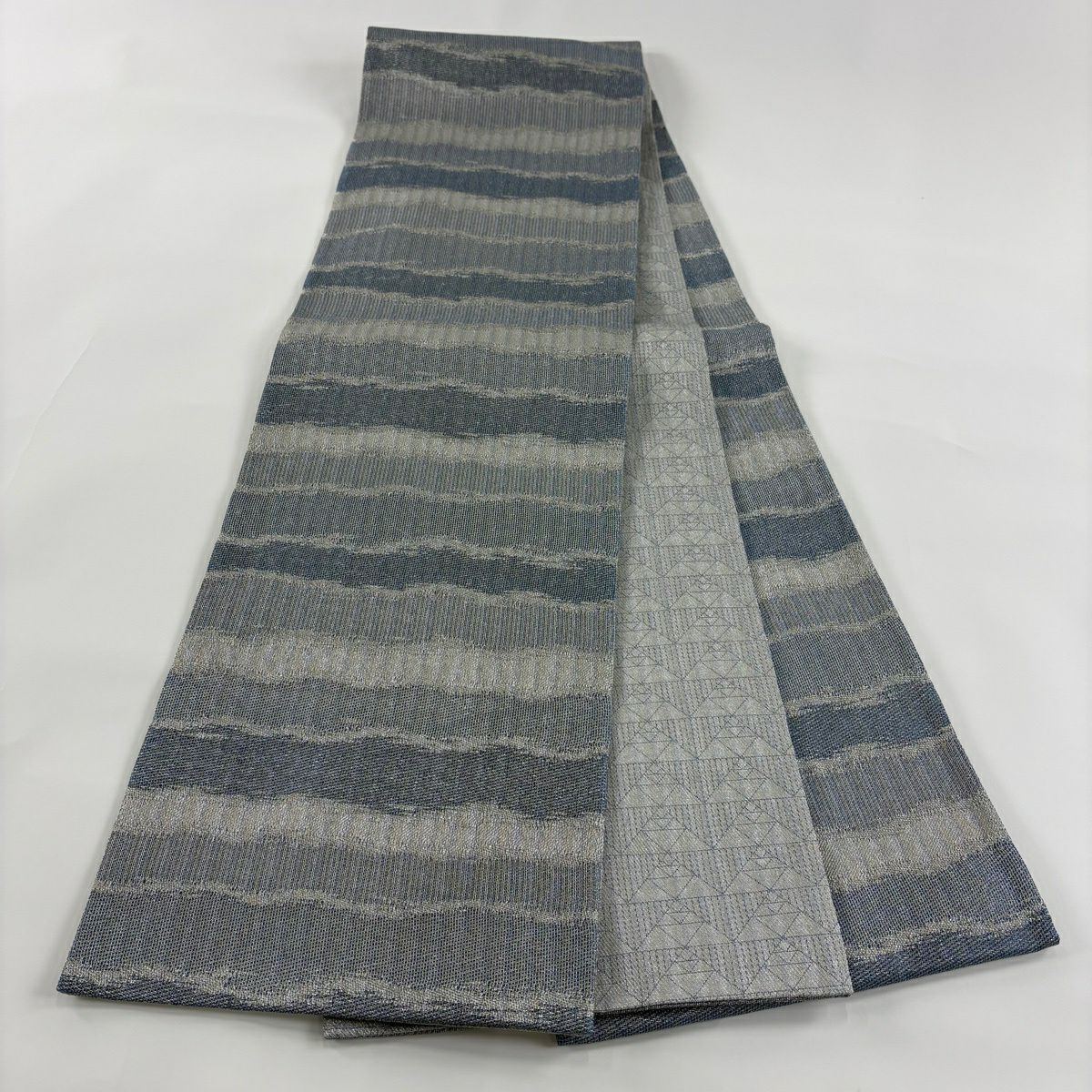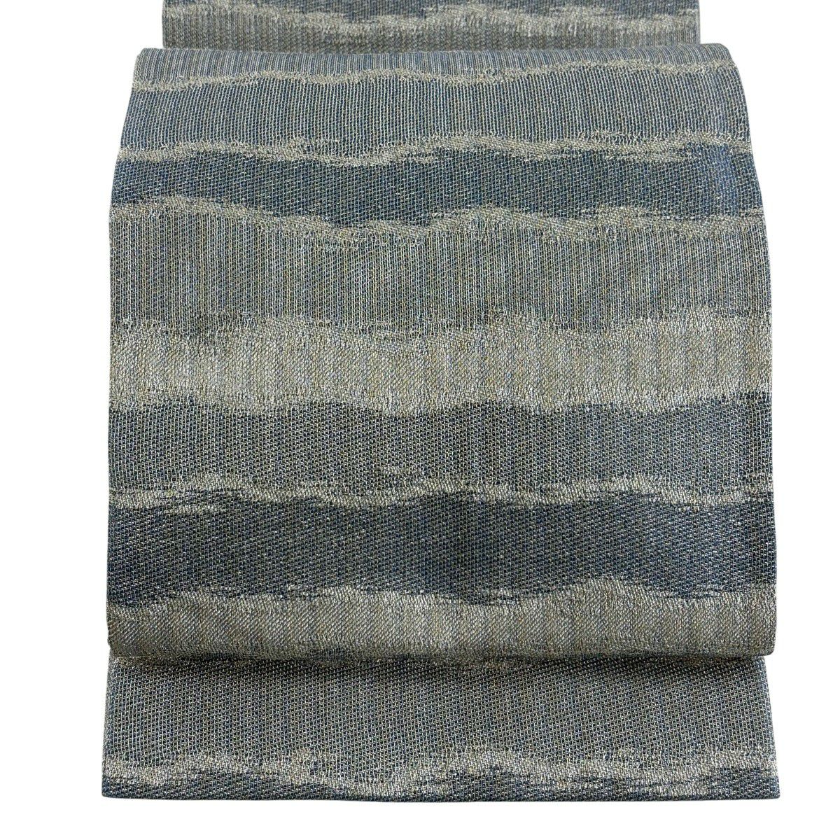 袋帯 秀品 段縞 銀糸 青灰色 全通 正絹