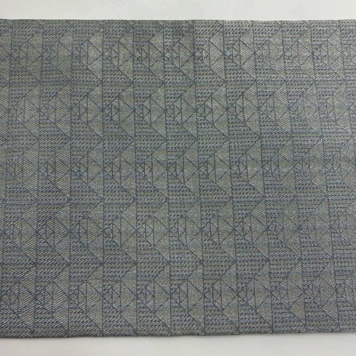 袋帯 秀品 幾何学模様 青灰色 全通 正絹