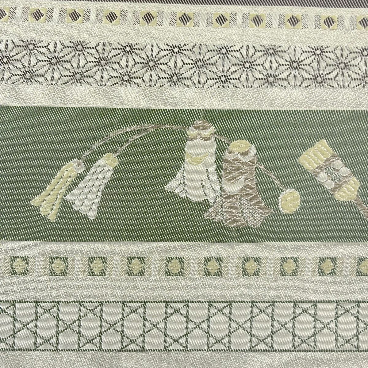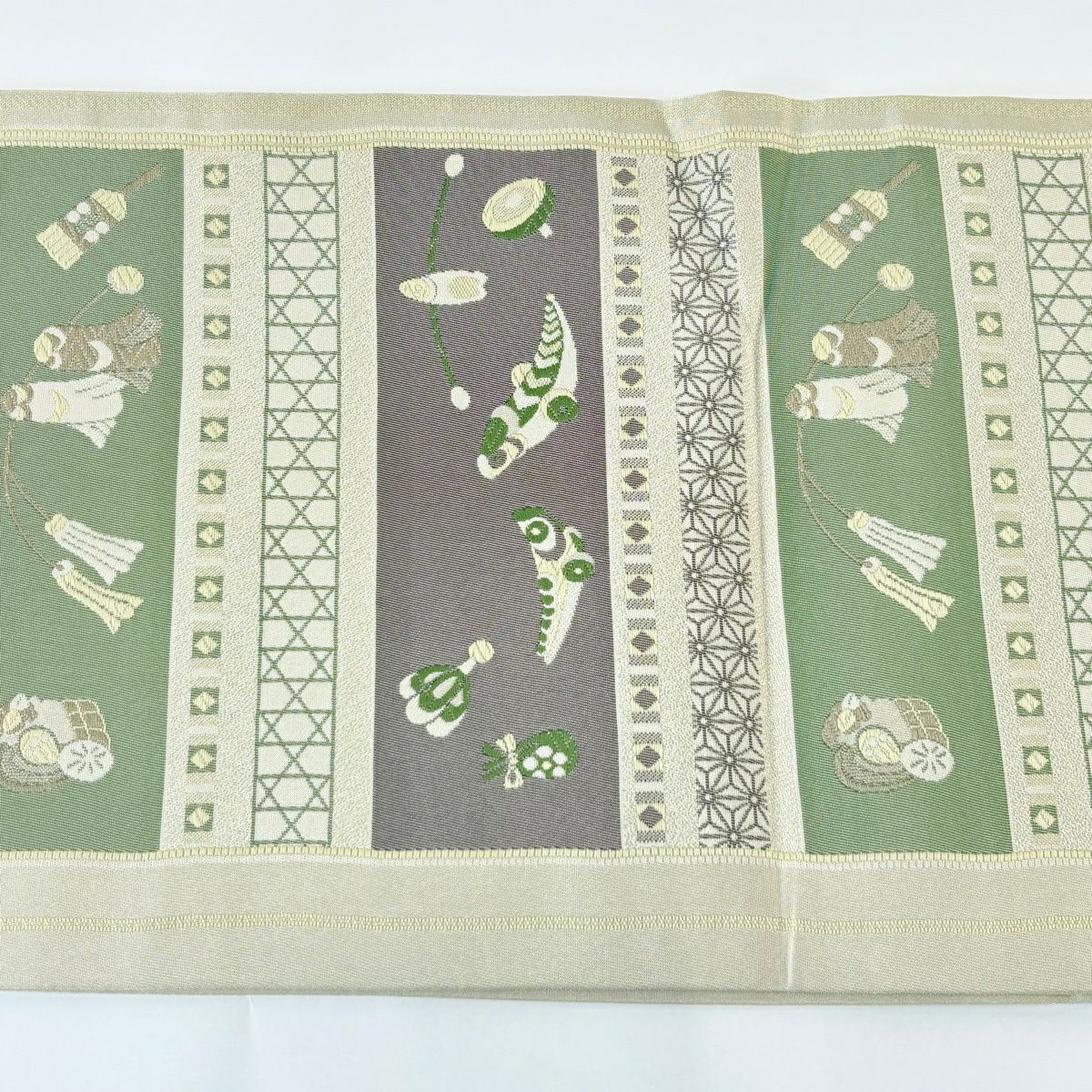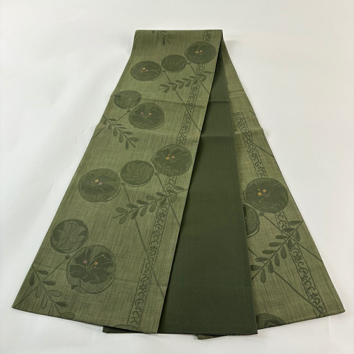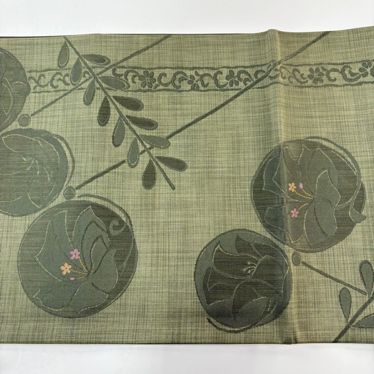 【美品】 袋帯 秀品 草花 緑 六通 正絹