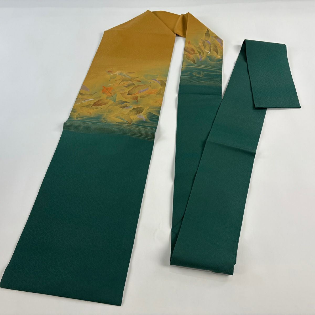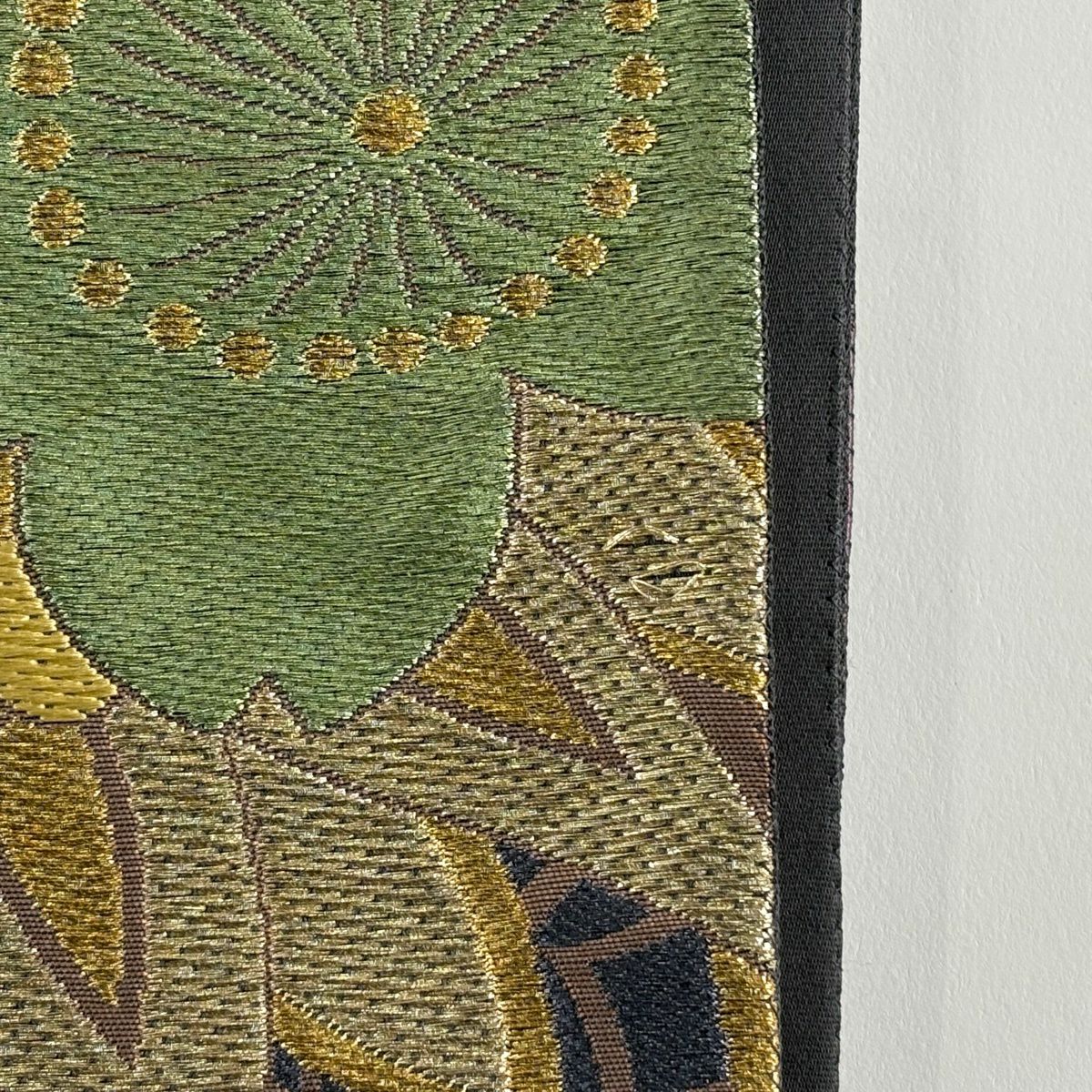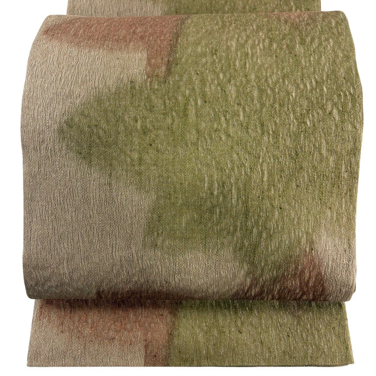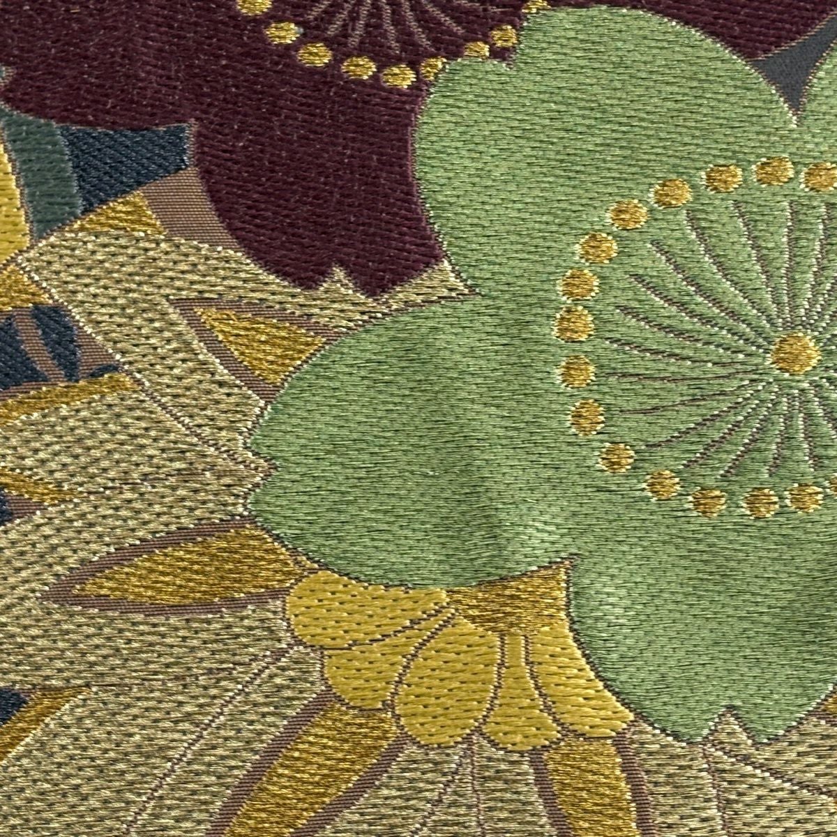 【美品】 袋帯 秀品 草花 緑 六通 正絹