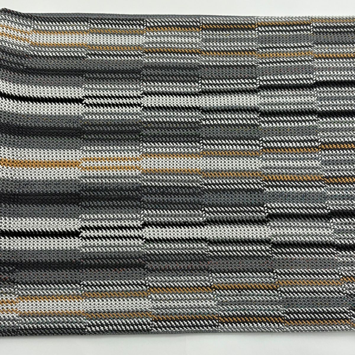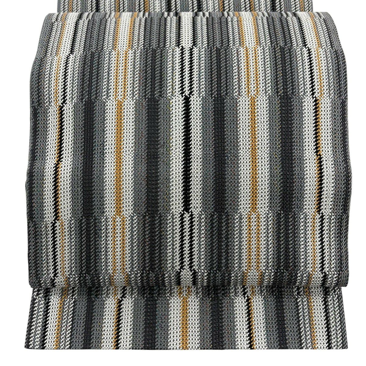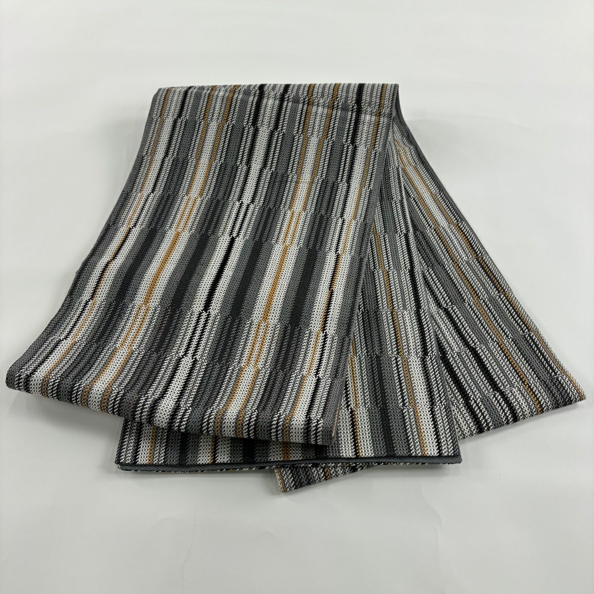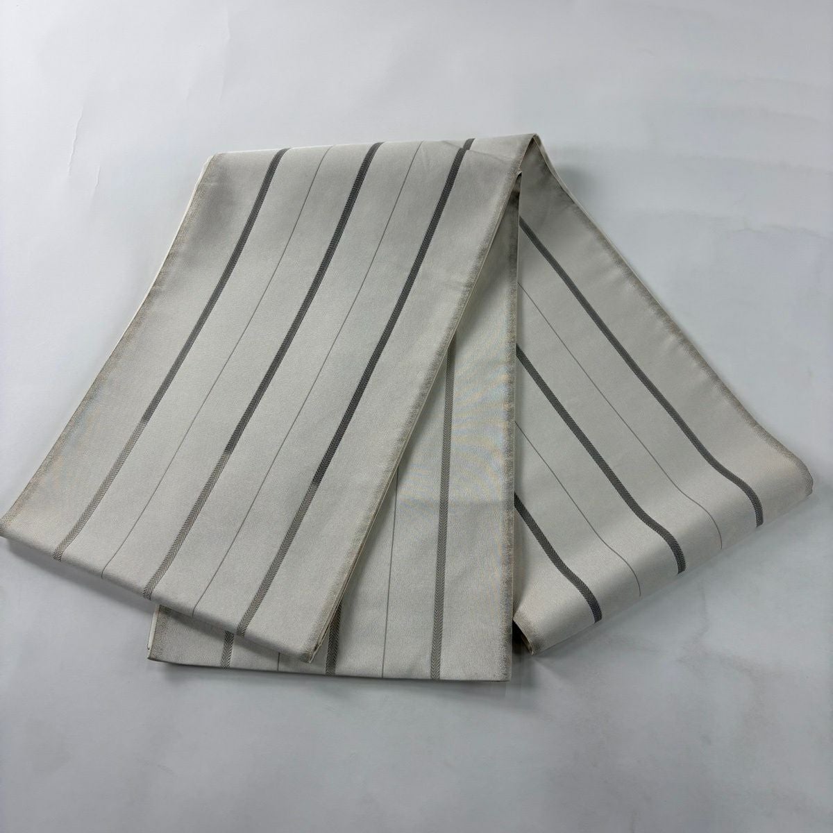 【美品】 袋帯 秀品 縞 灰色 全通 正絹