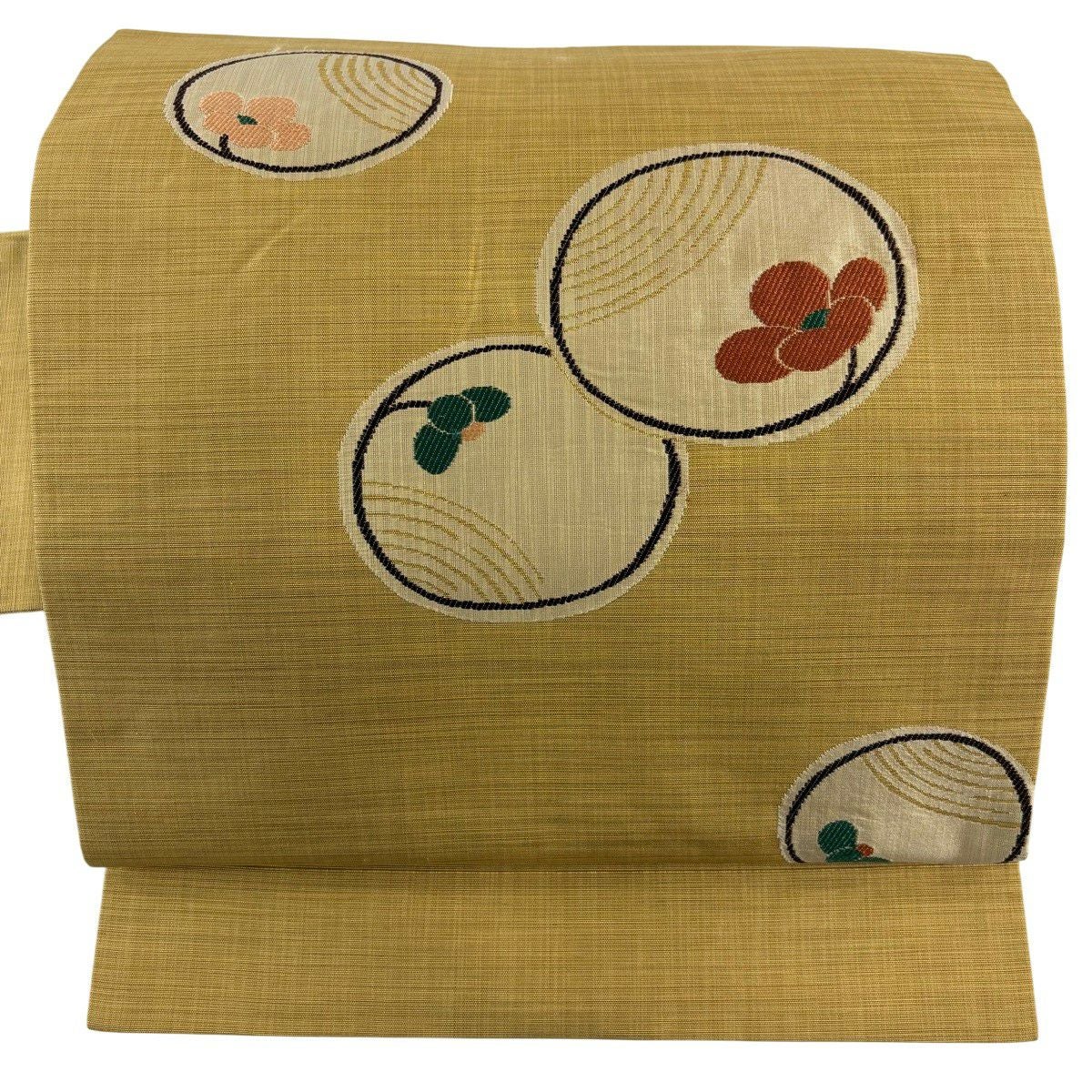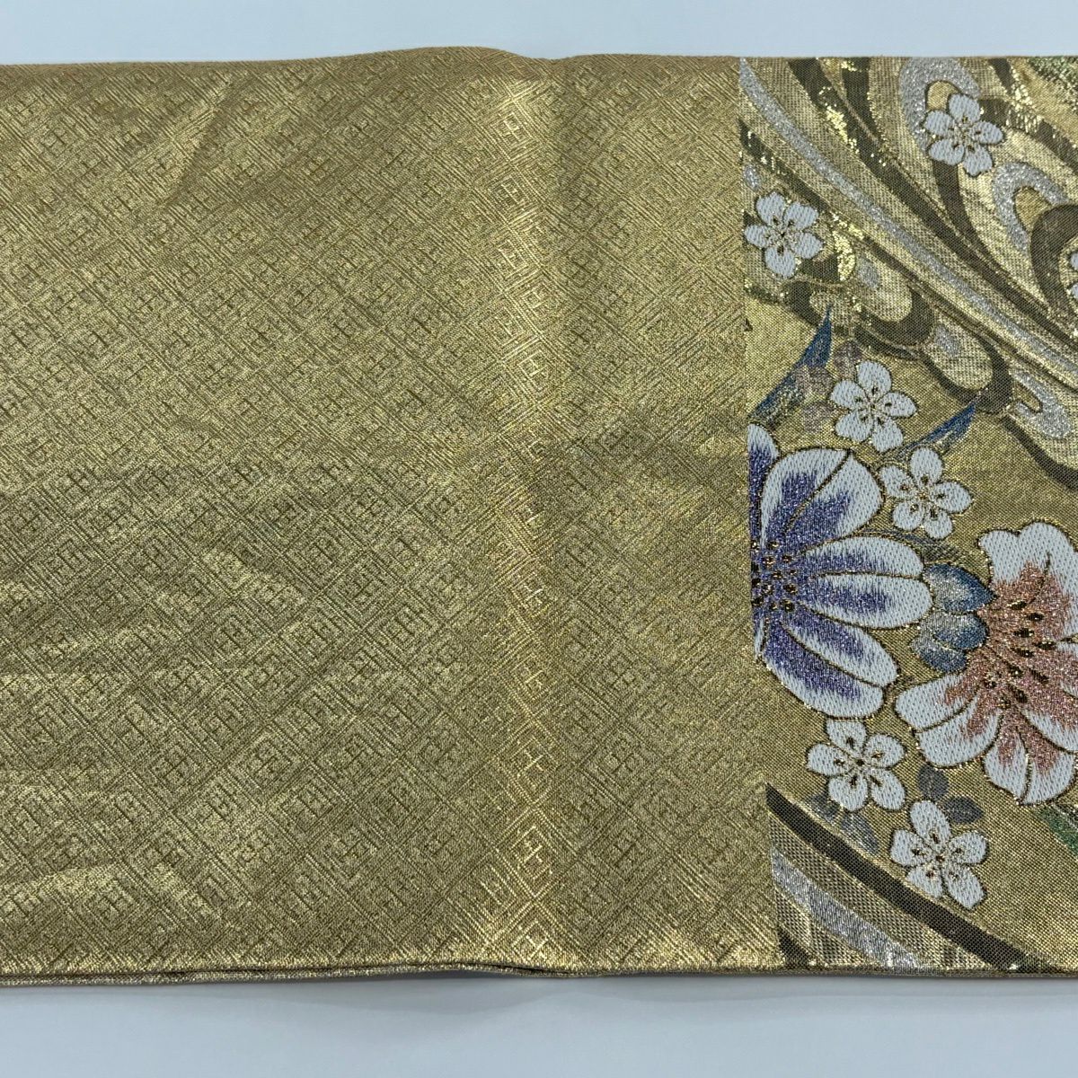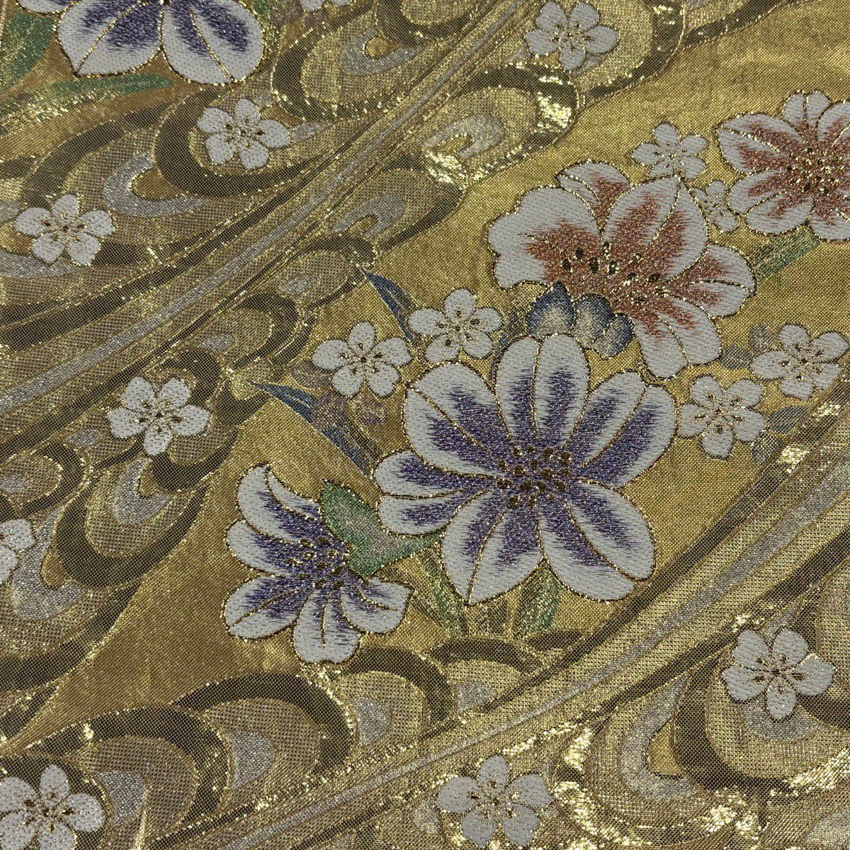 袋帯 秀品 草花 金糸 箔 金色 六通 正絹