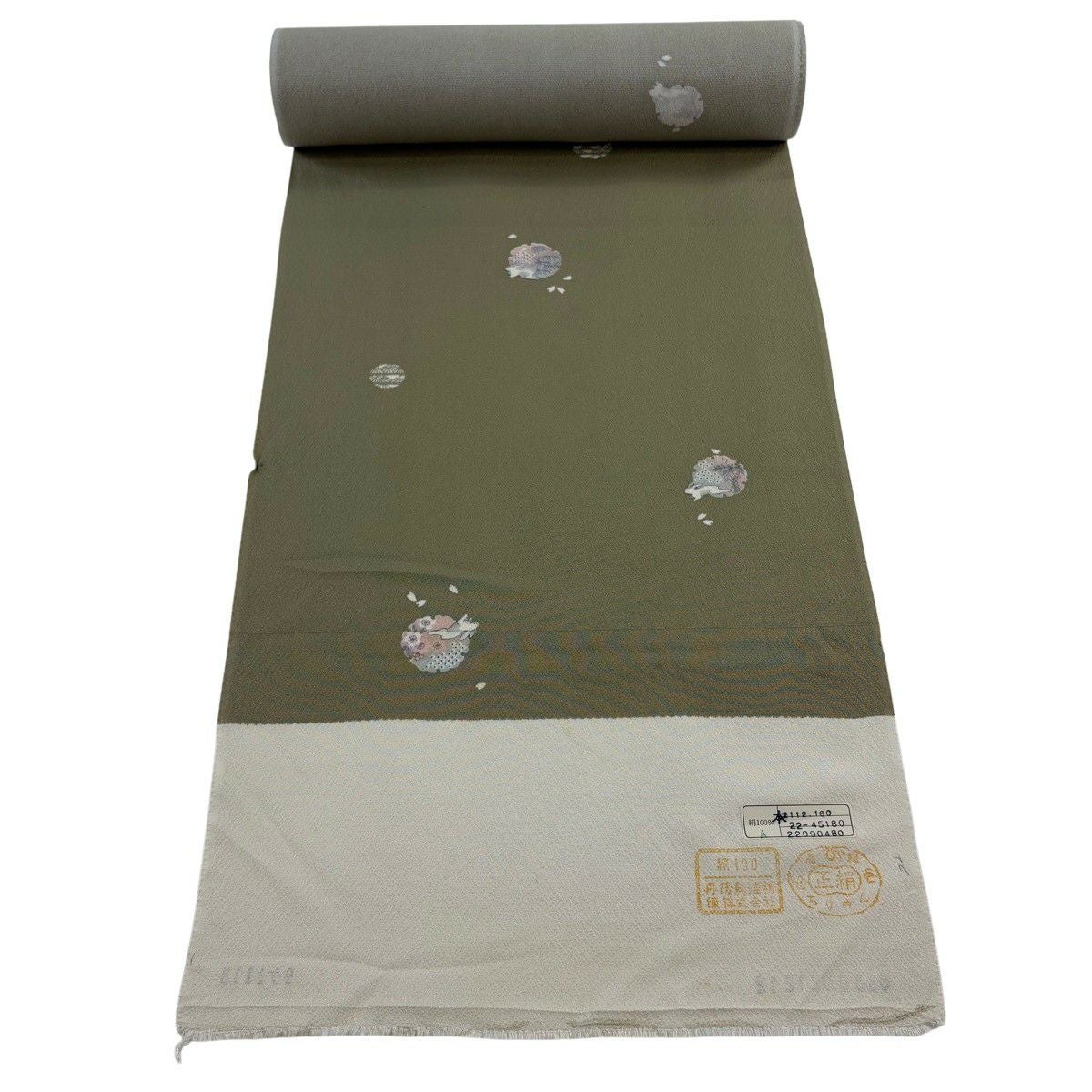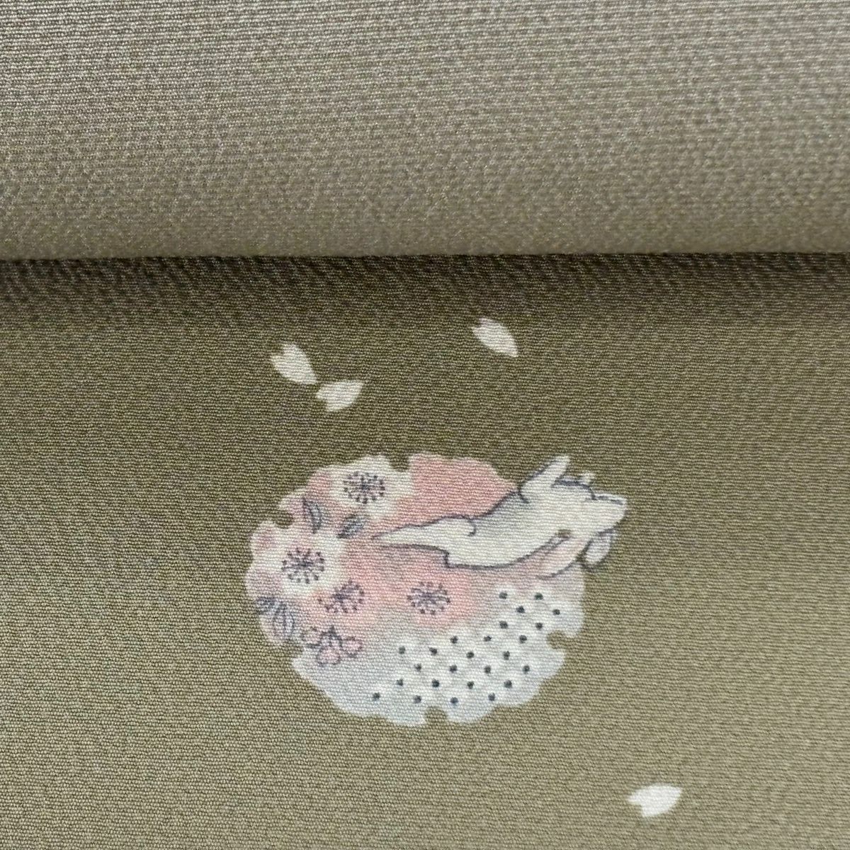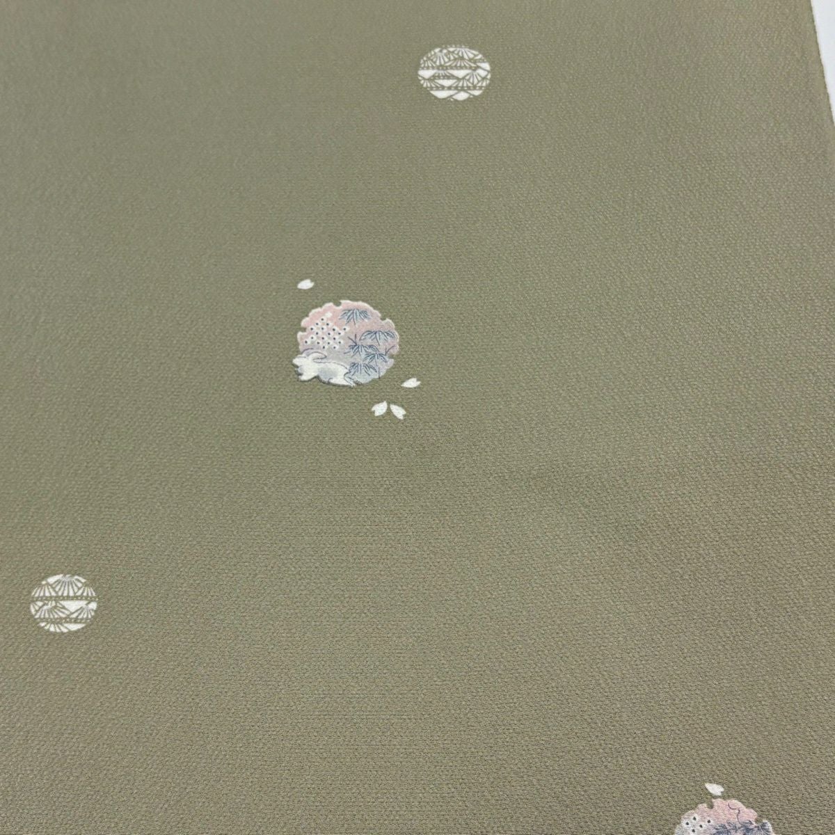 反物 秀品 小紋 雪輪 うさぎ 灰緑 正絹
