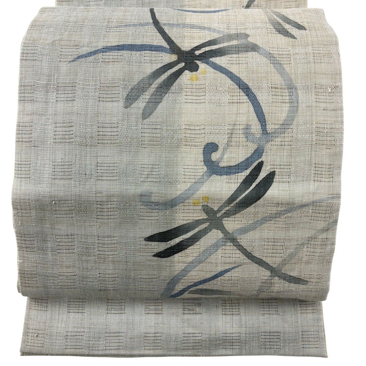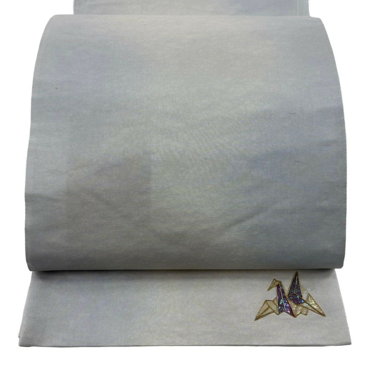 開き名古屋帯 秀品 トンボ 青灰色 正絹
