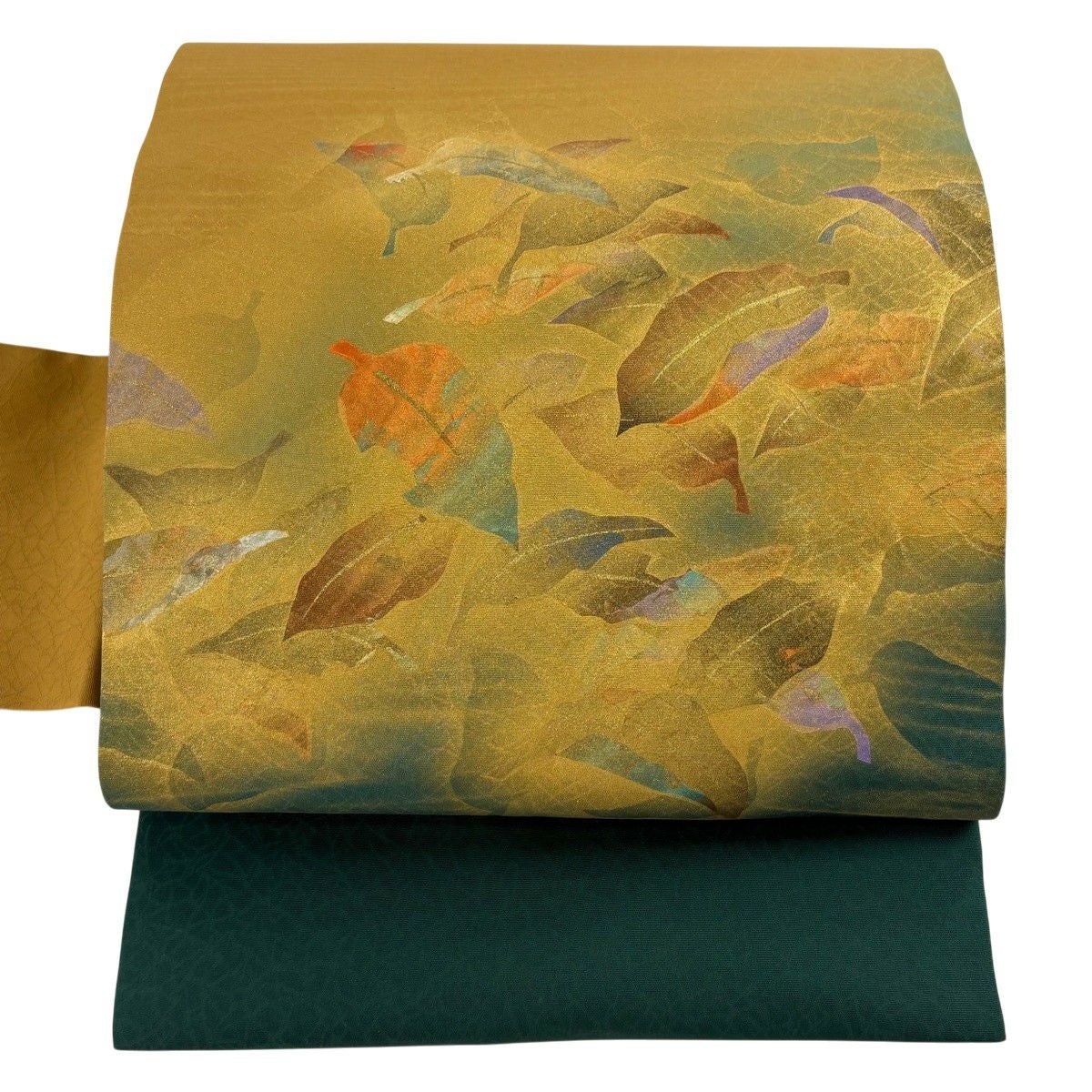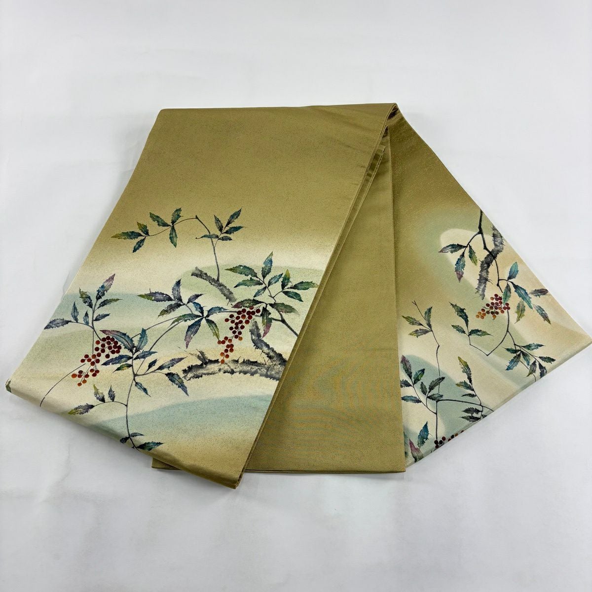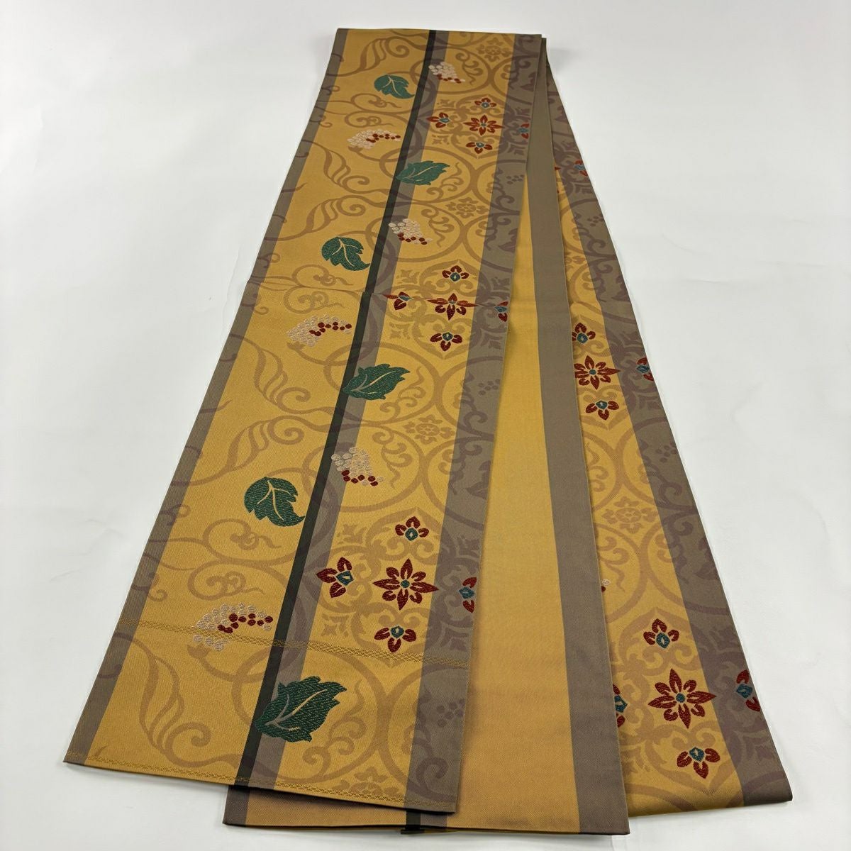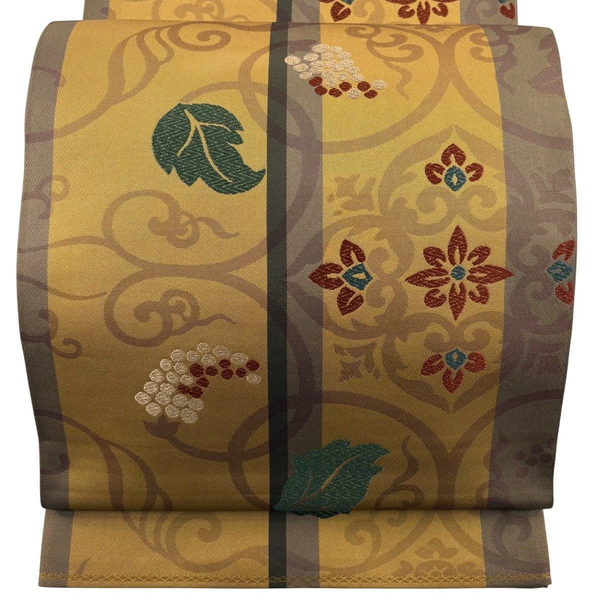 名古屋帯 秀品 葉柄 金彩 山吹茶色 正絹