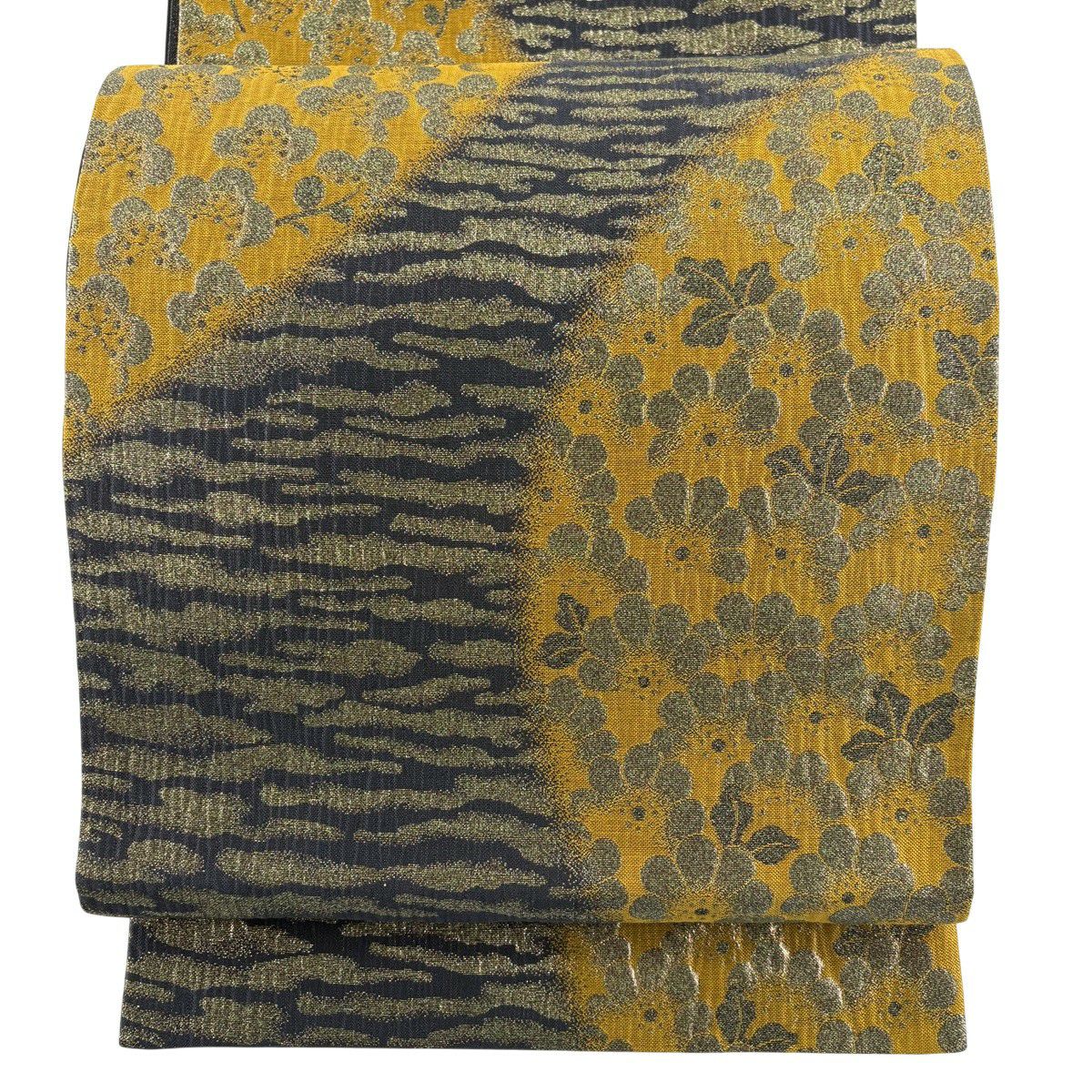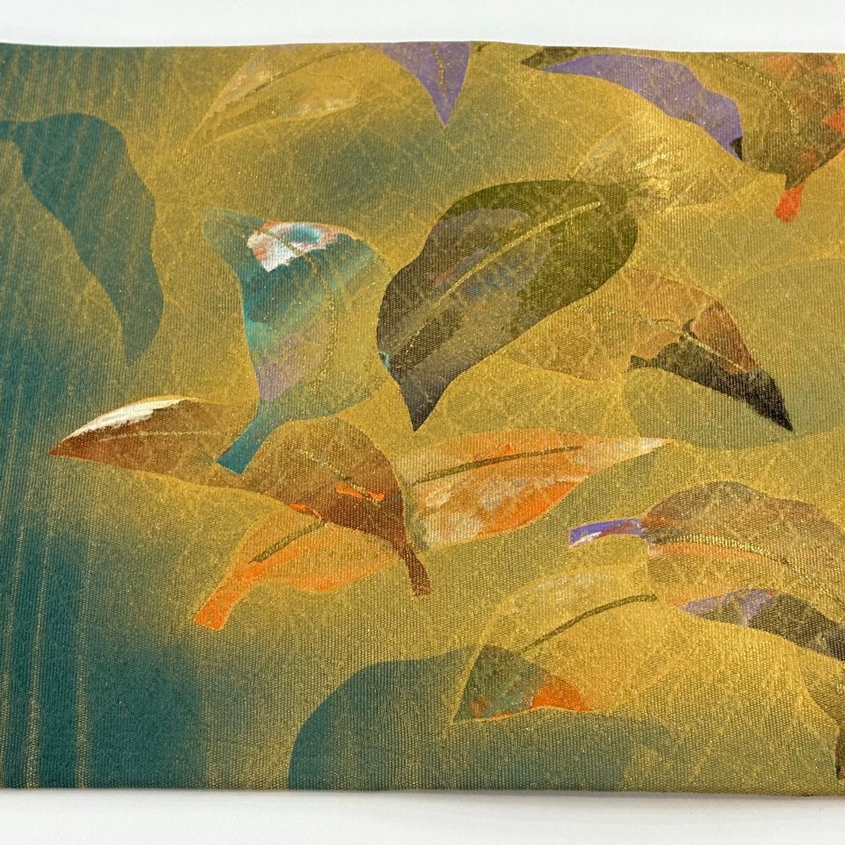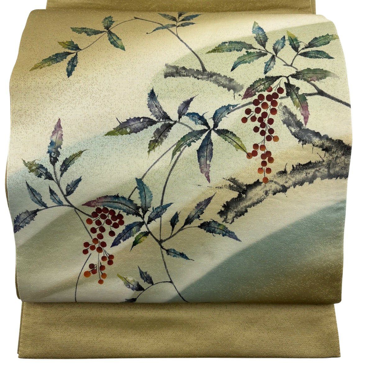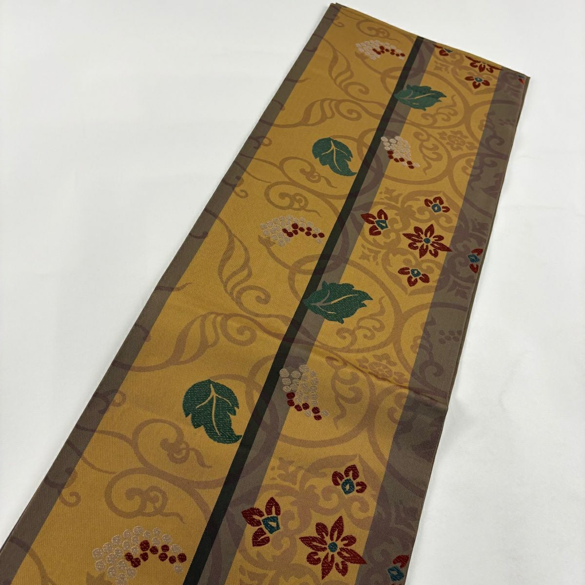 名古屋帯 秀品 葉柄 金彩 山吹茶色 正絹