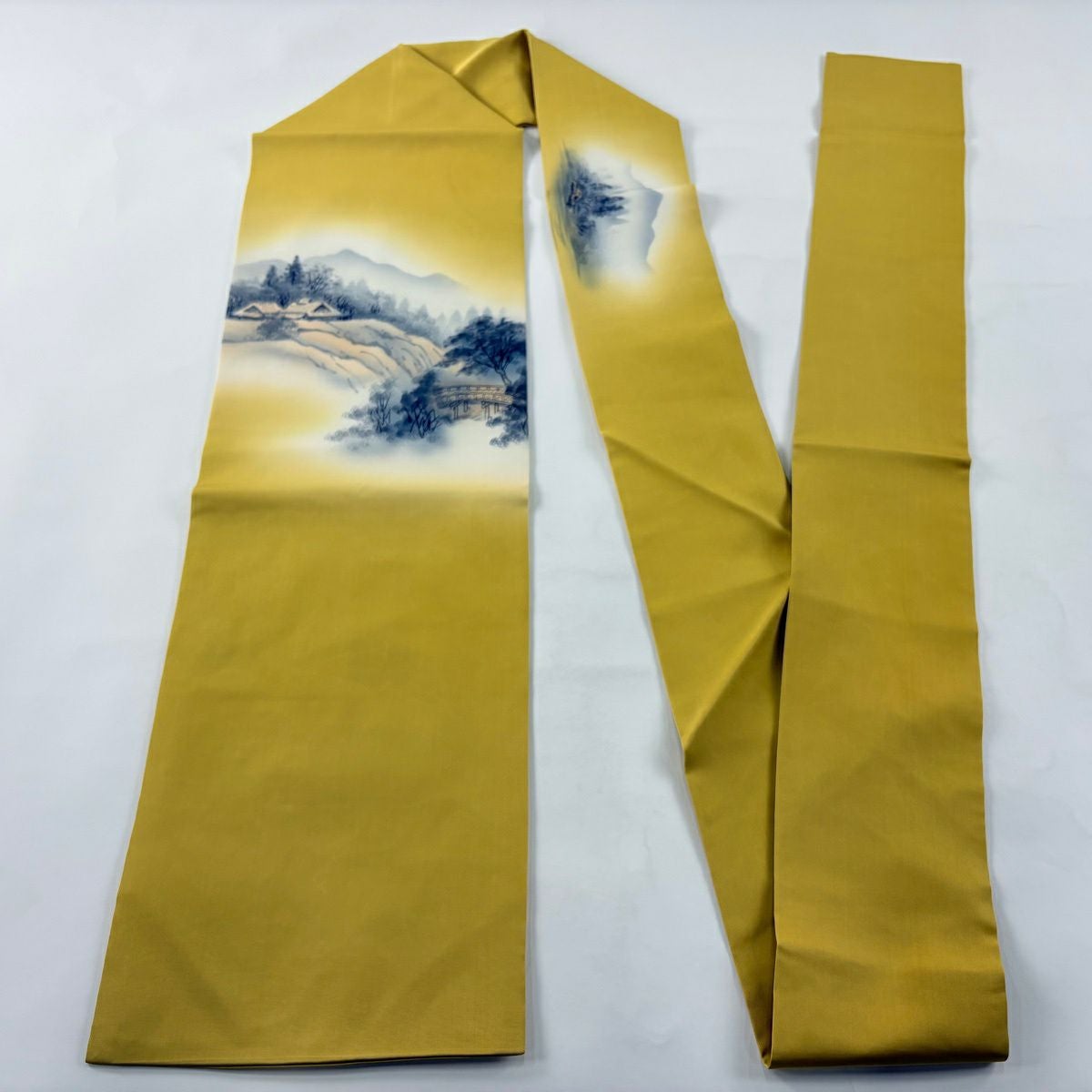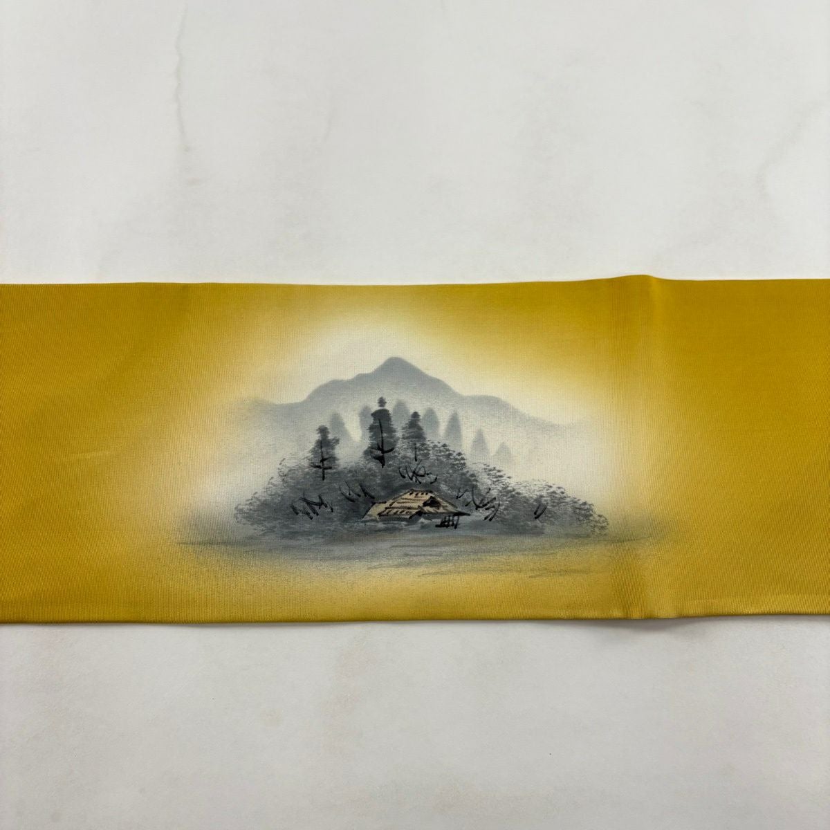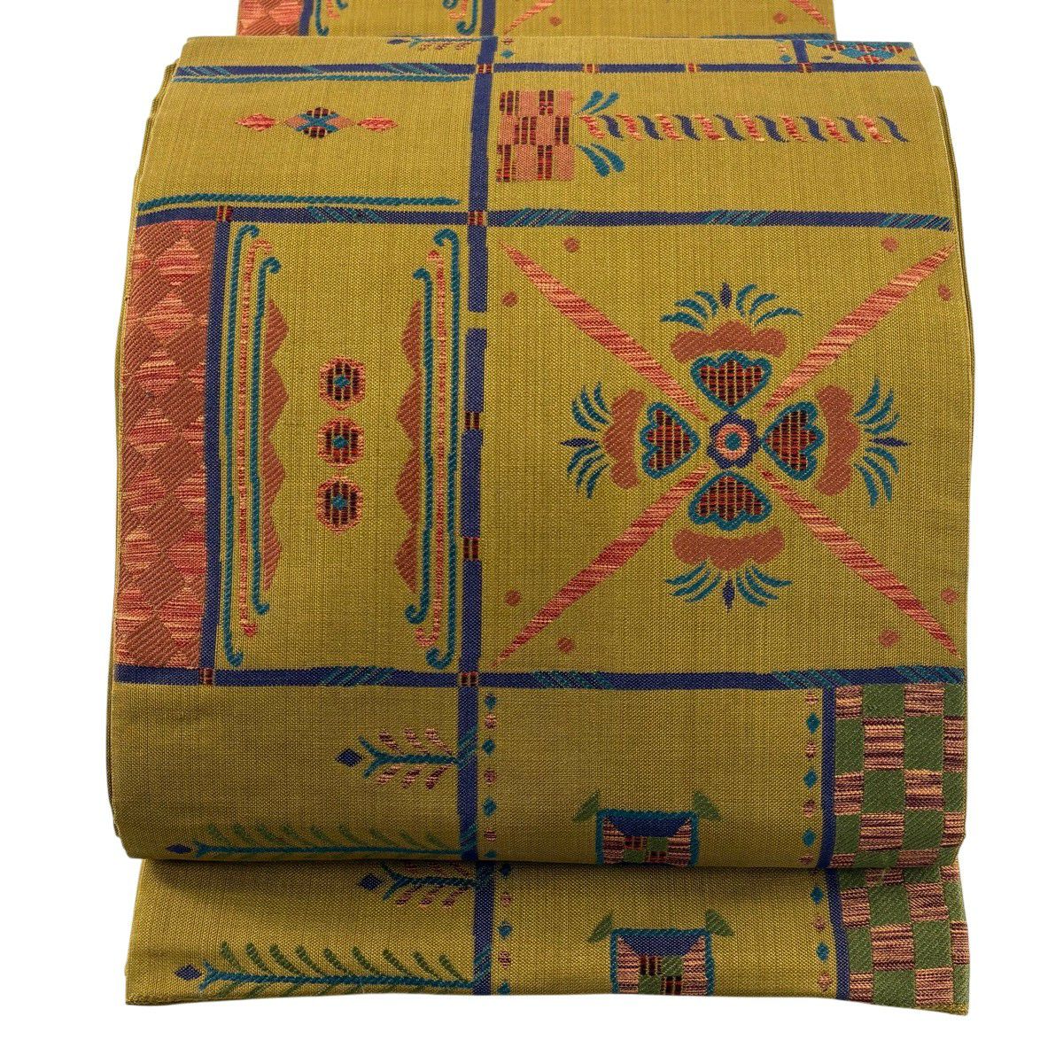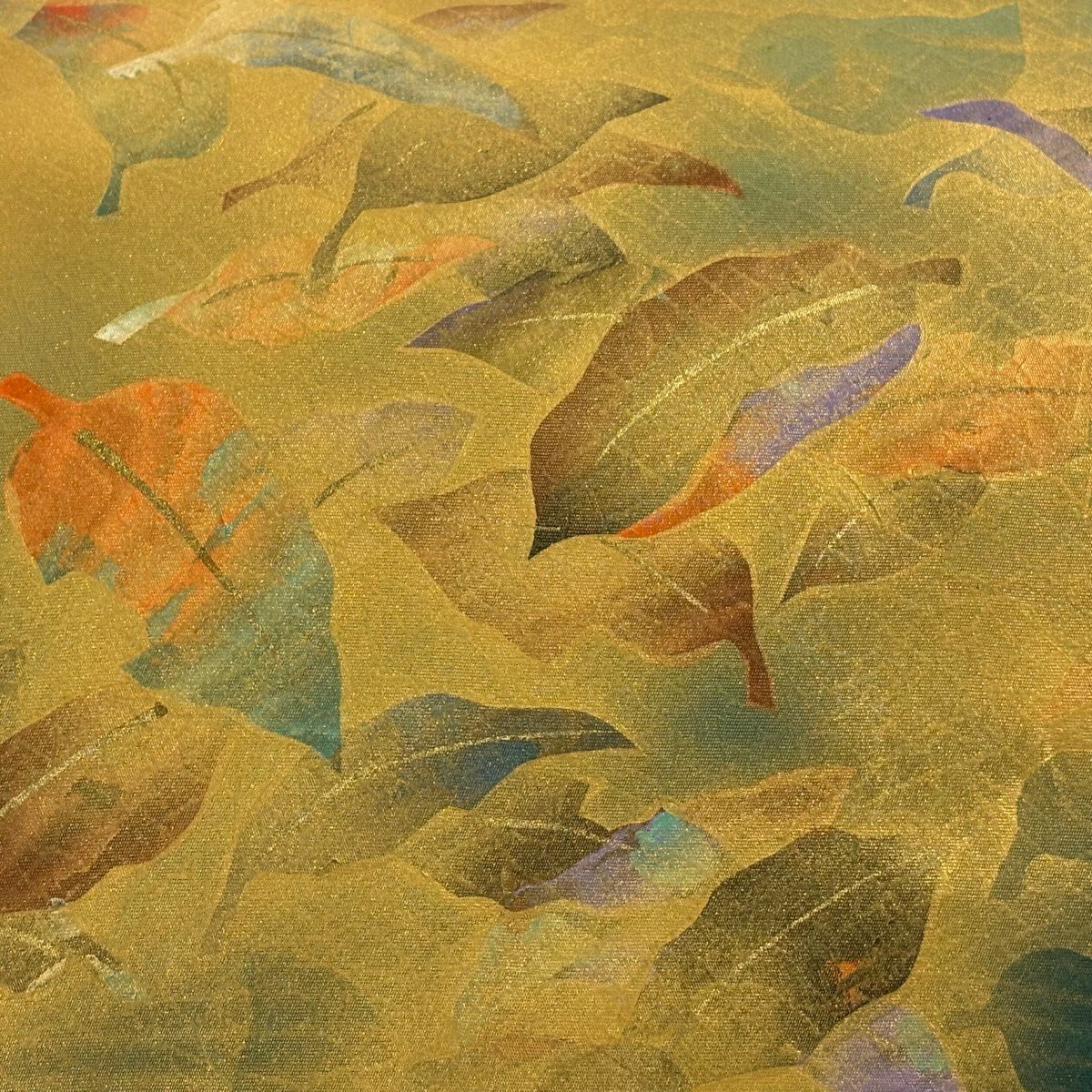 名古屋帯 秀品 葉柄 金彩 山吹茶色 正絹