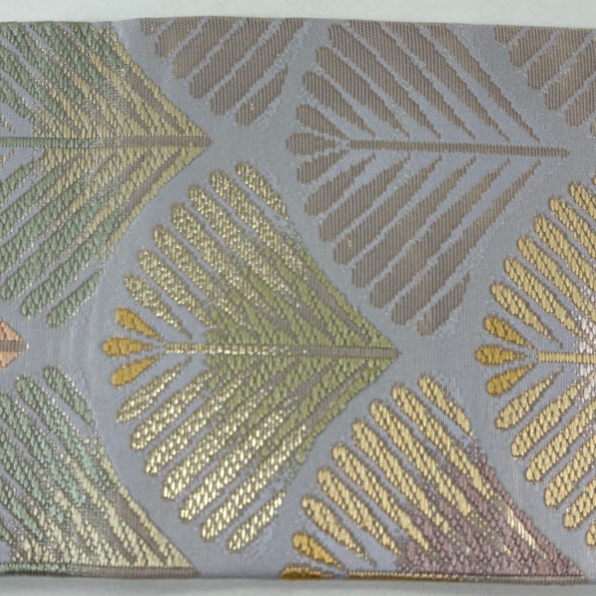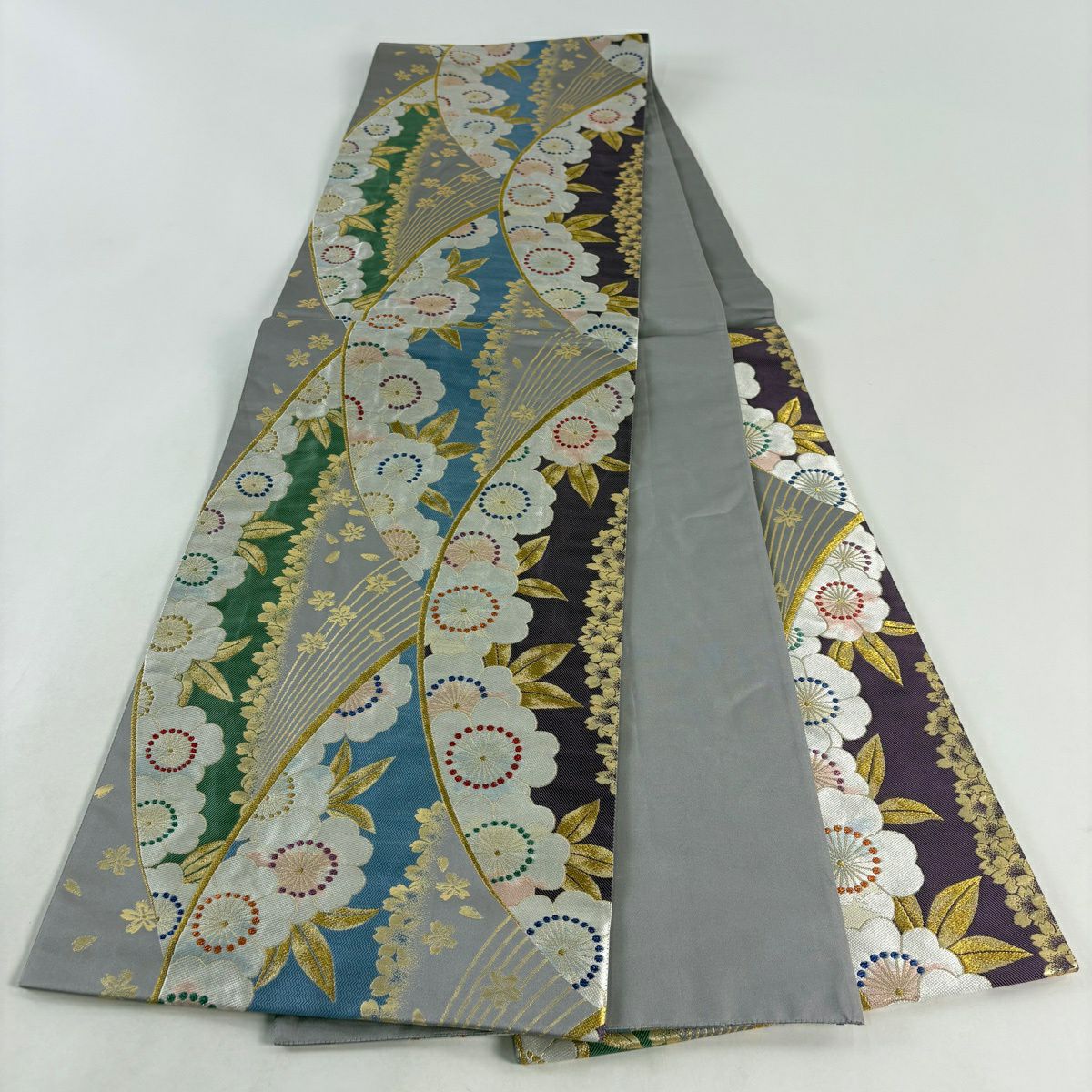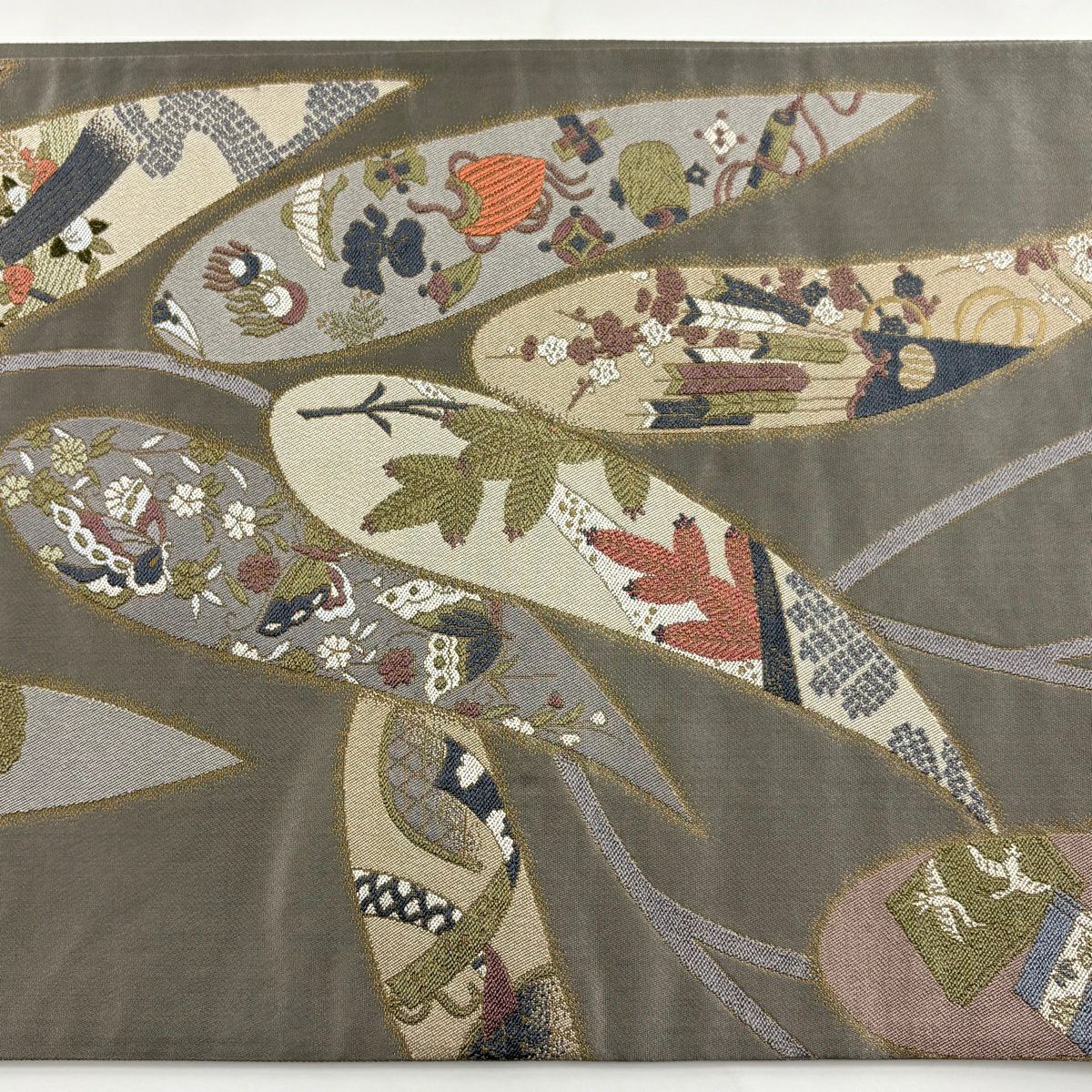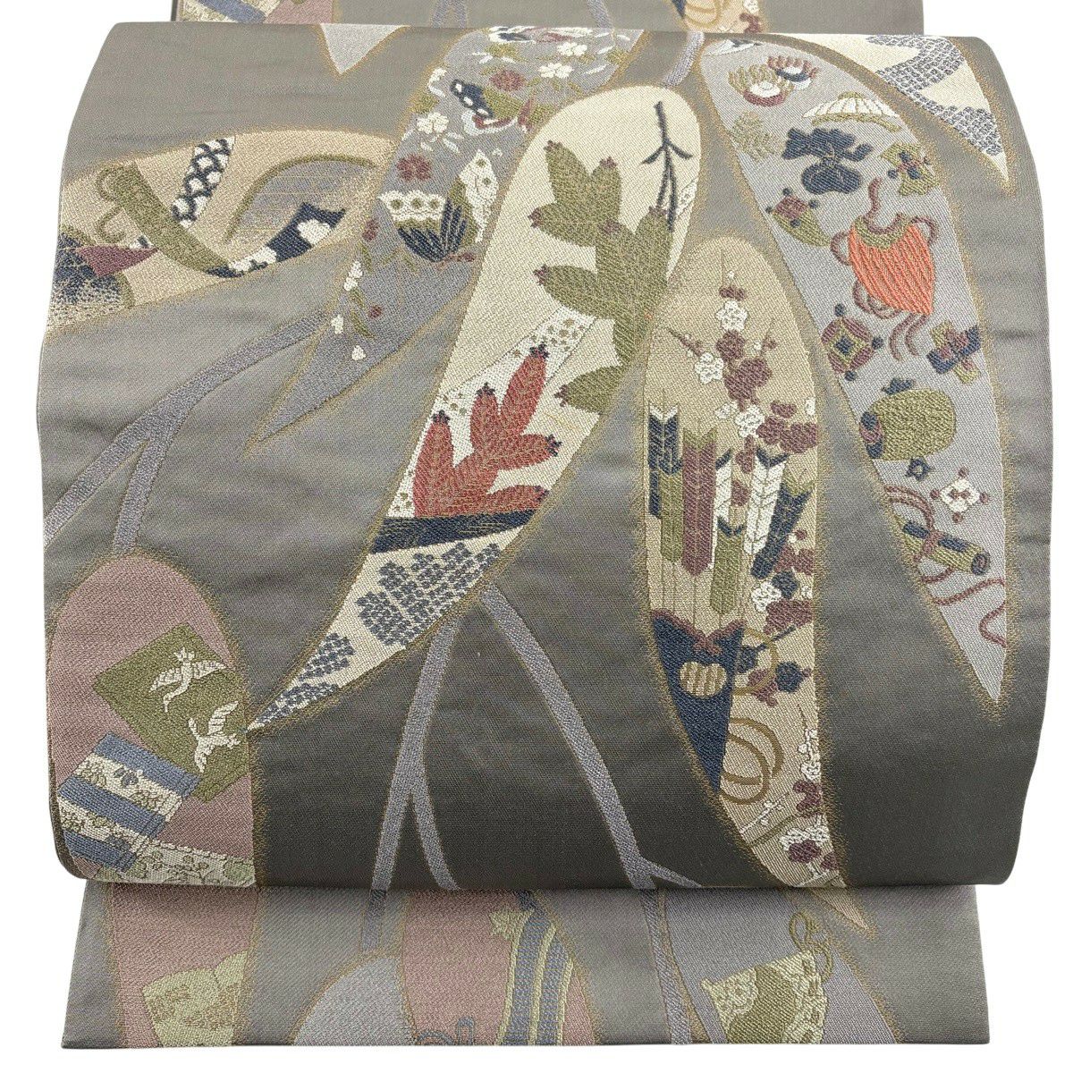 袋帯 秀品 笹 宝尽くし 灰色 六通 正絹