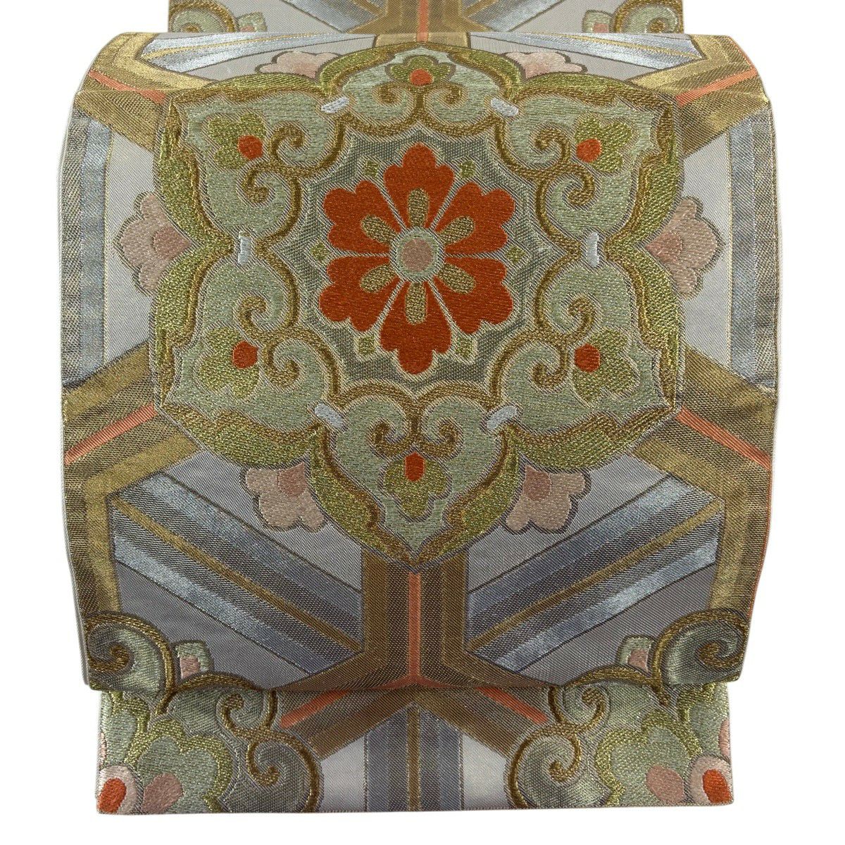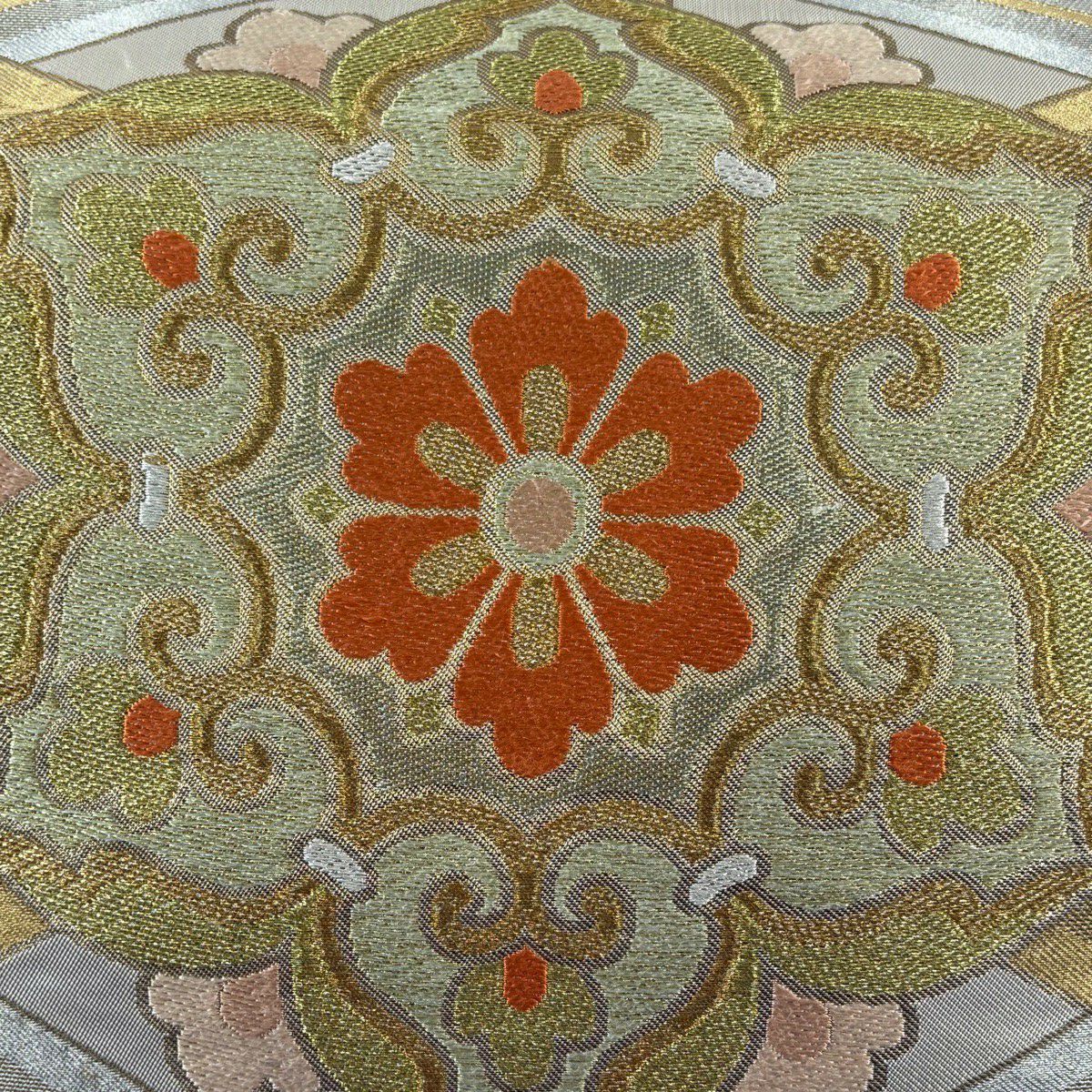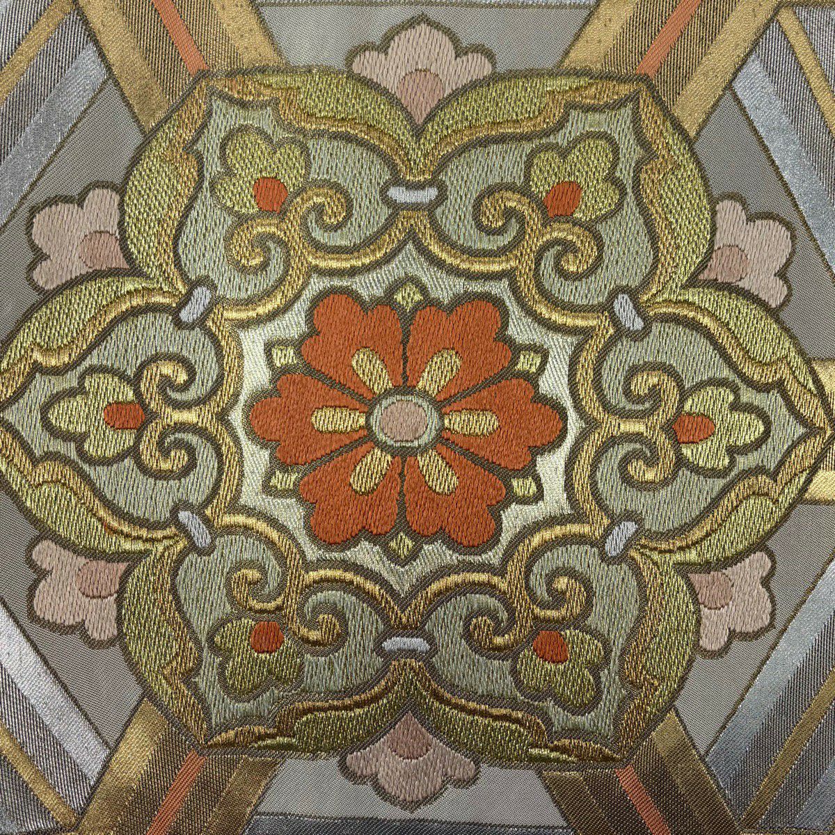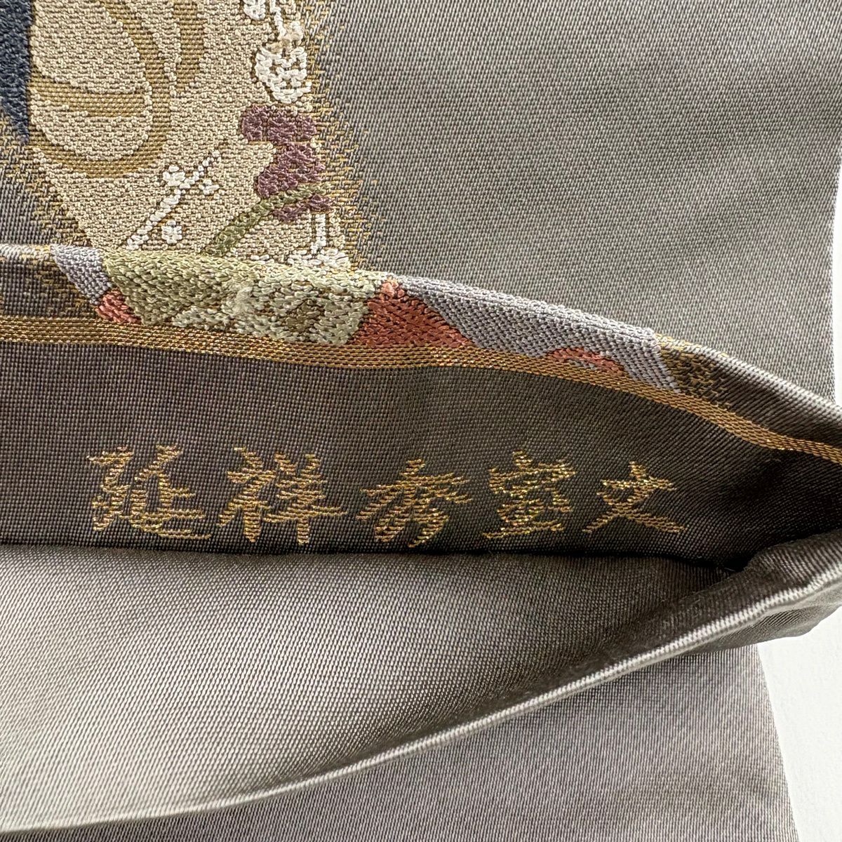袋帯 秀品 華文 金銀糸 灰茶 六通 正絹