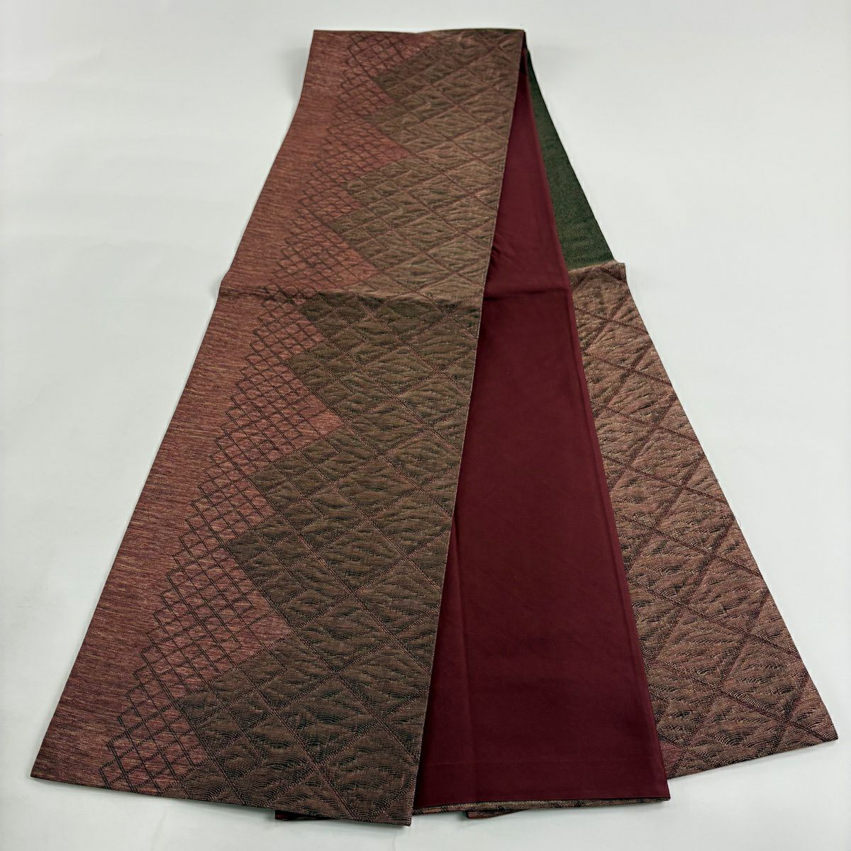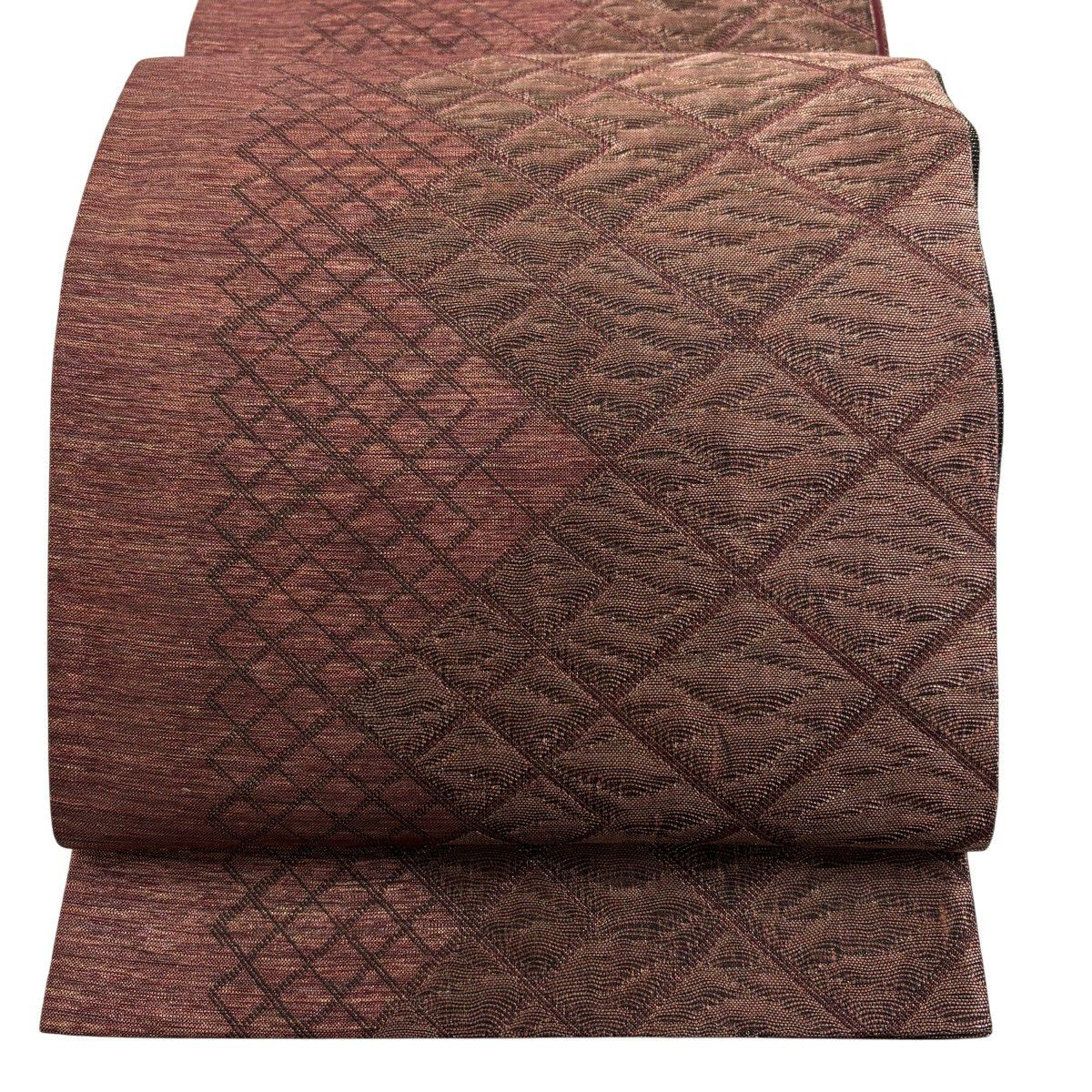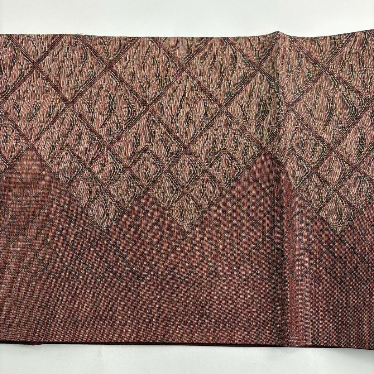 袋帯 秀品 菱 金糸 えんじ色 六通 正絹