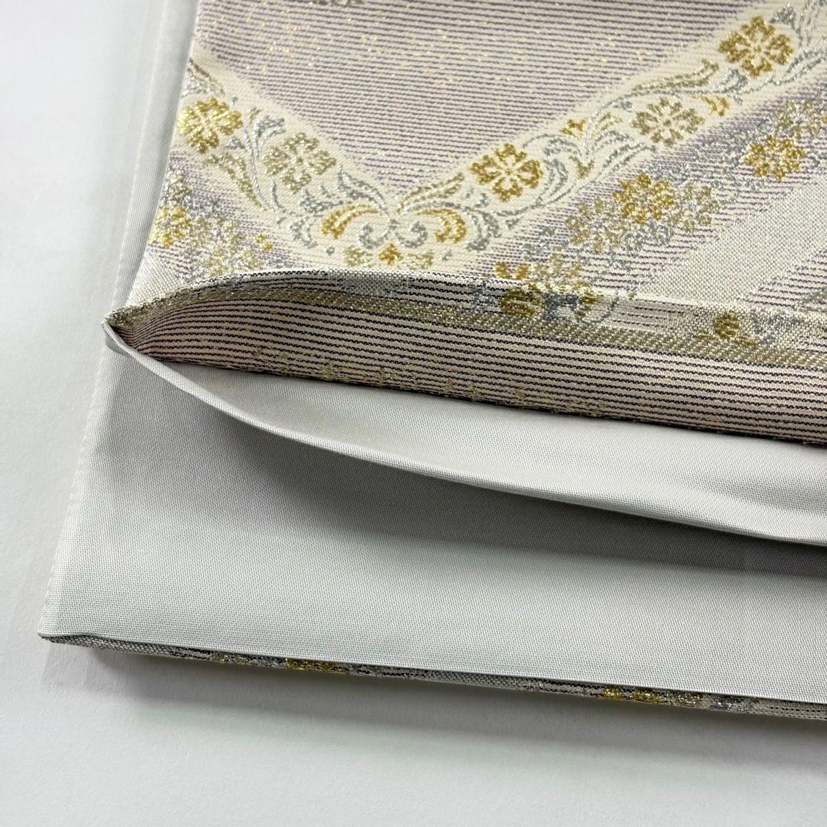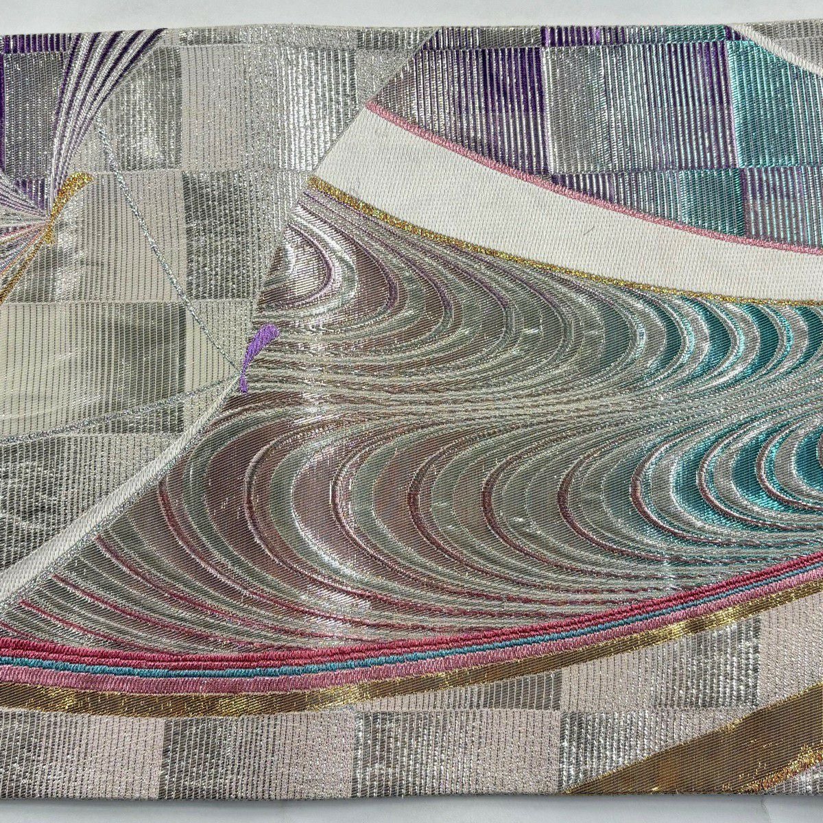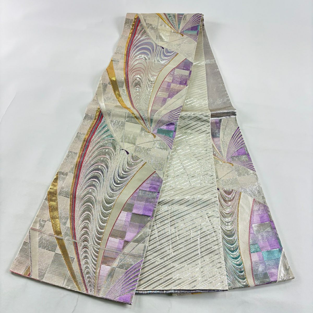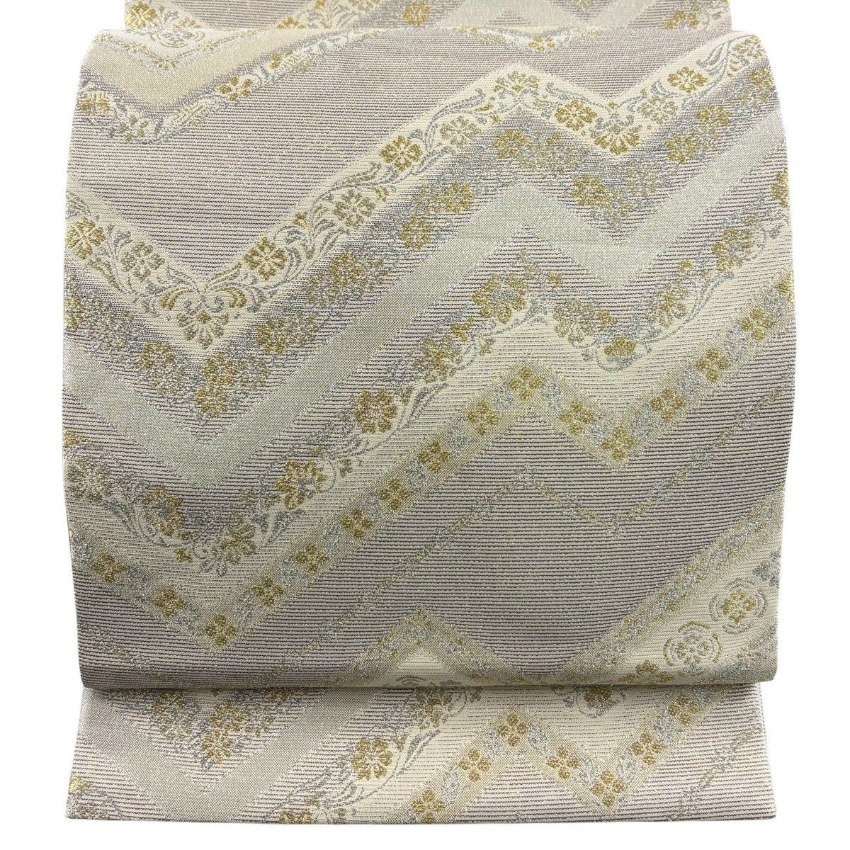袋帯 秀品 笠松 銀糸 箔 銀色 六通 正絹