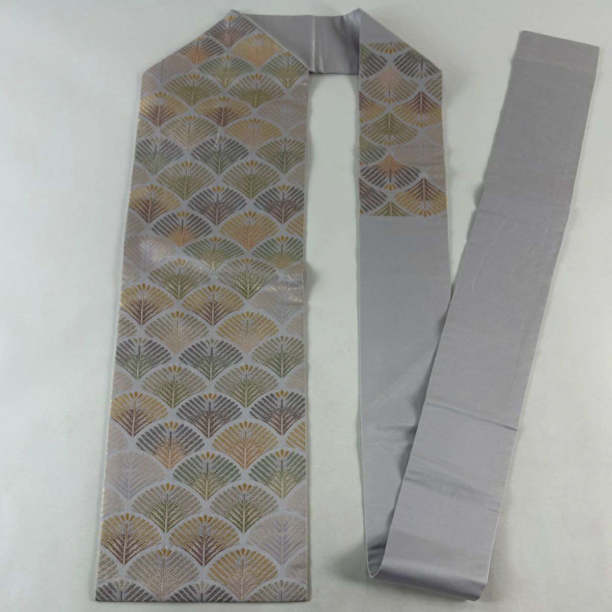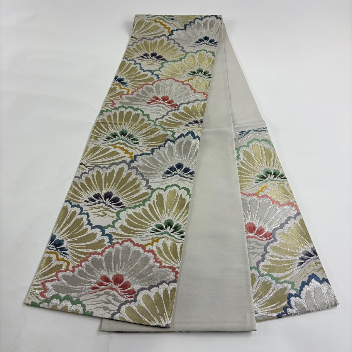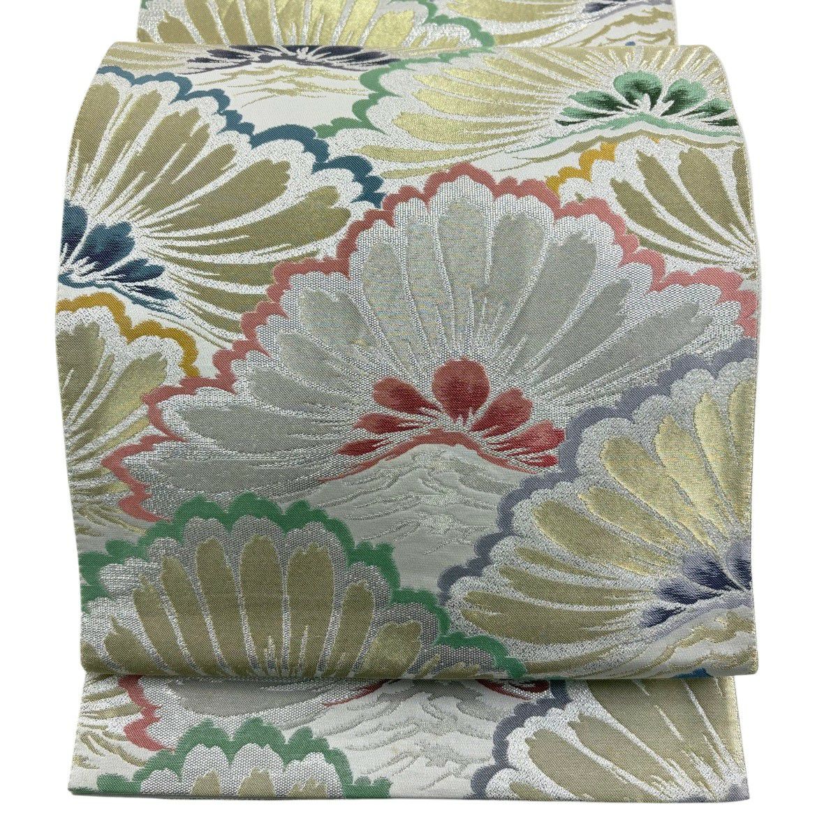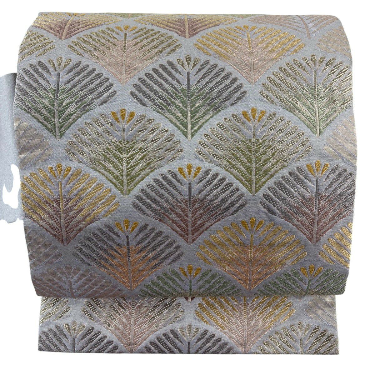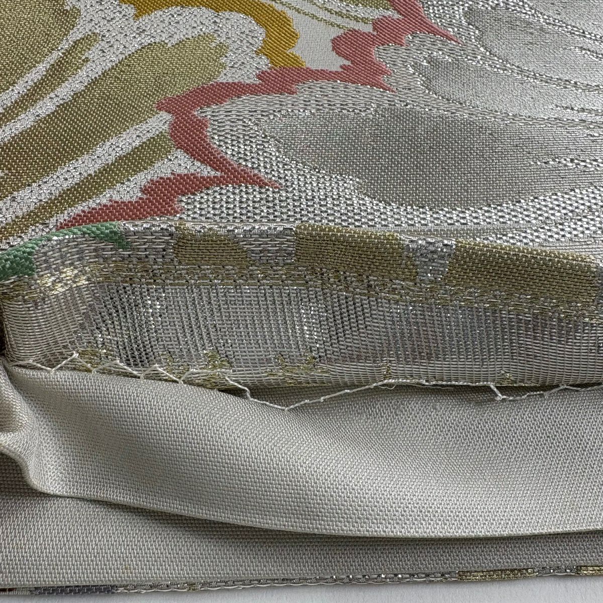 袋帯 秀品 笠松 銀糸 箔 銀色 六通 正絹