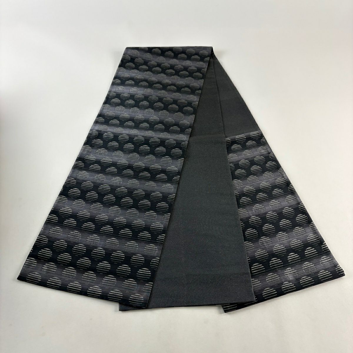 袋名古屋帯 秀品 丸紋 縞 箔 灰色 正絹