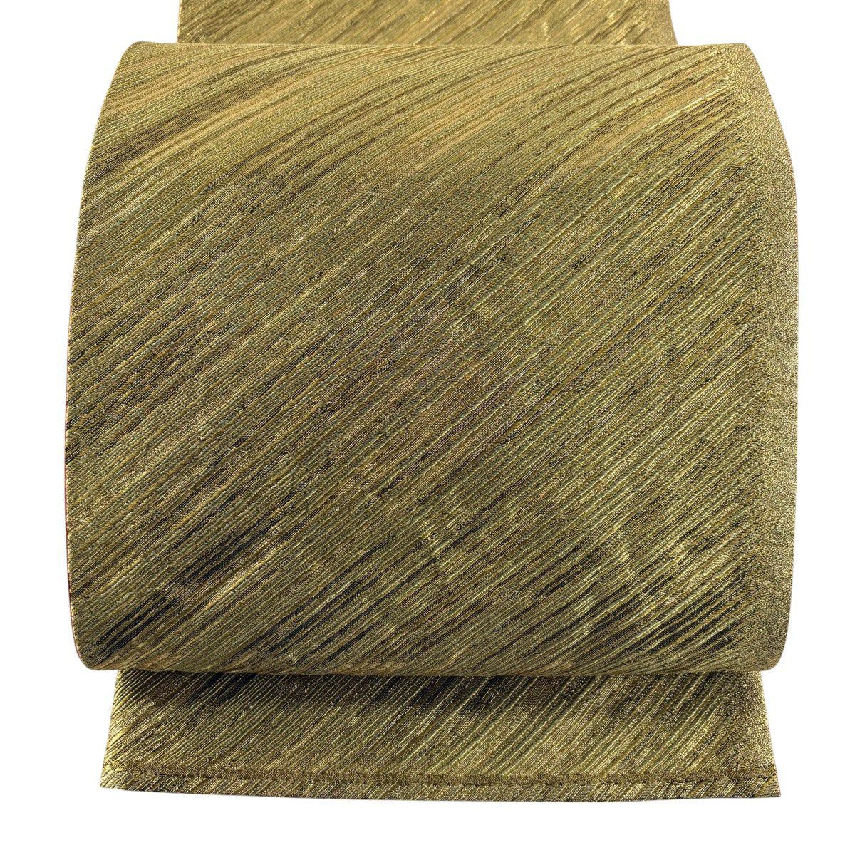 袋帯 秀品 斜縞 金糸 箔 金茶 六通 正絹