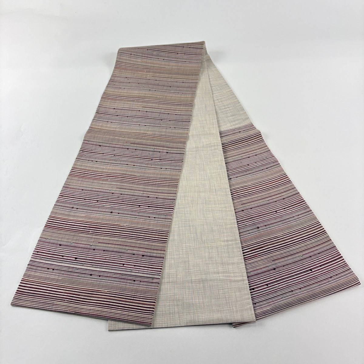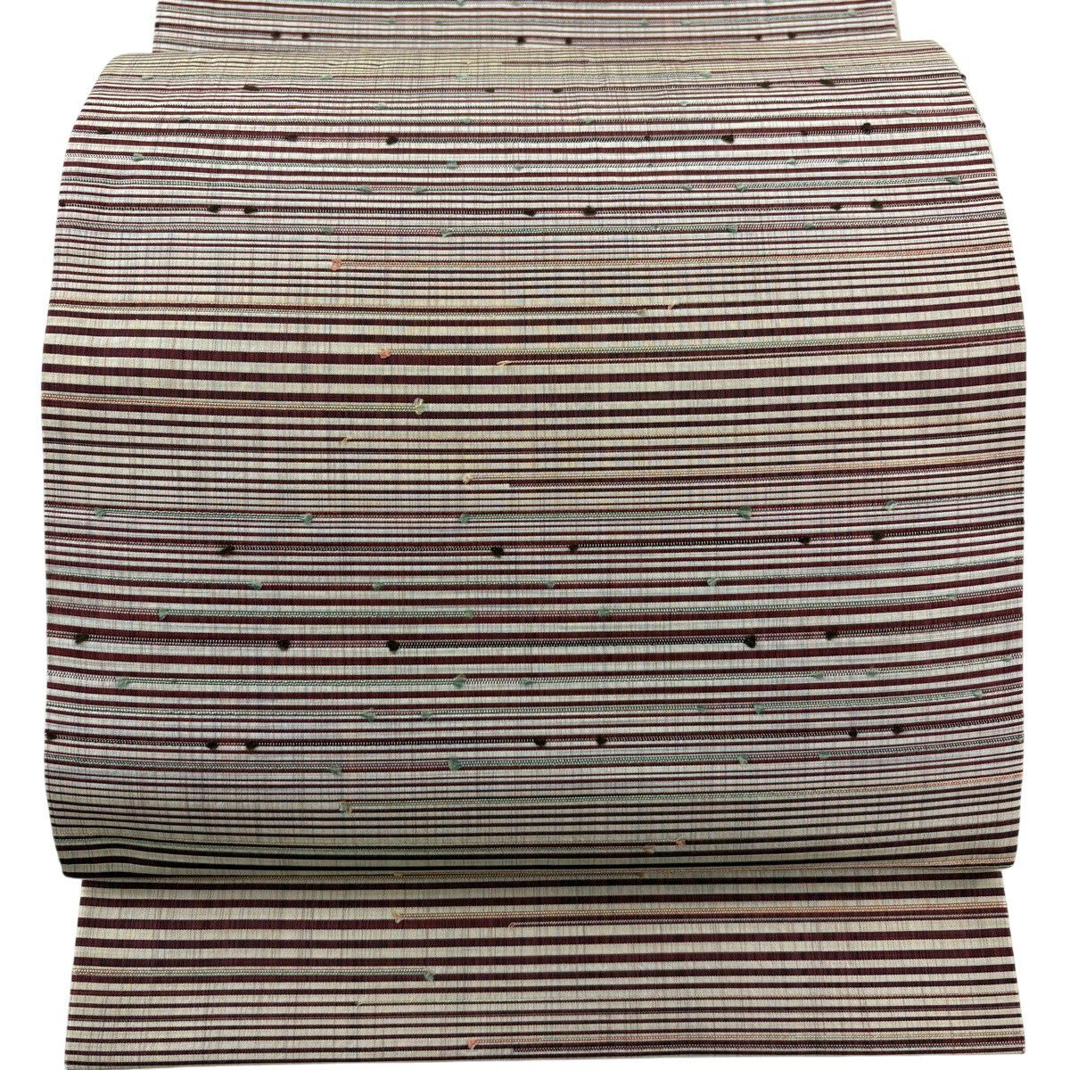 【美品】 袋帯 秀品 縞 茶紫 六通 正絹