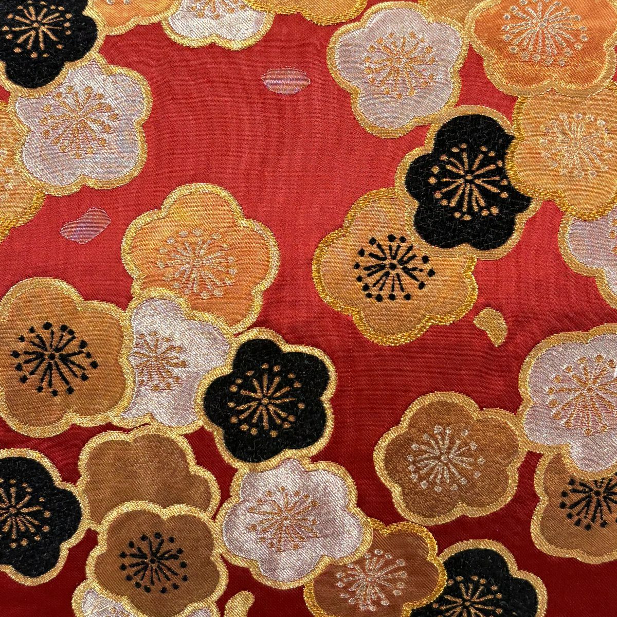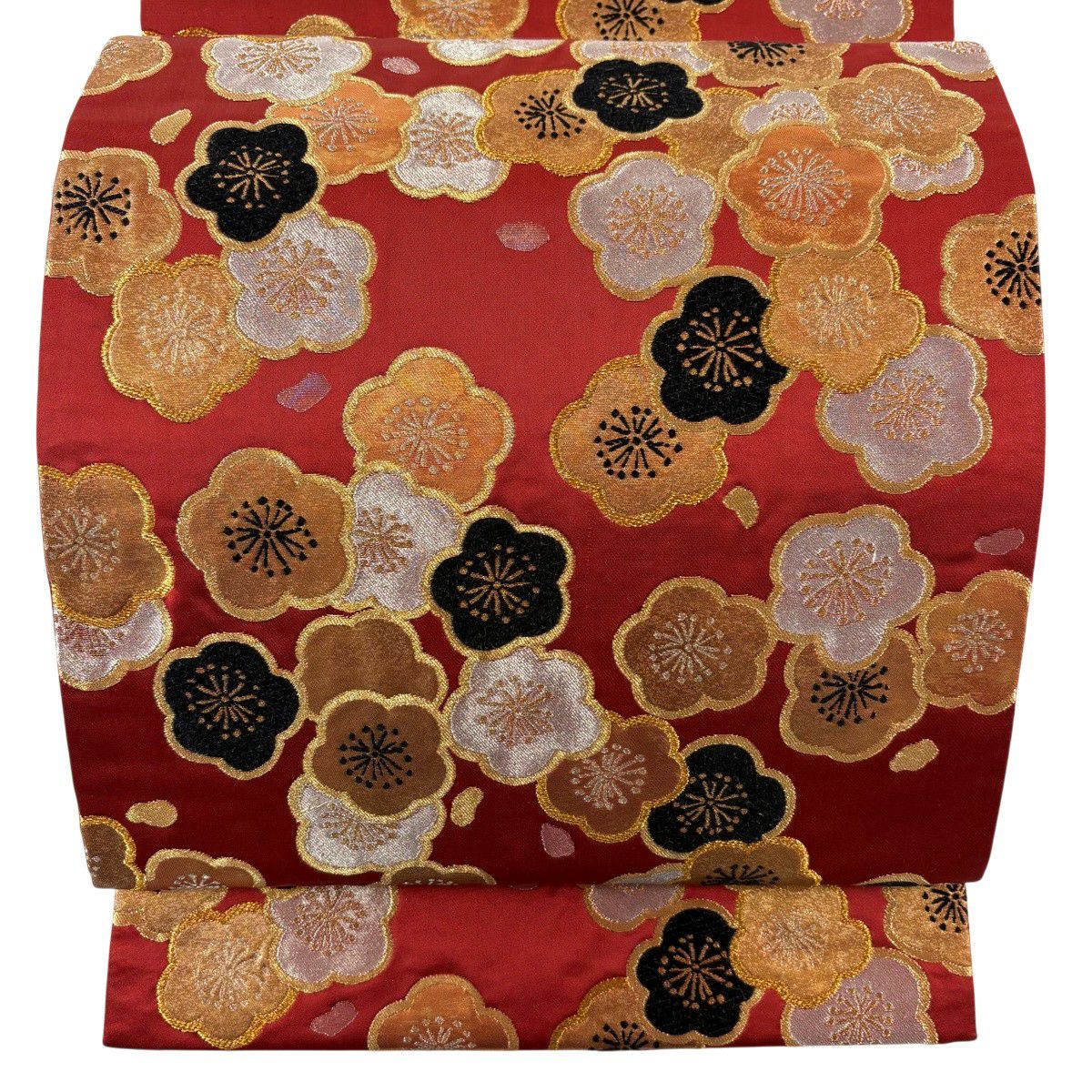 袋帯 秀品 梅 金銀糸 箔 赤 全通 正絹