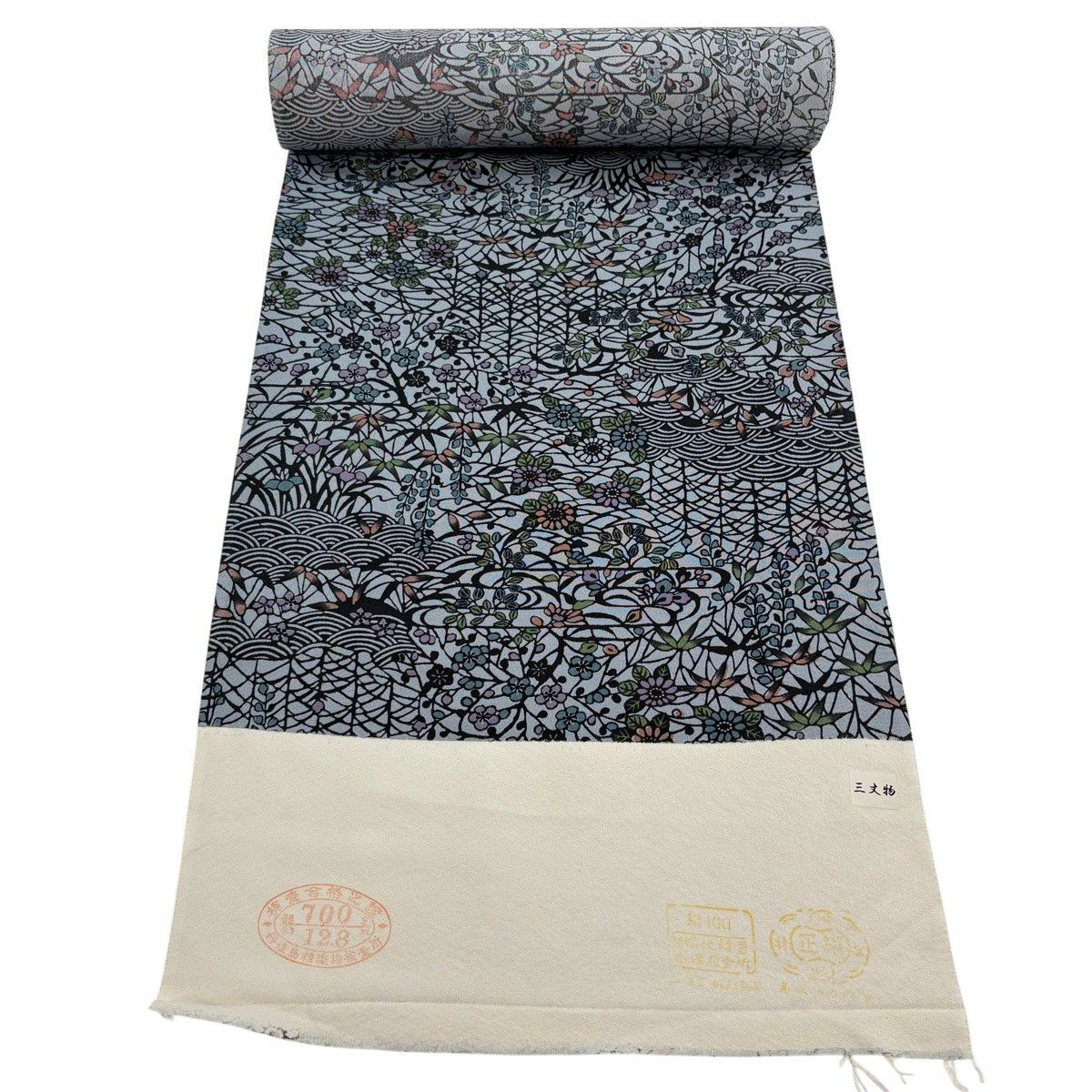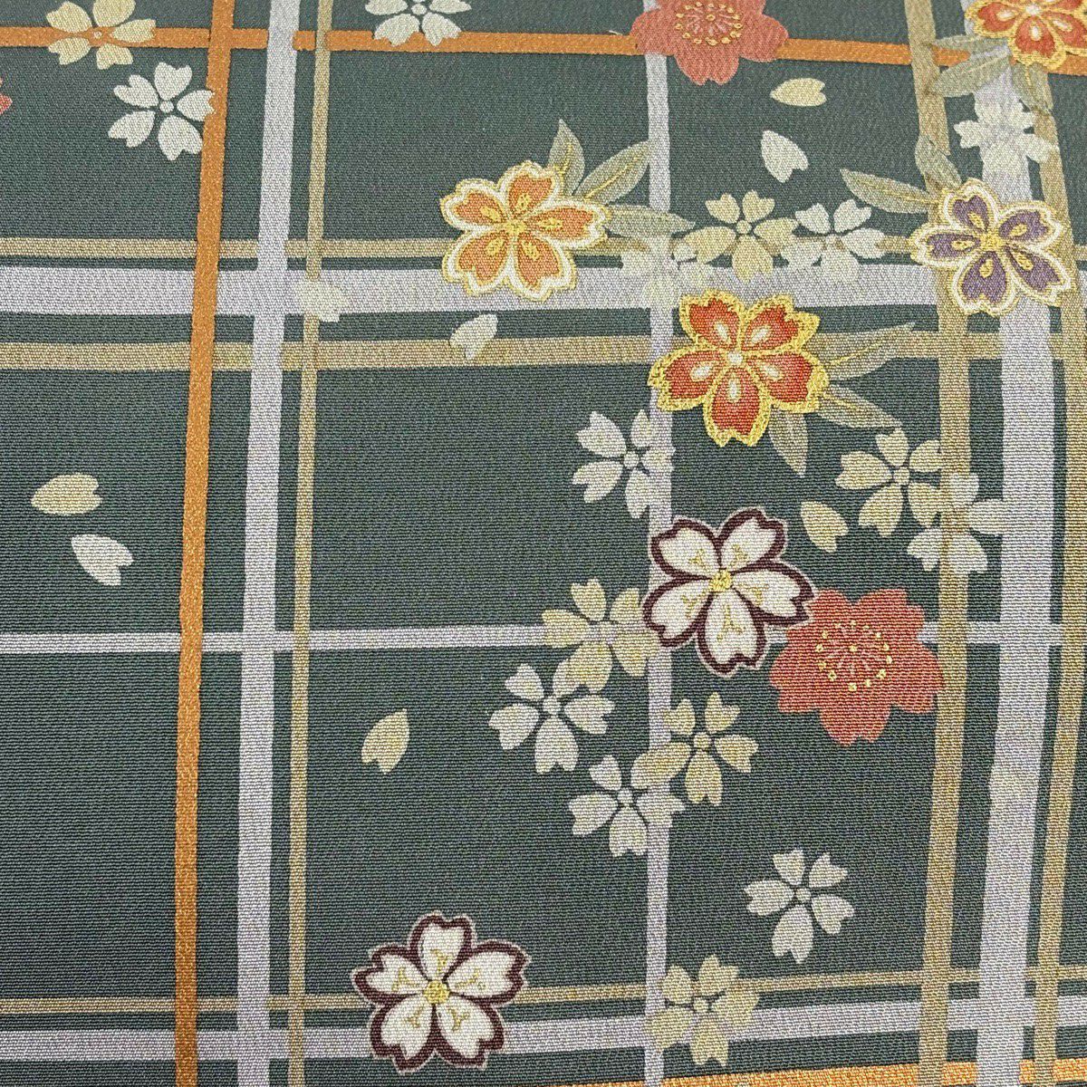 反物 秀品 小紋 桜 斜め格子 灰桜 正絹