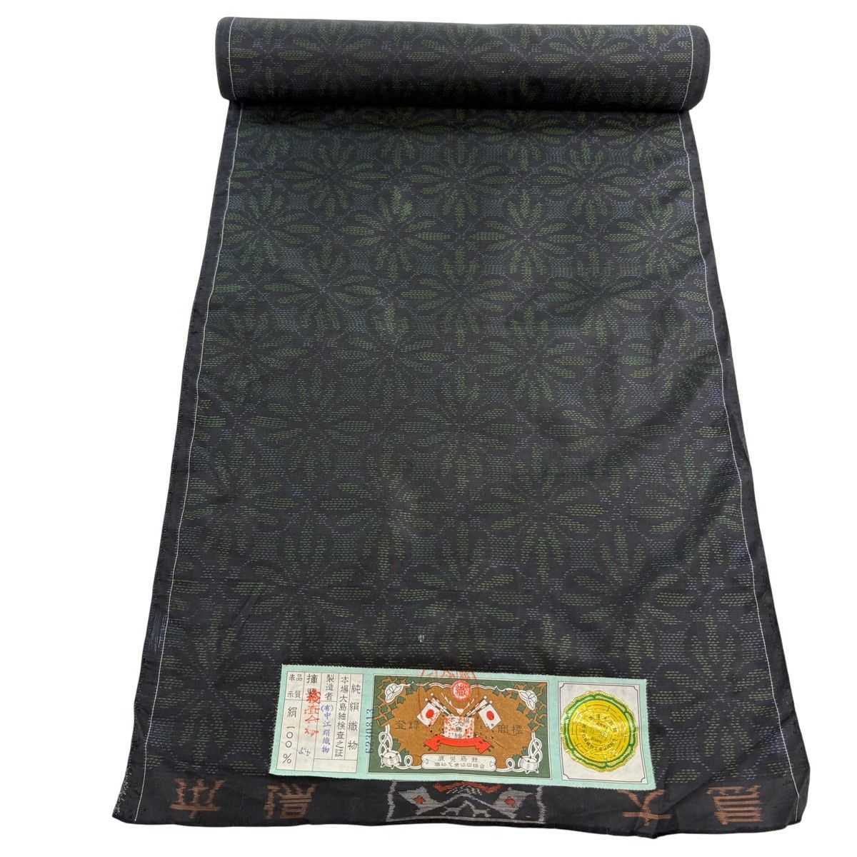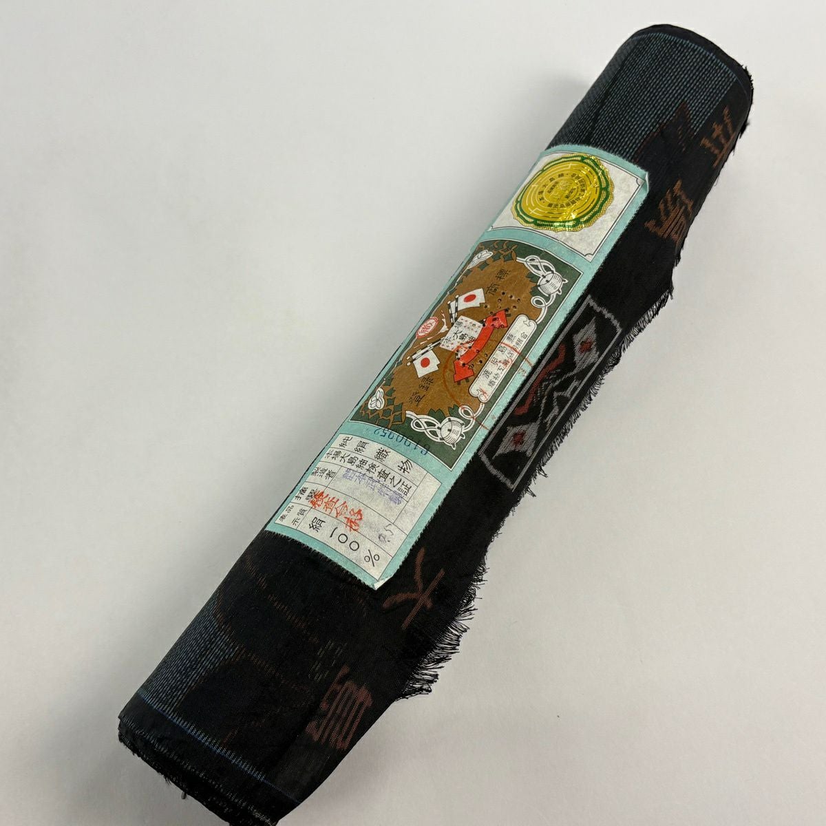 反物 秀品 大島紬 亀甲 華文 赤黒 正絹