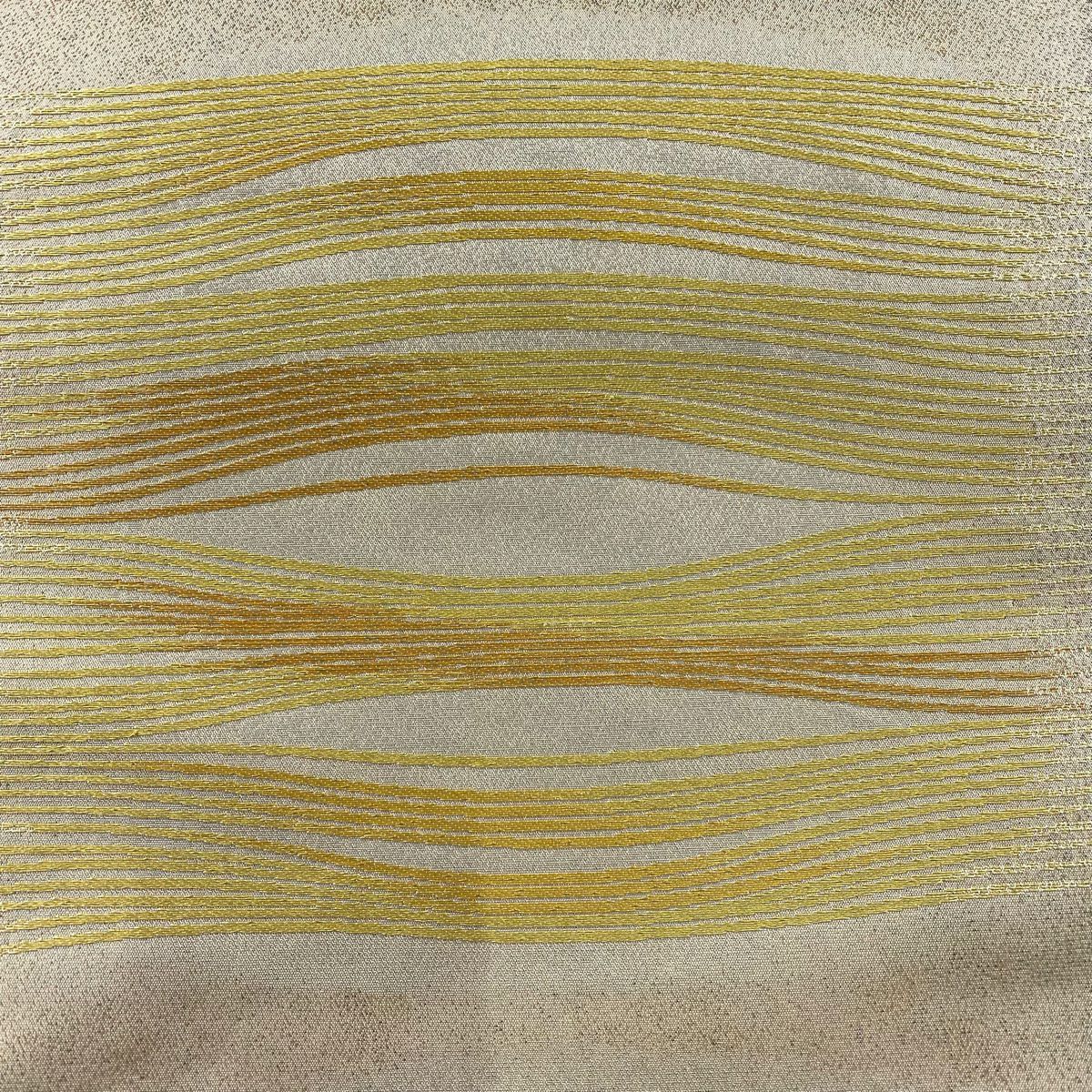 【在庫一掃】 袋帯 秀品 幾何学模様 縞 箔 クリーム お太鼓柄 正絹