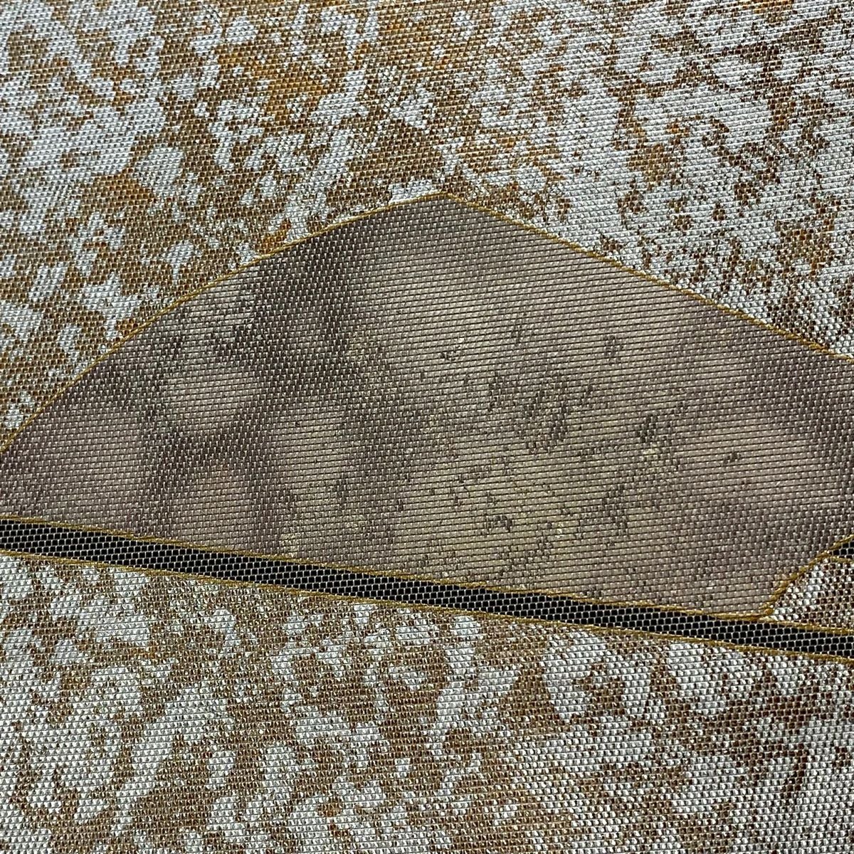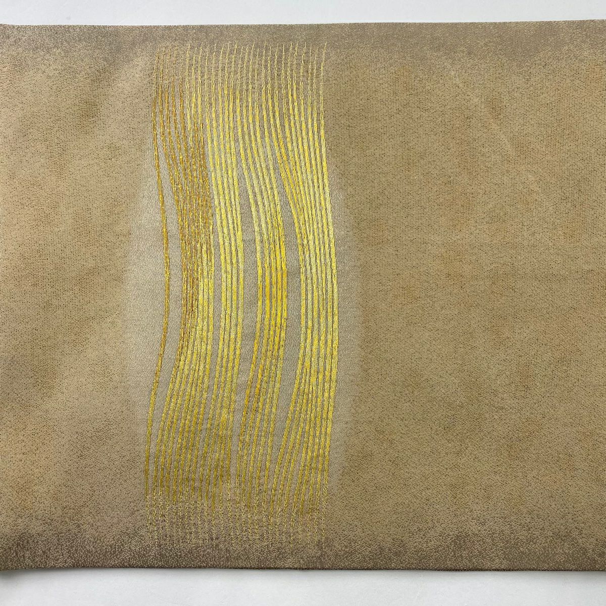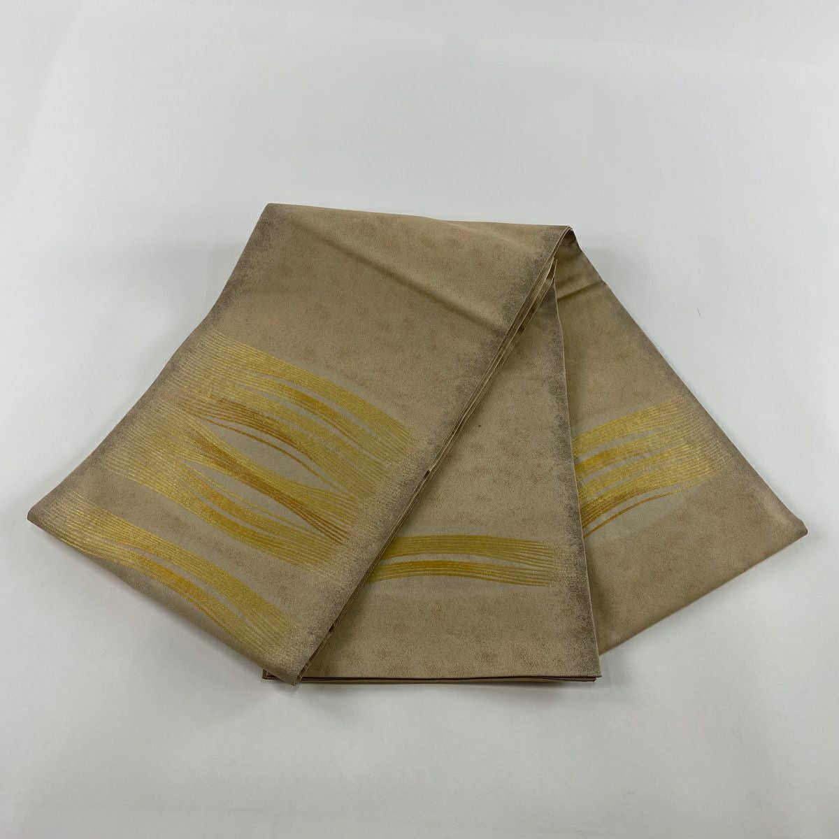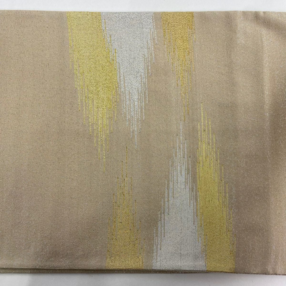 【在庫一掃】 袋帯 秀品 霞 幾何学 箔 金糸 薄茶色 お太鼓柄 正絹