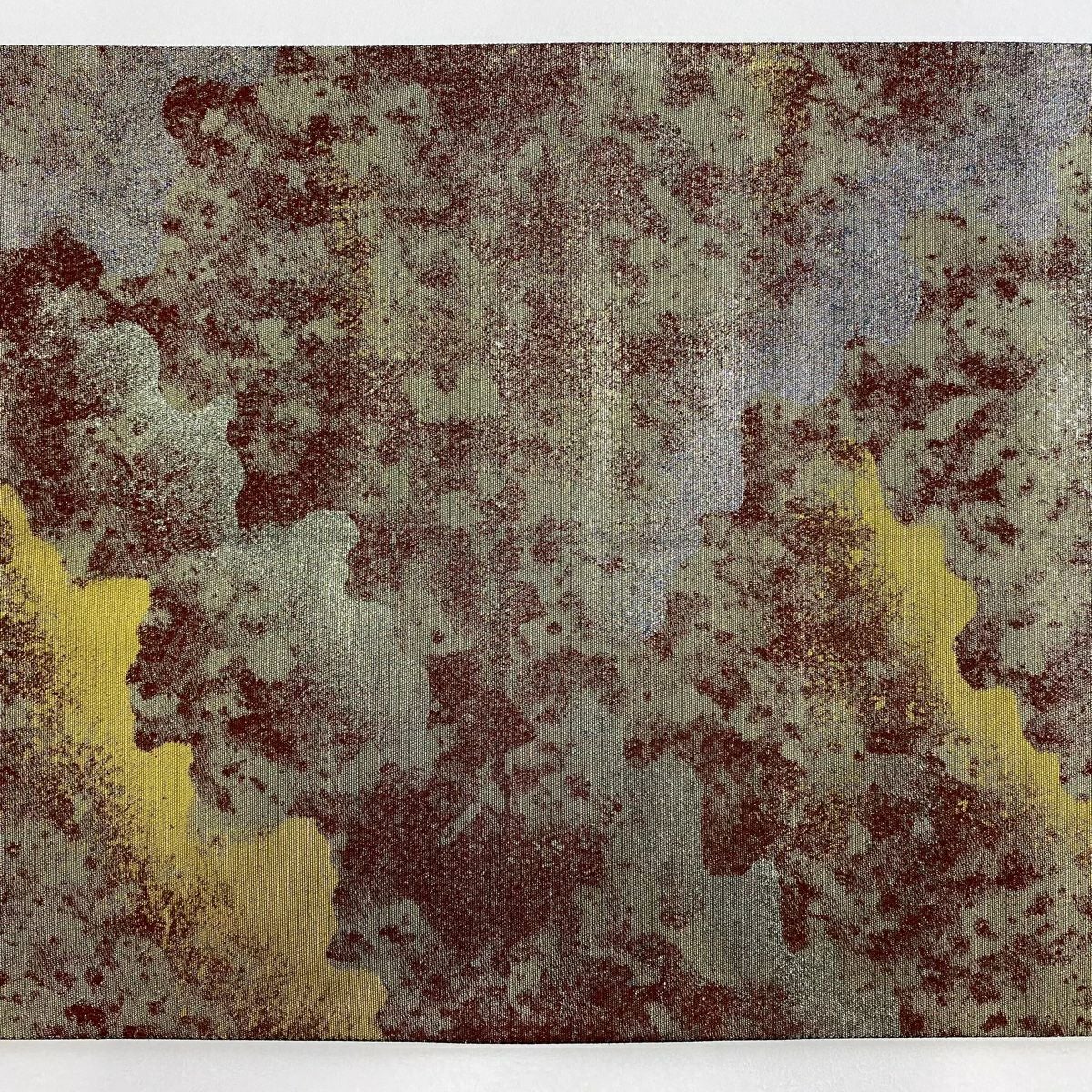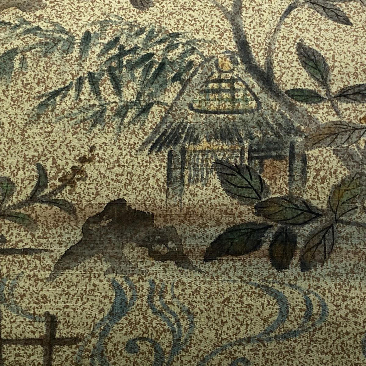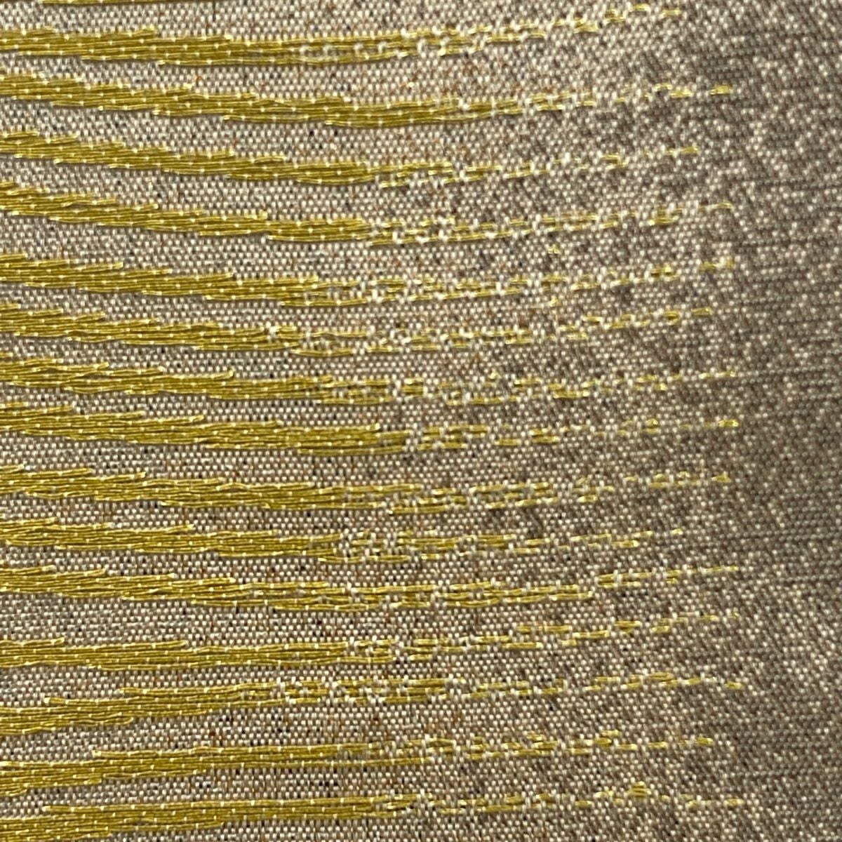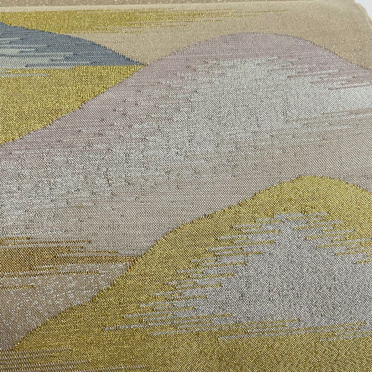 【在庫一掃】 袋帯 秀品 霞 幾何学 箔 金糸 薄茶色 お太鼓柄 正絹