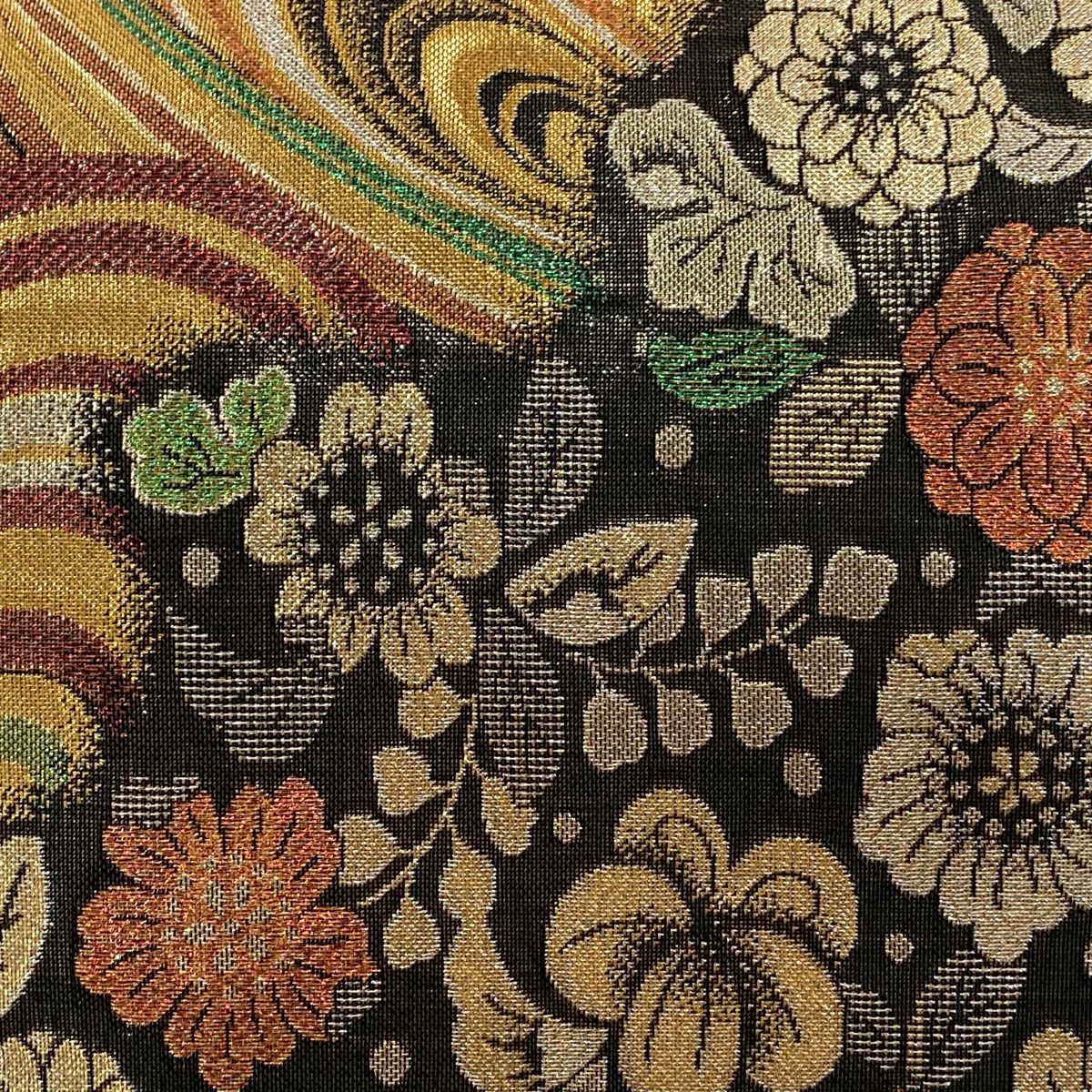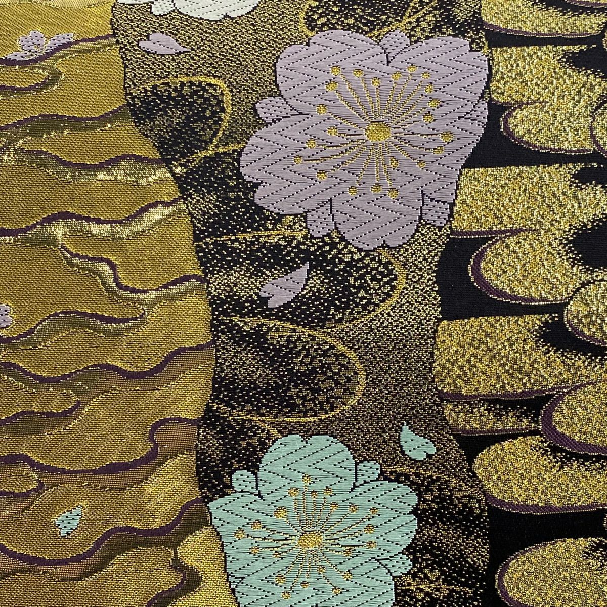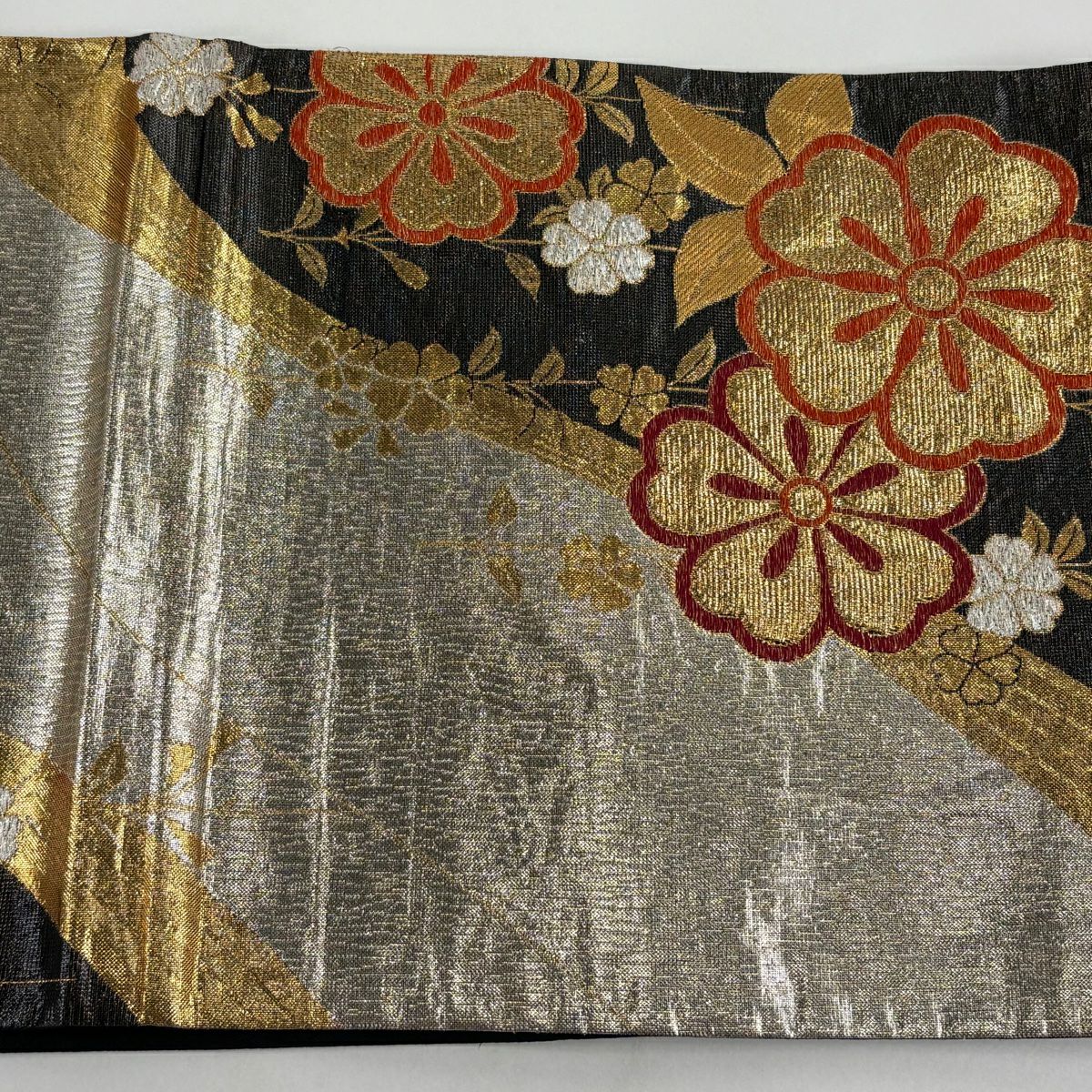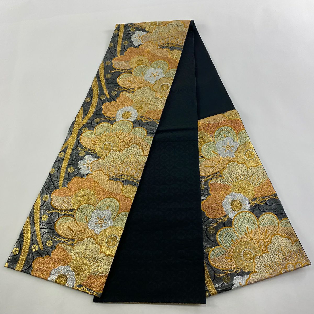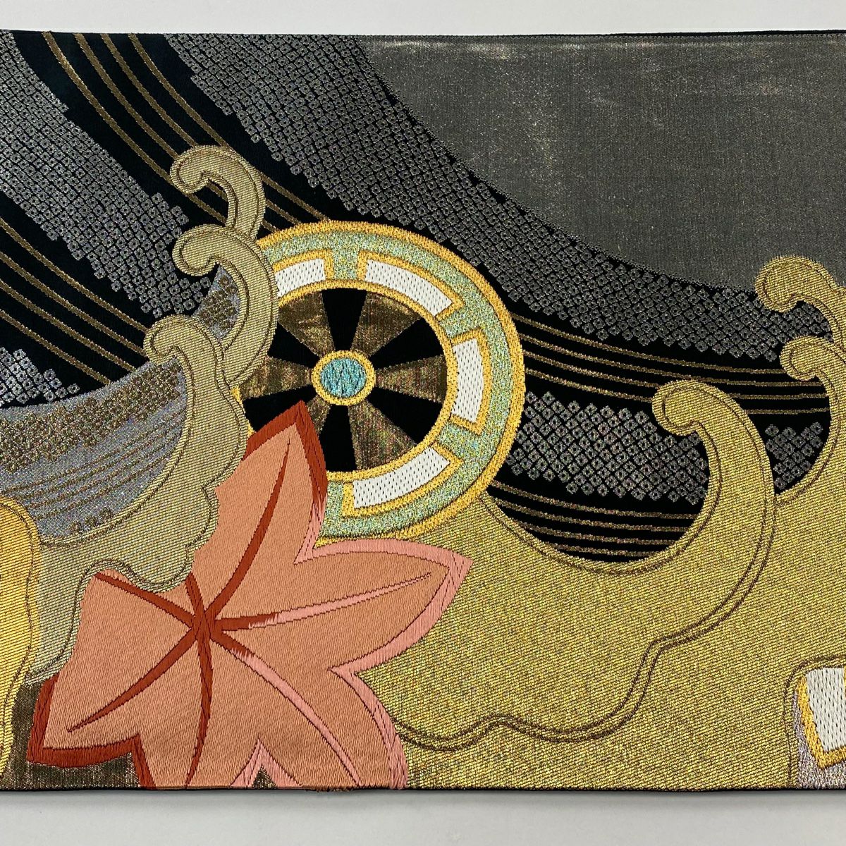 【在庫一掃】 【美品】 袋帯 秀品 草花 波 箔 金糸 墨色 六通 正絹