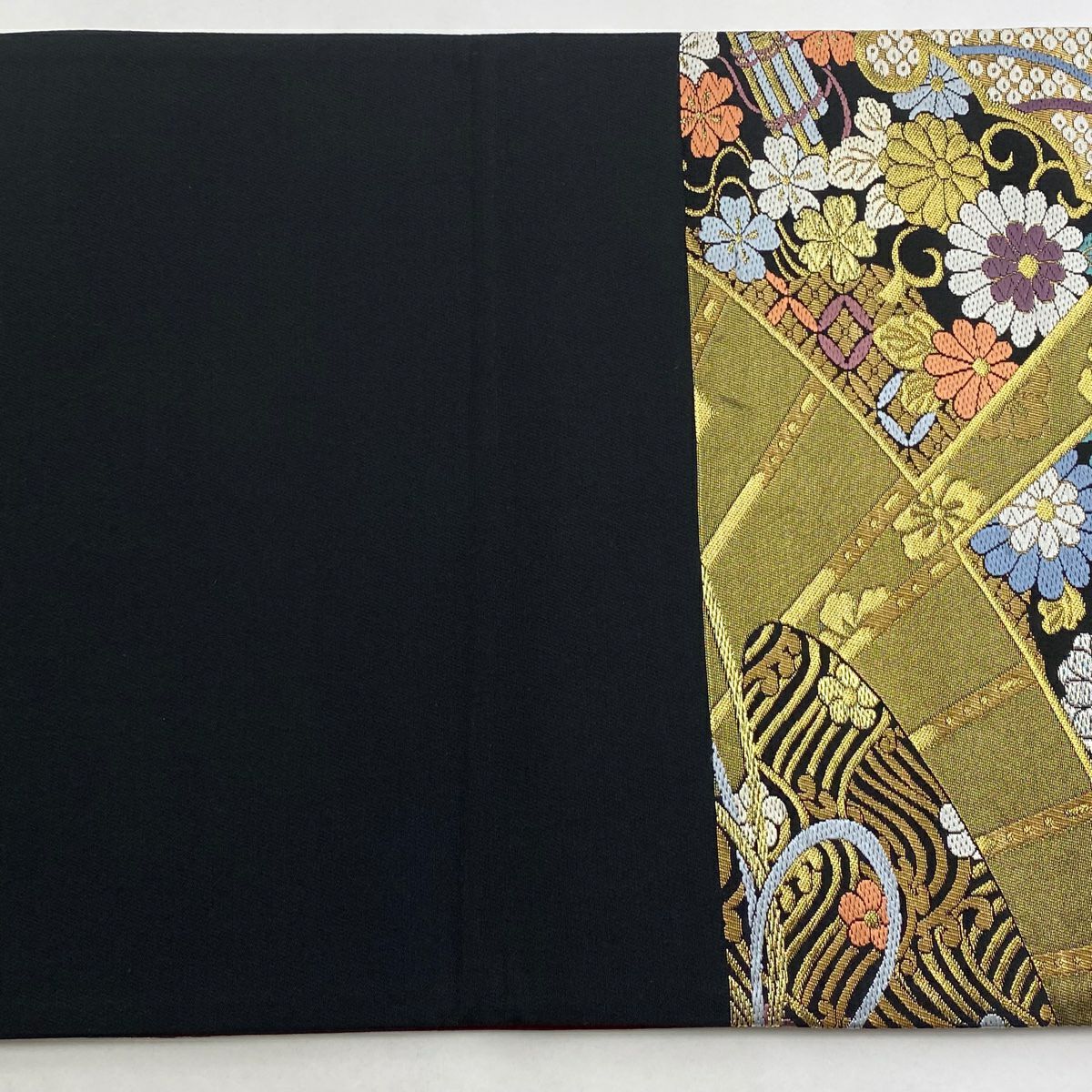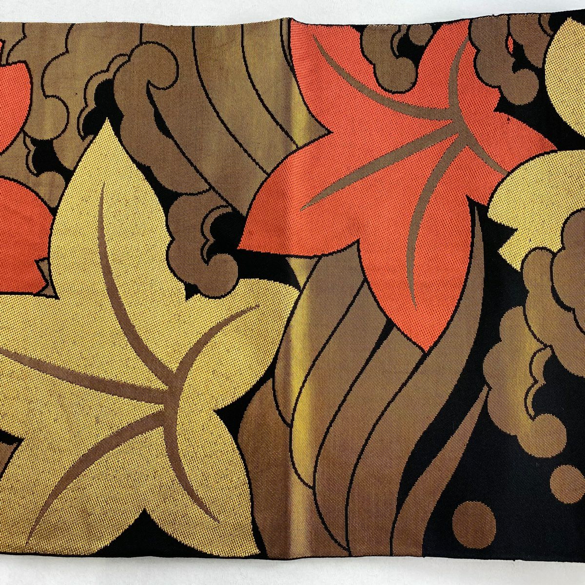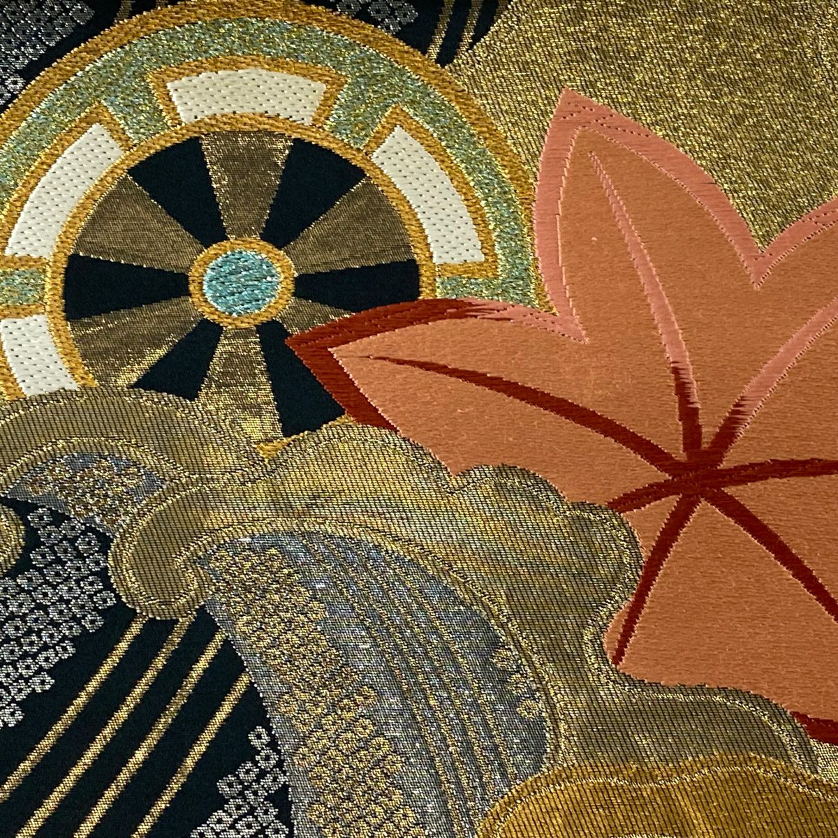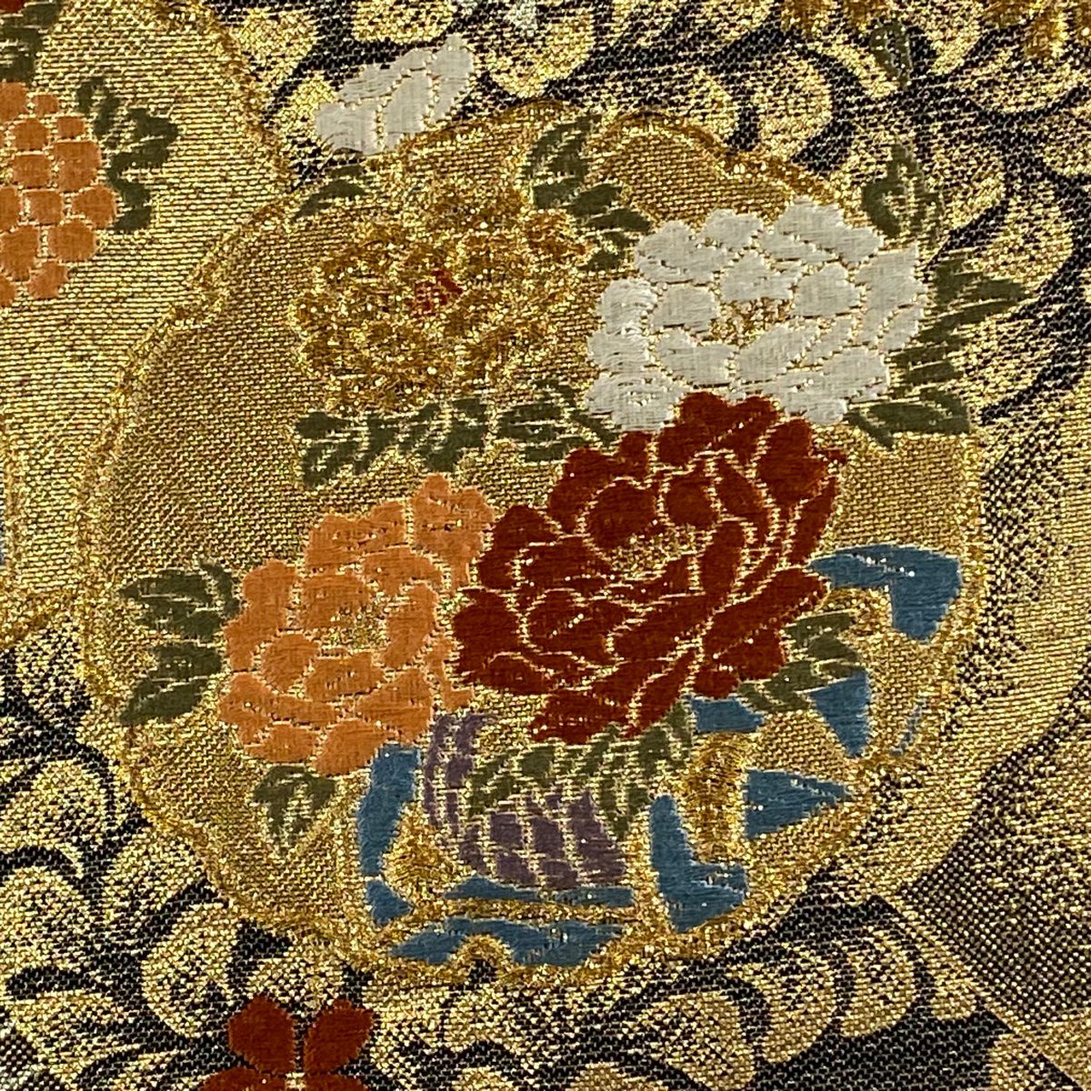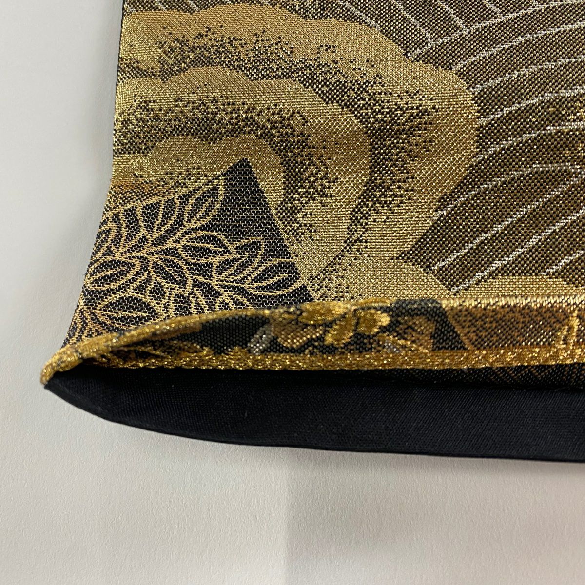 【在庫一掃】 【美品】 袋帯 秀品 草花 波 箔 金糸 墨色 六通 正絹