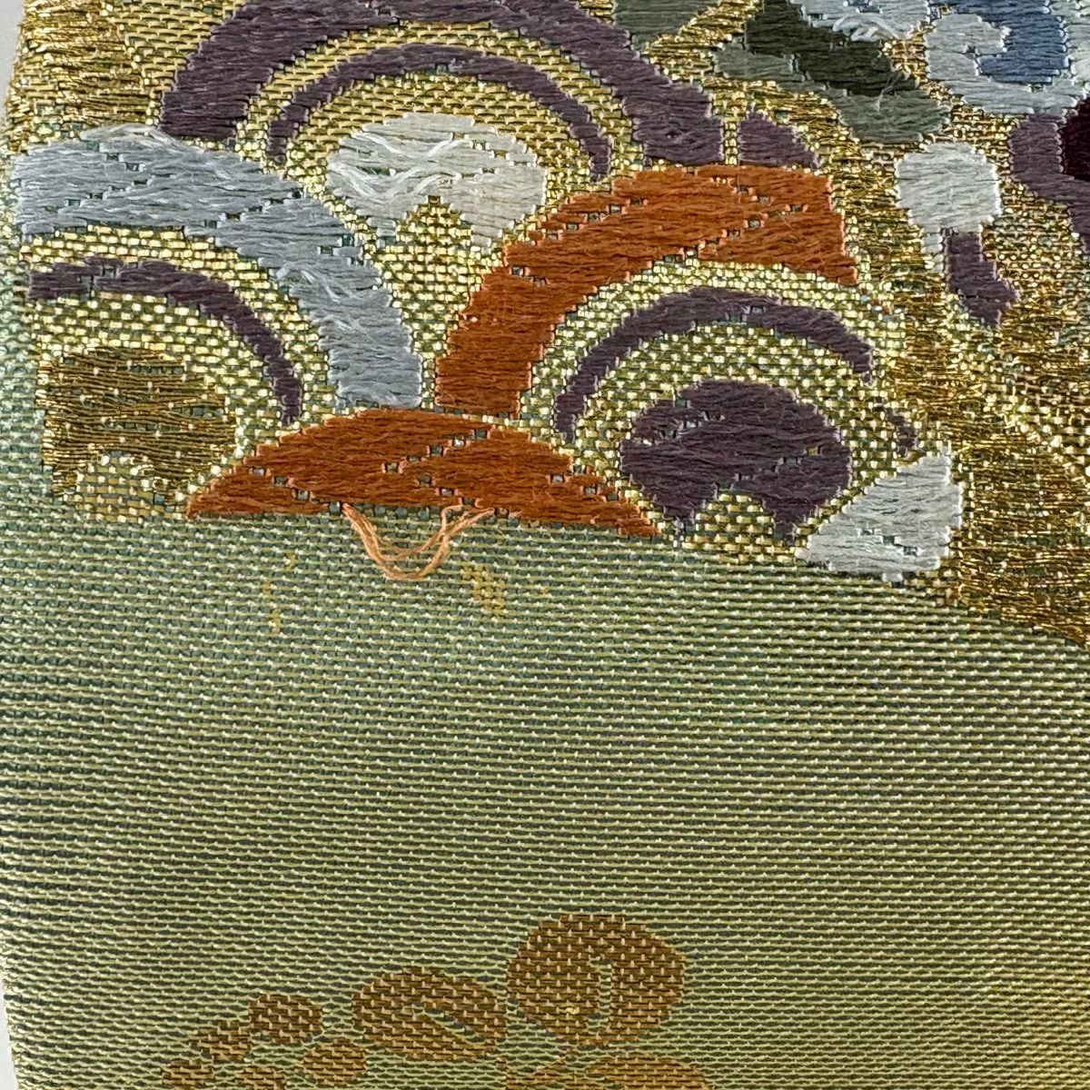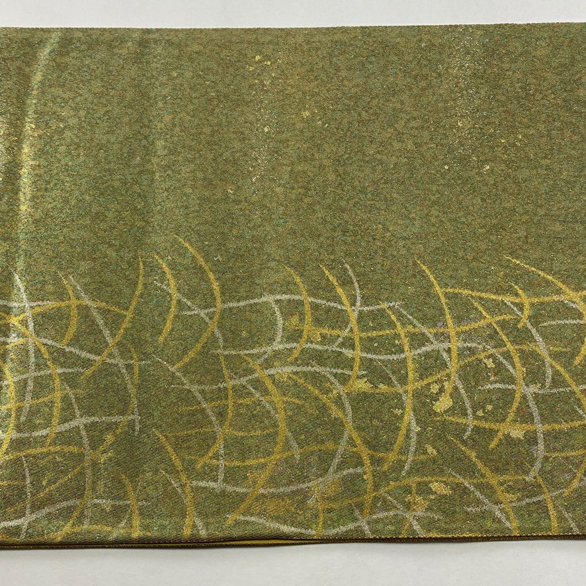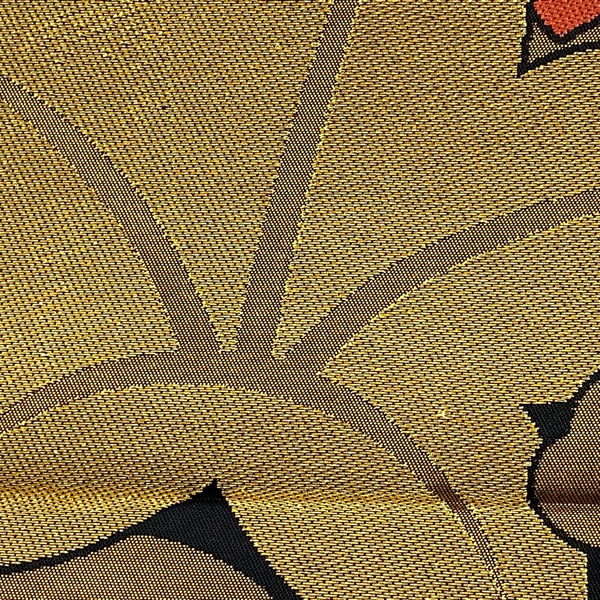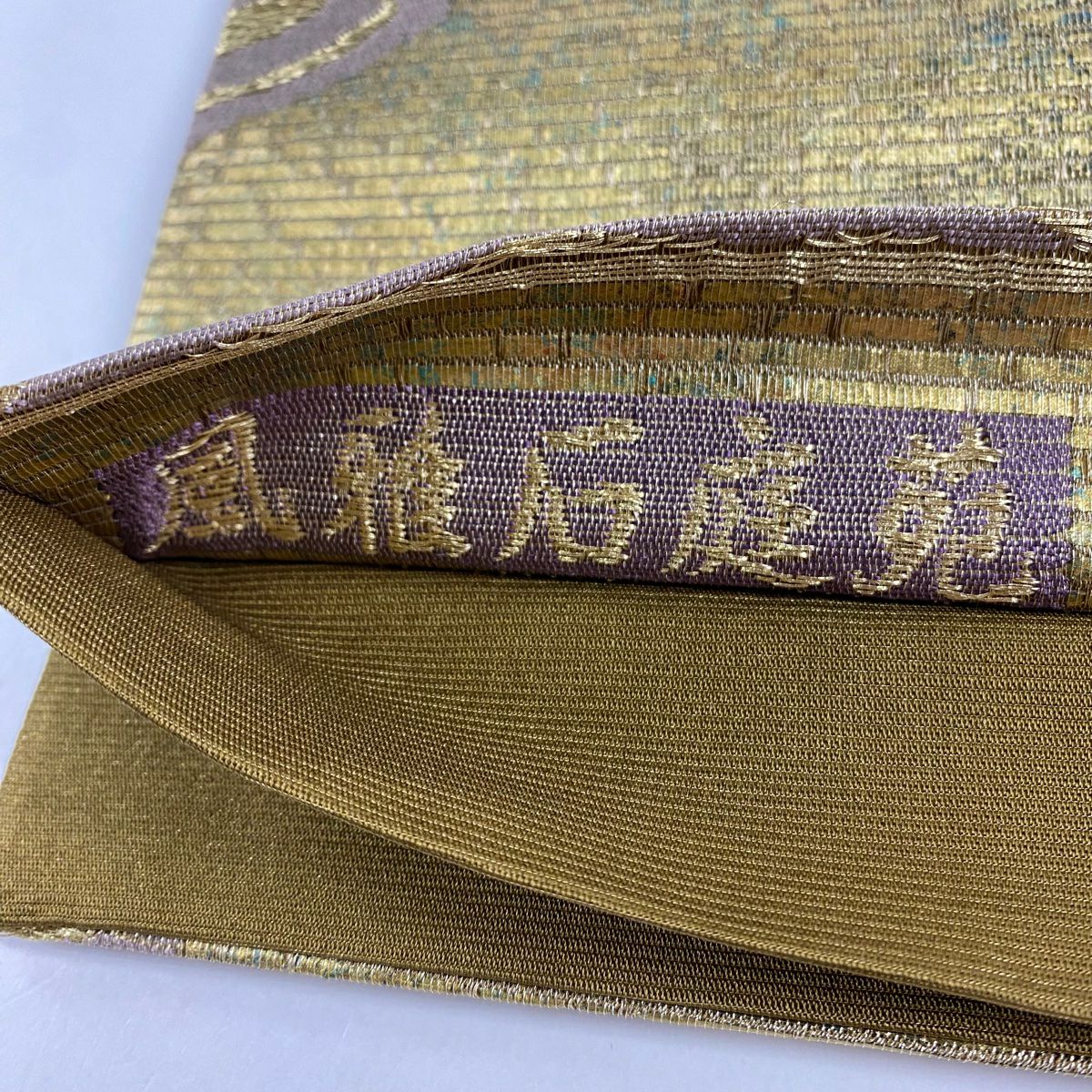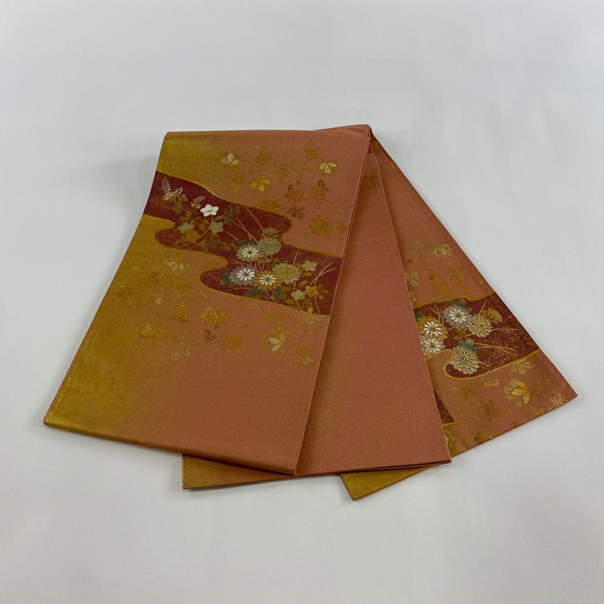 【在庫一掃】 【美品】 袋帯 秀品 草花 流水 金糸 箔 金茶 六通 正絹