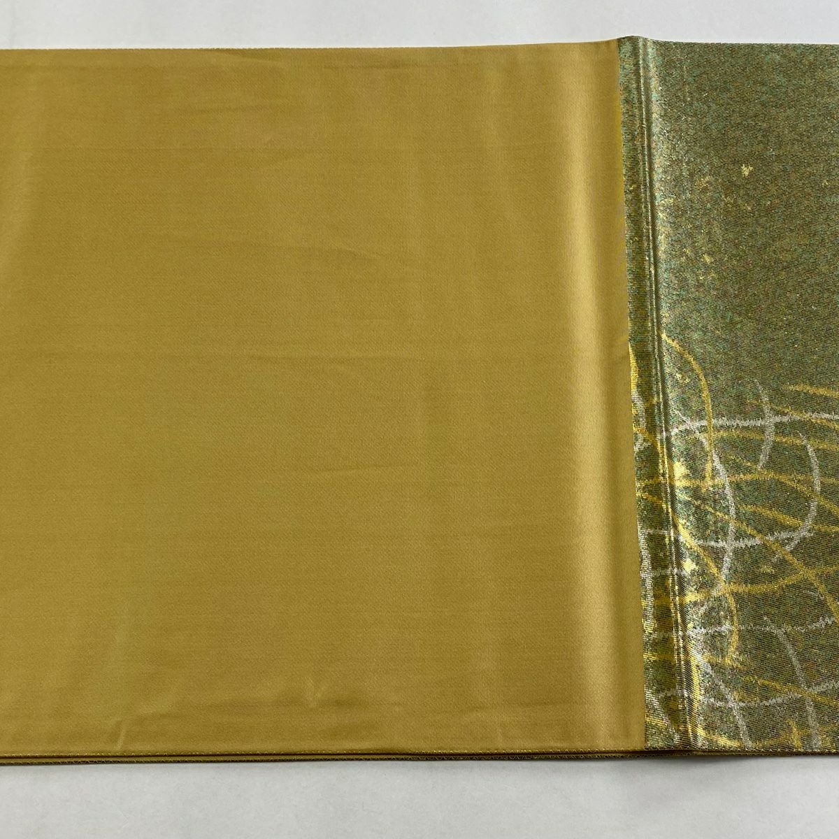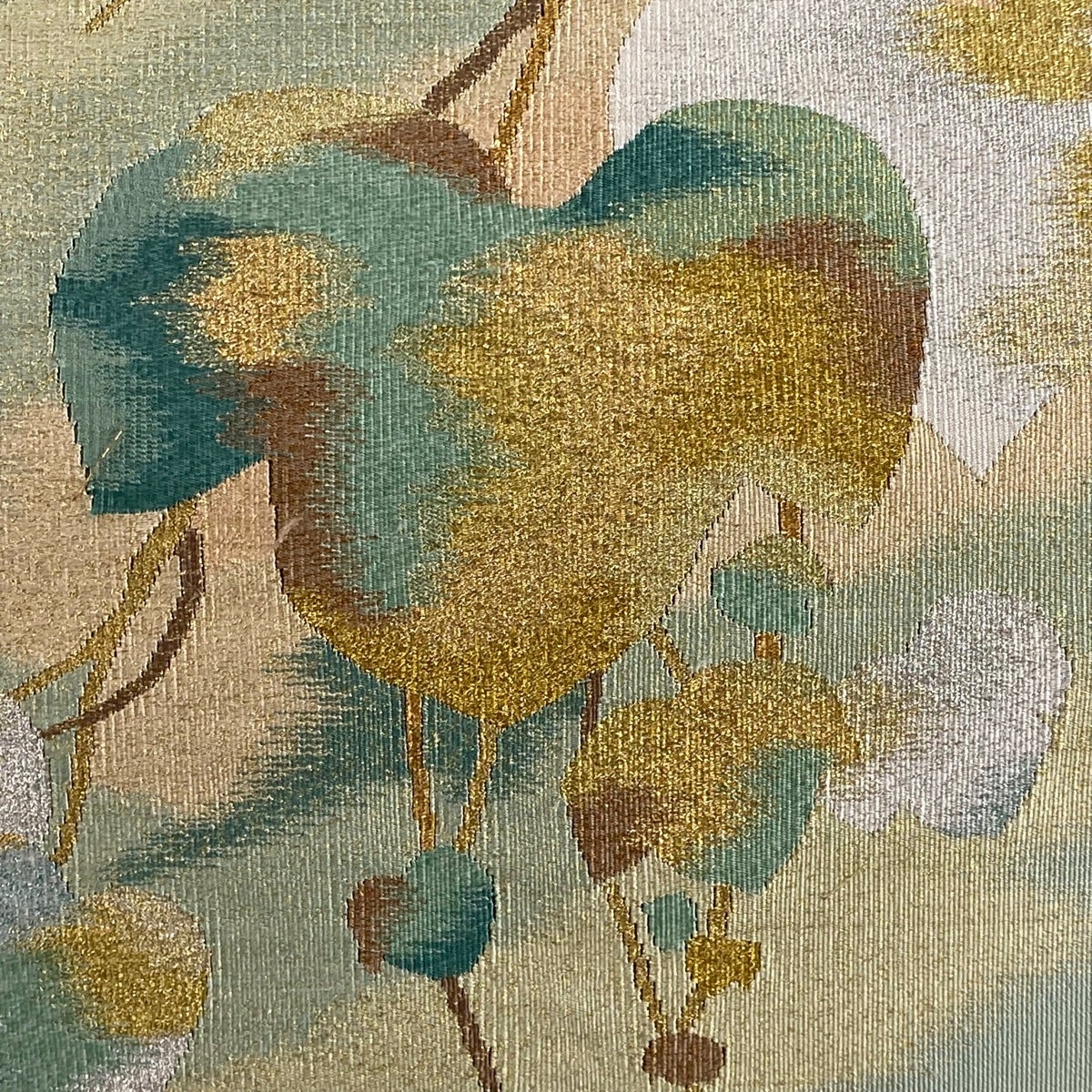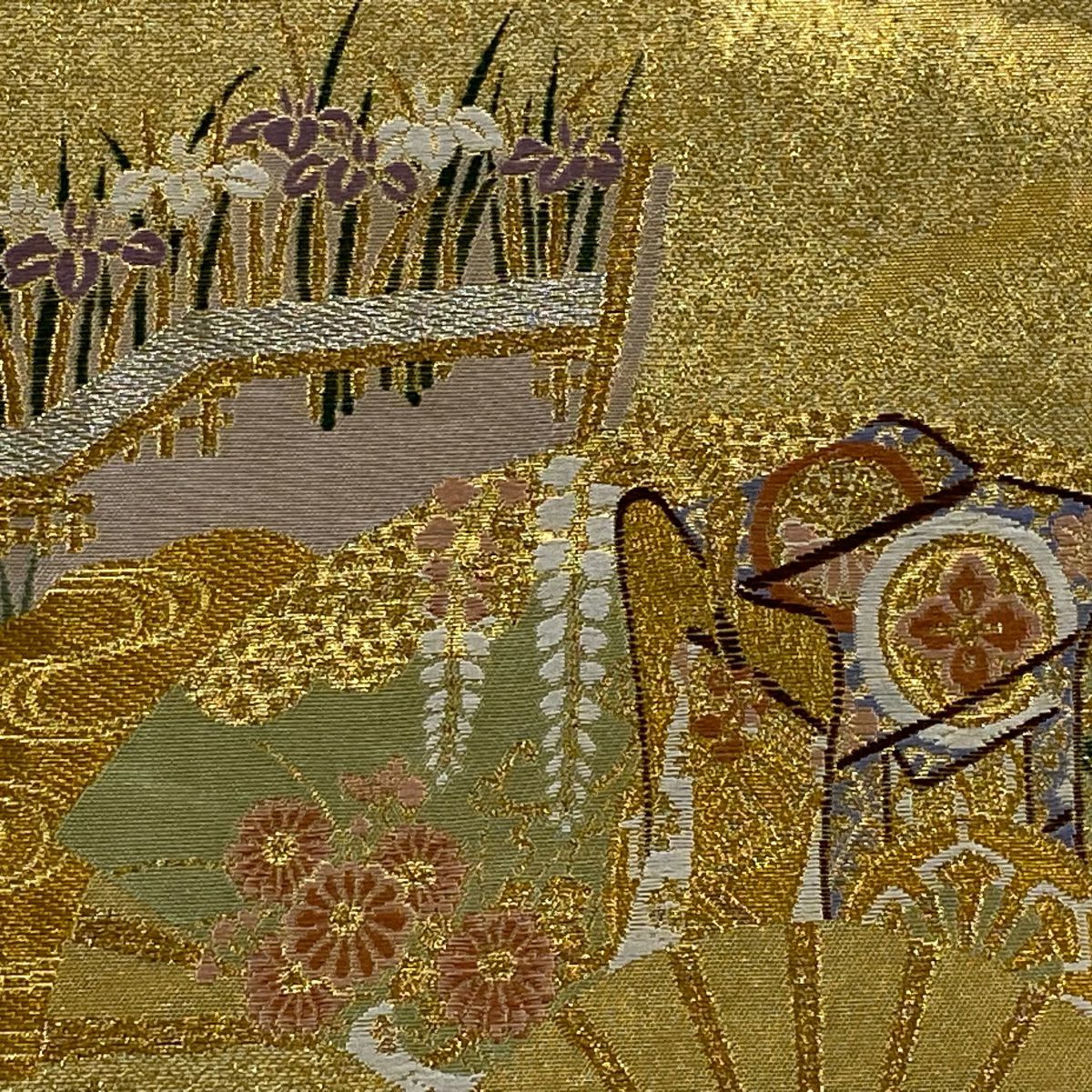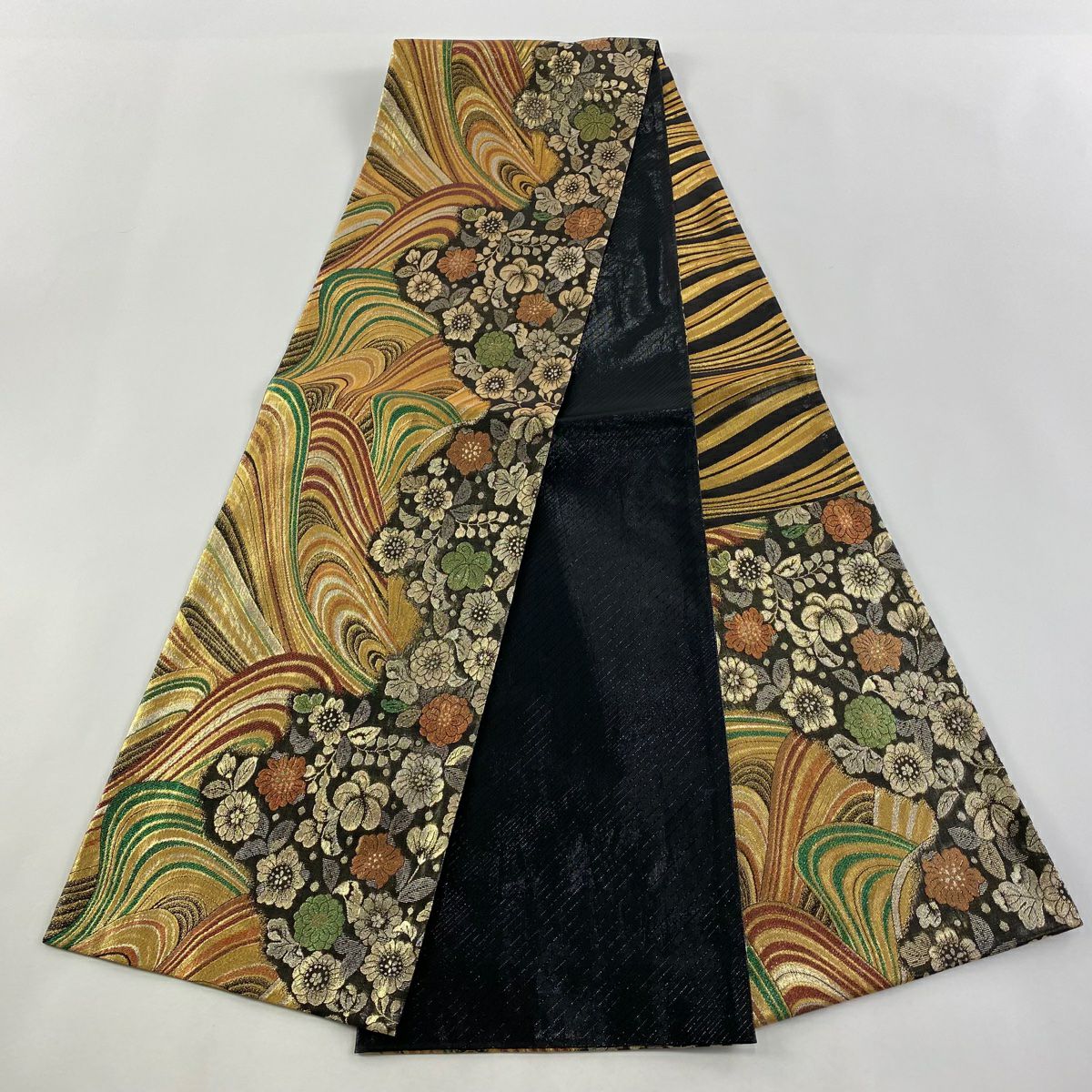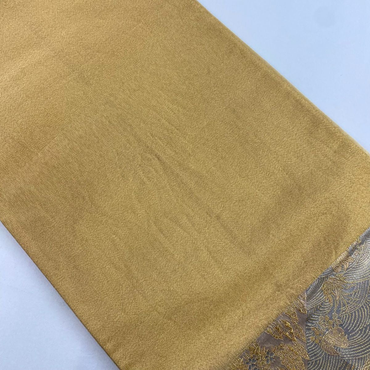 【在庫一掃】 【美品】 袋帯 秀品 草花 流水 金糸 箔 金茶 六通 正絹