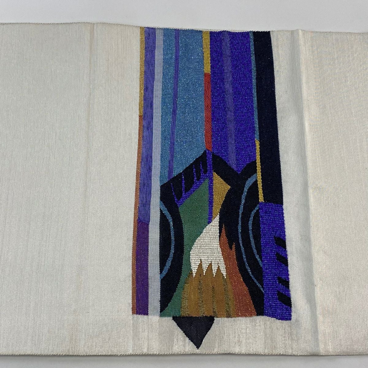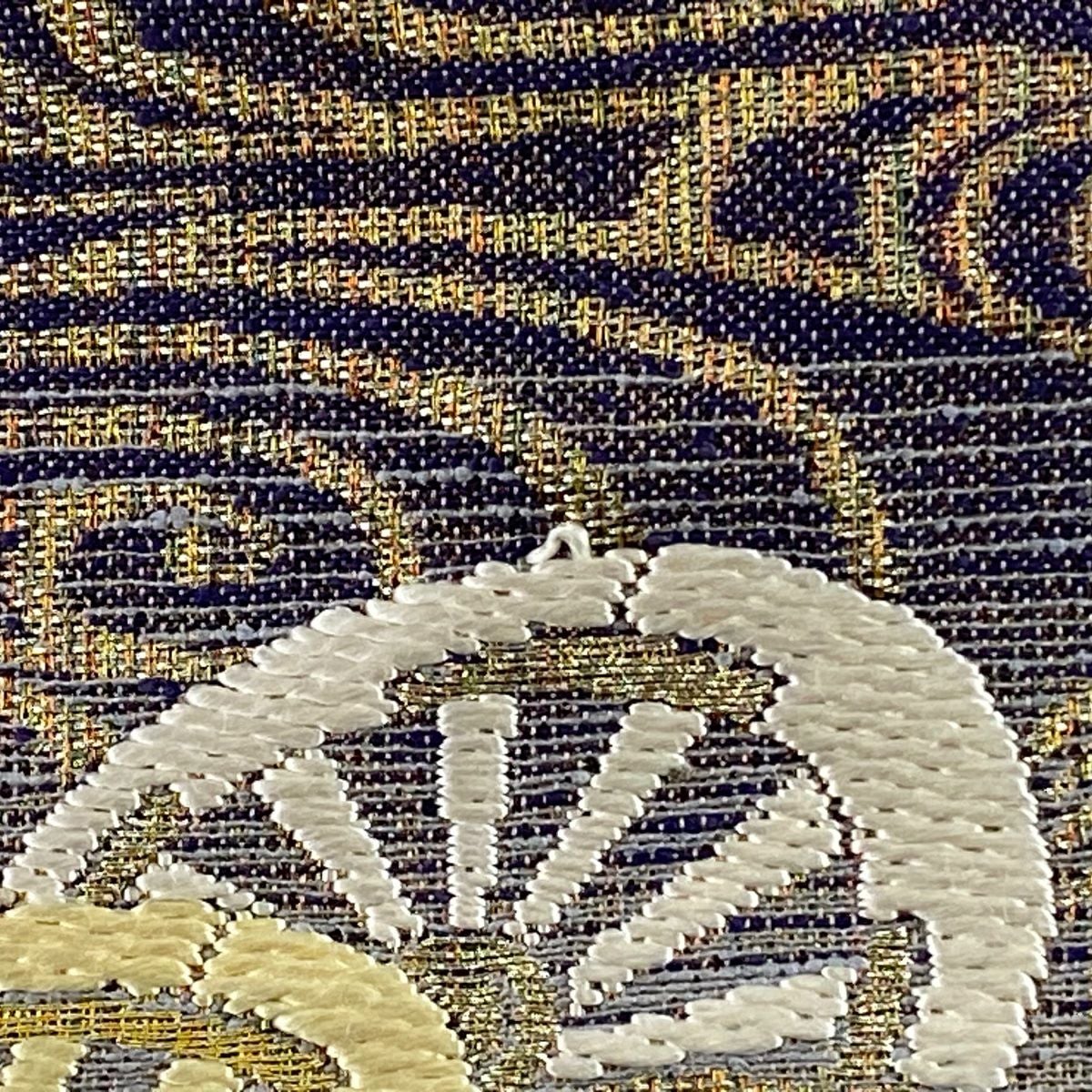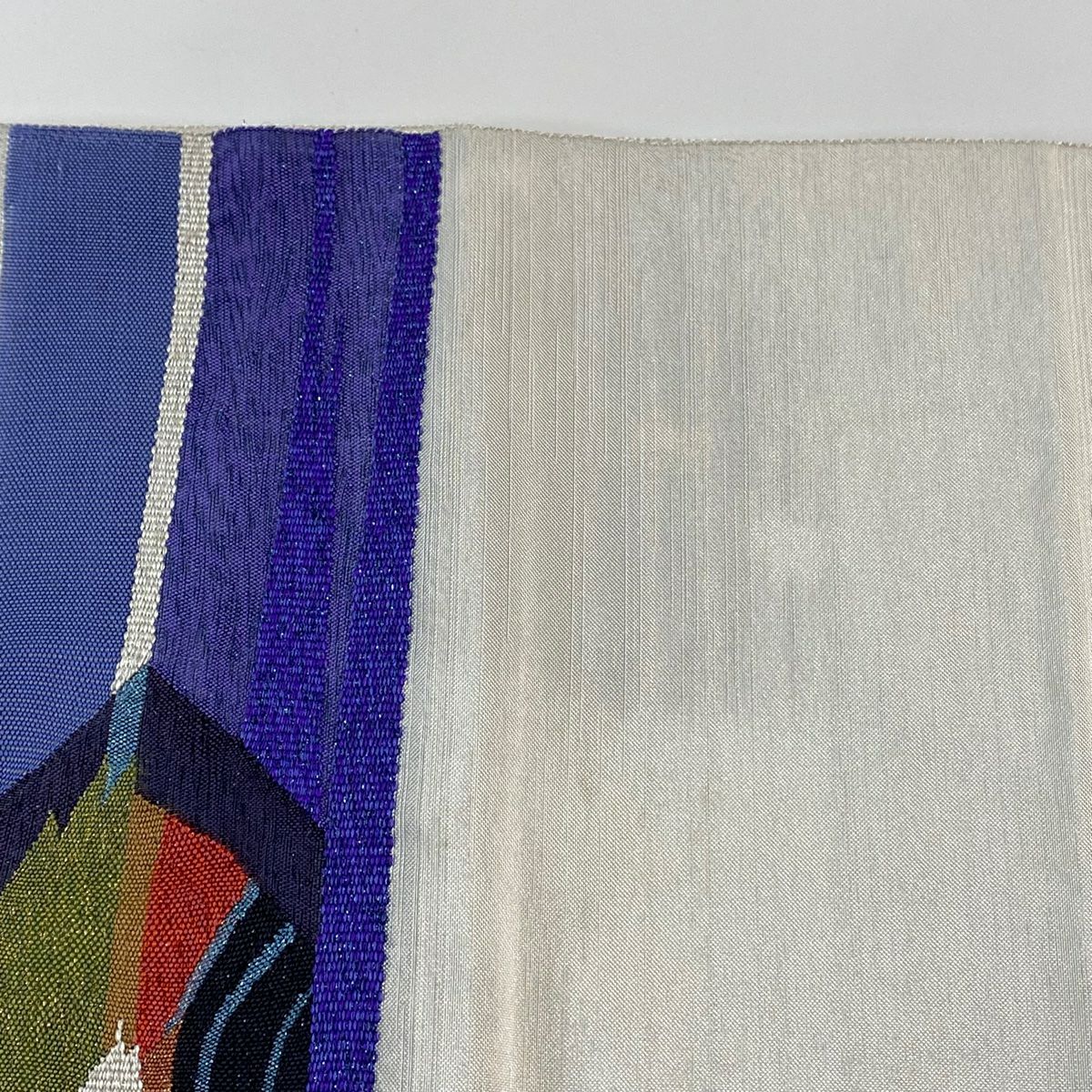 【在庫一掃】 【美品】 袋帯 秀品 梅 波頭 唐織 箔 銀色 全通 正絹