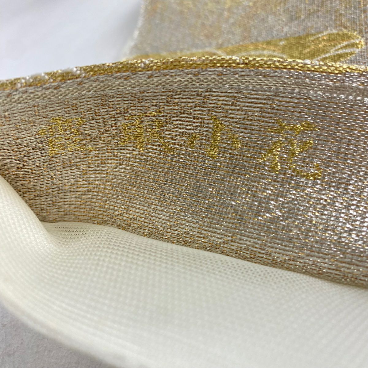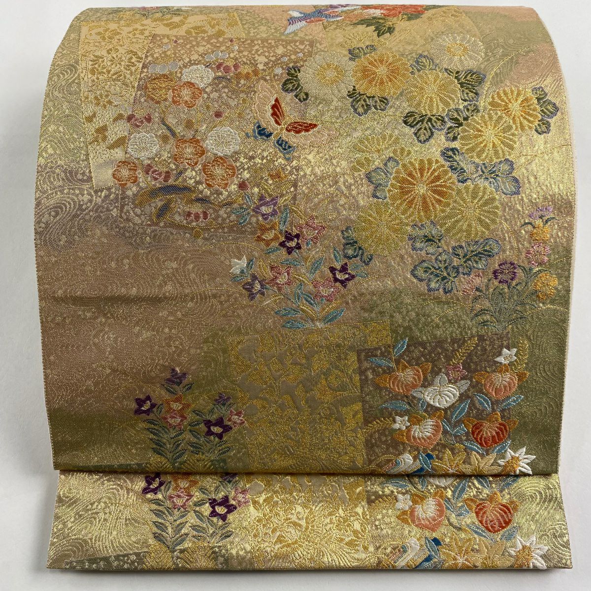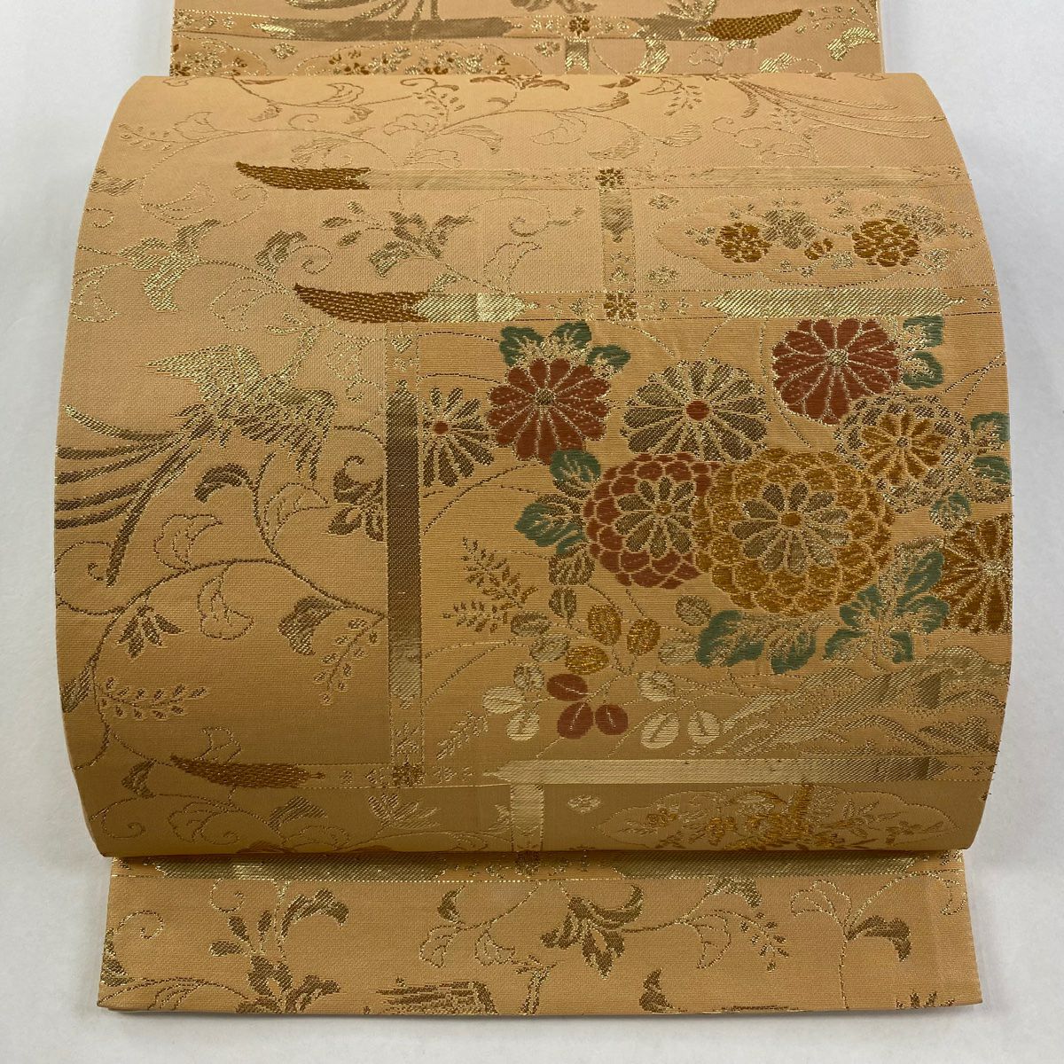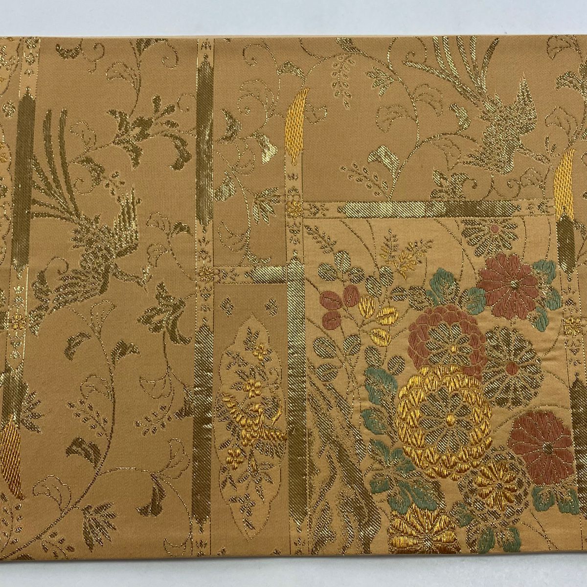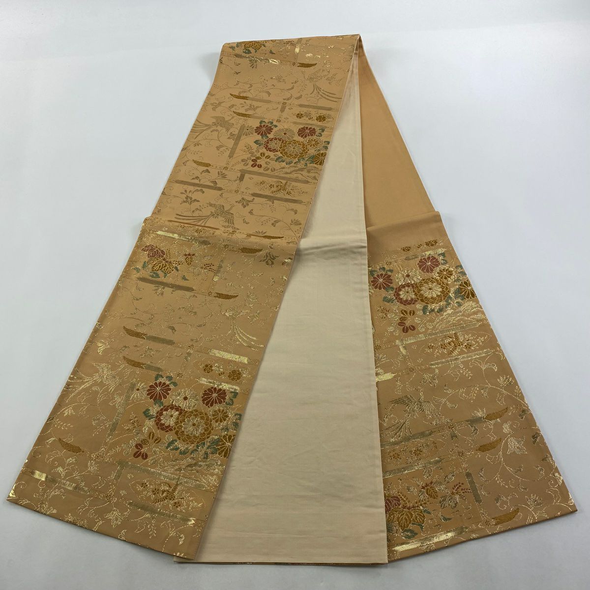 【在庫一掃】 袋帯 秀品 菊 枝梅 箔 唐織 ベージュ 六通 正絹