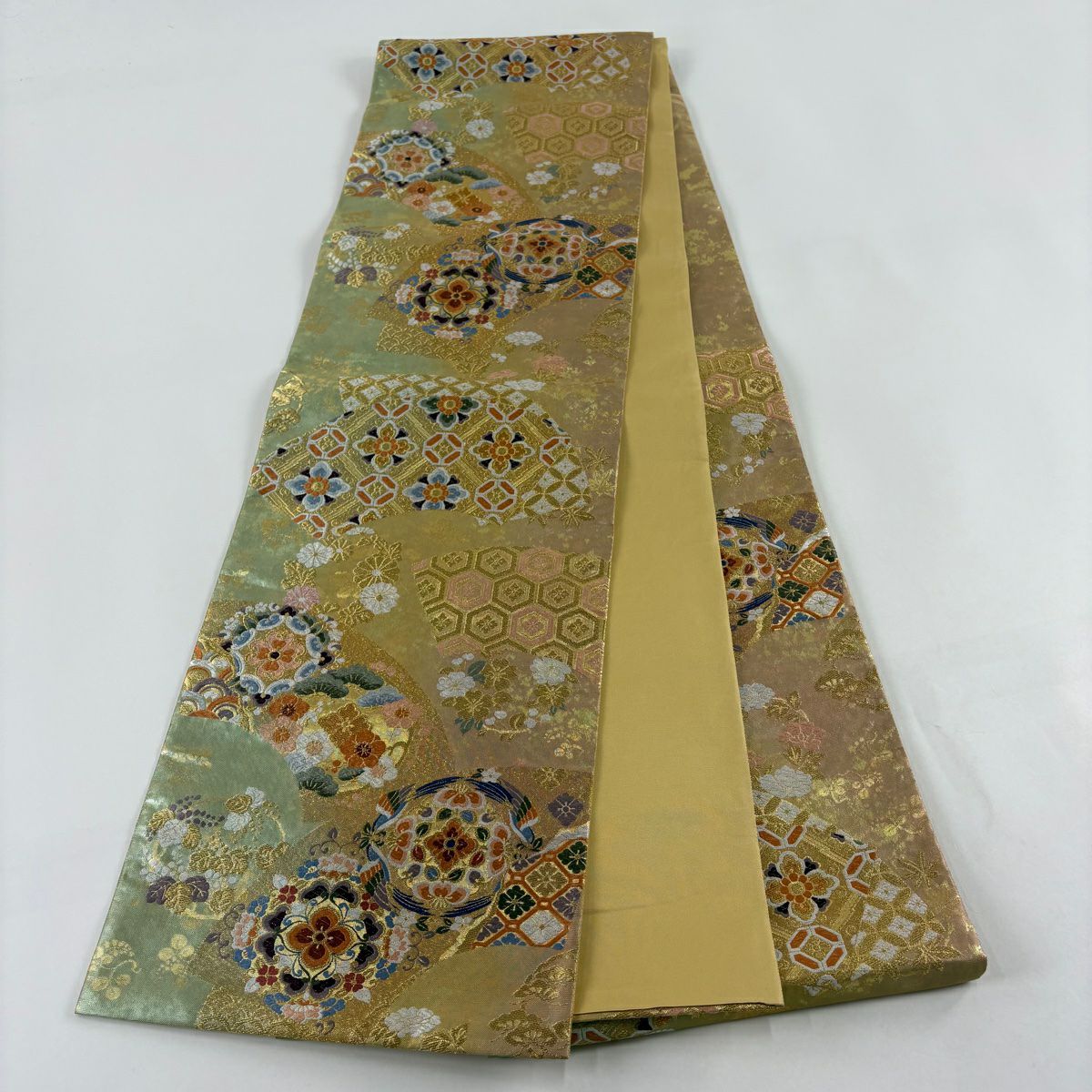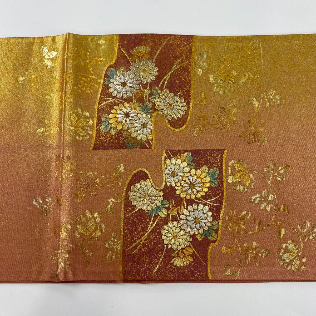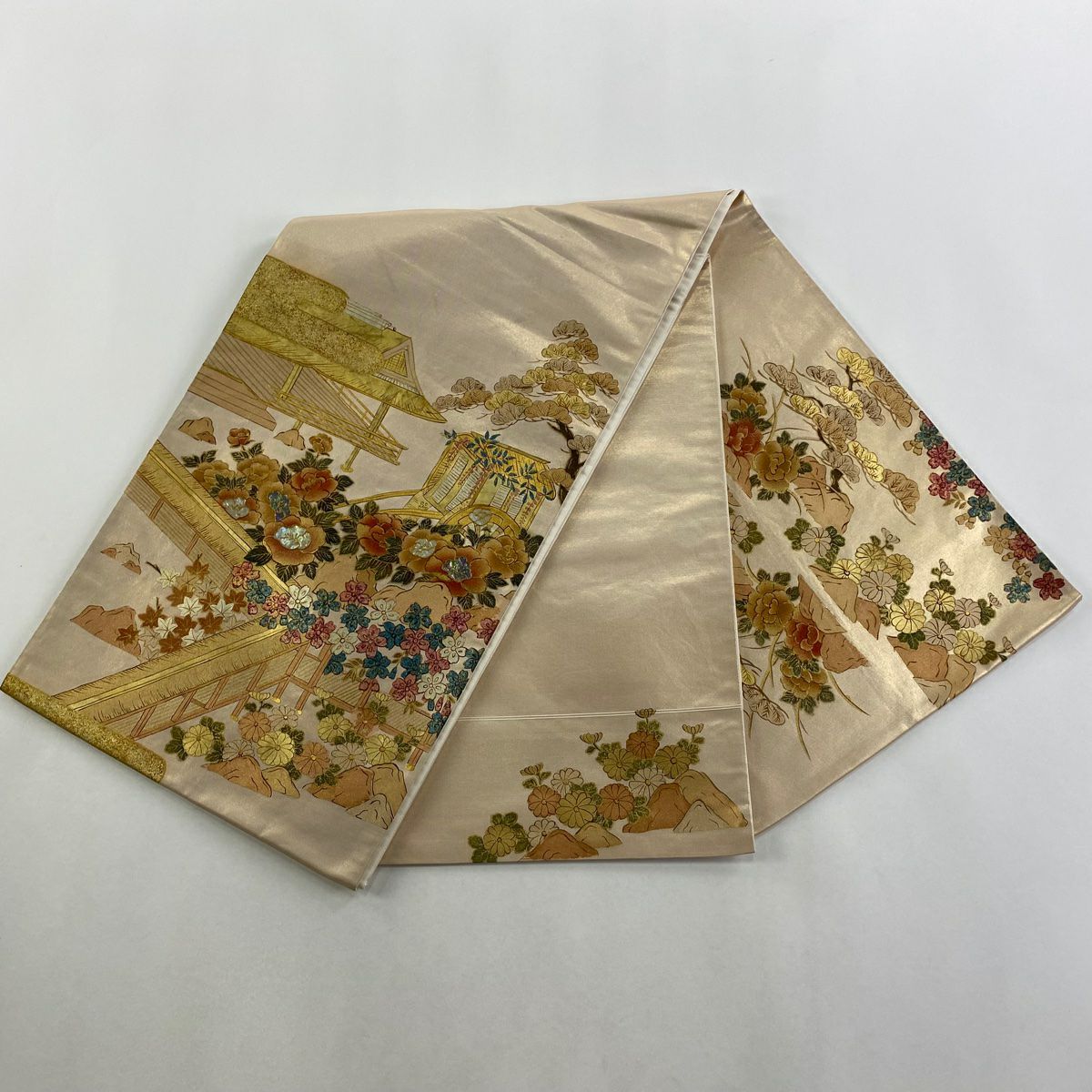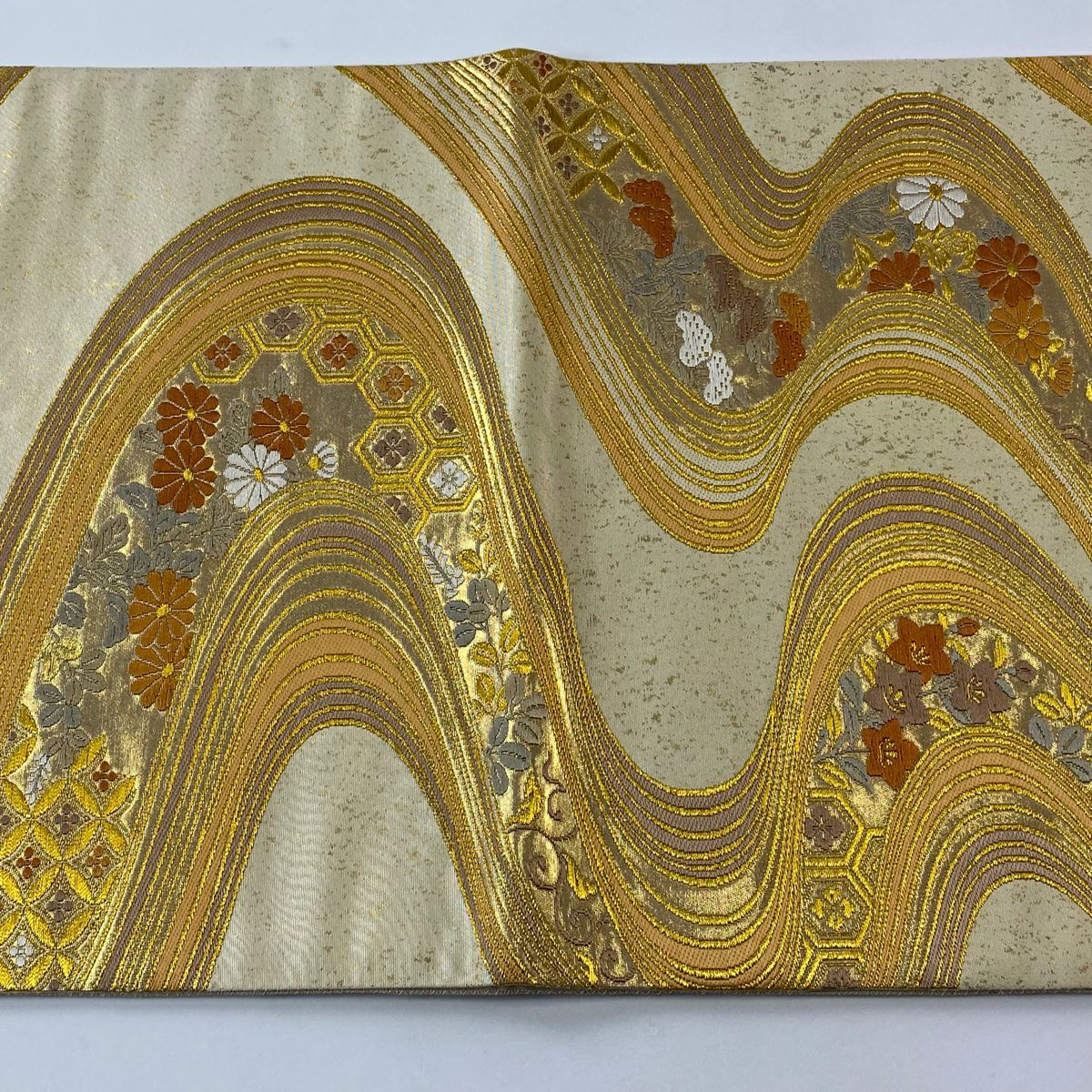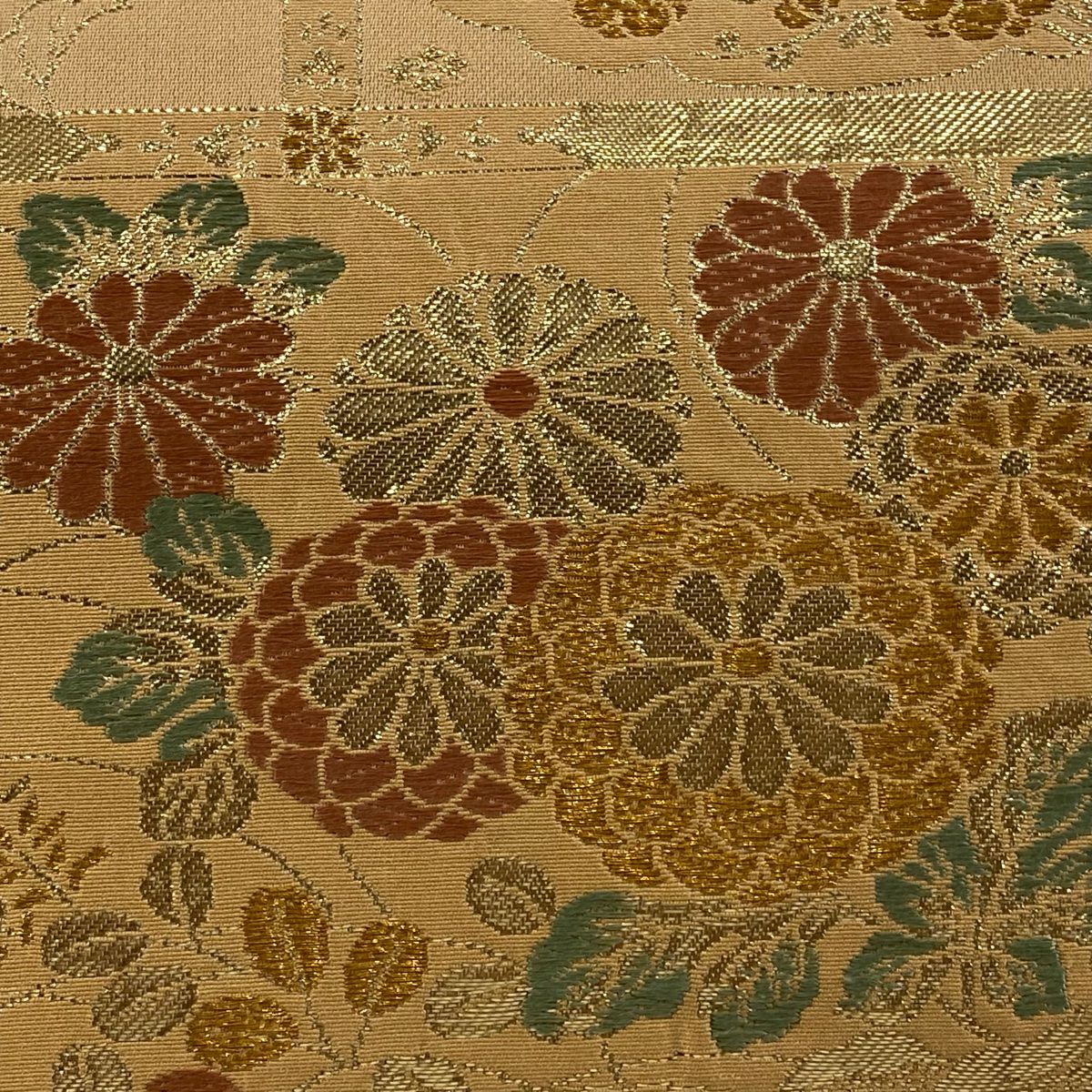 【在庫一掃】 袋帯 秀品 菊 枝梅 箔 唐織 ベージュ 六通 正絹