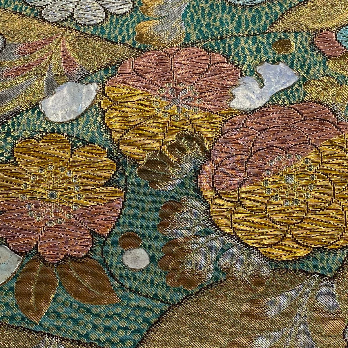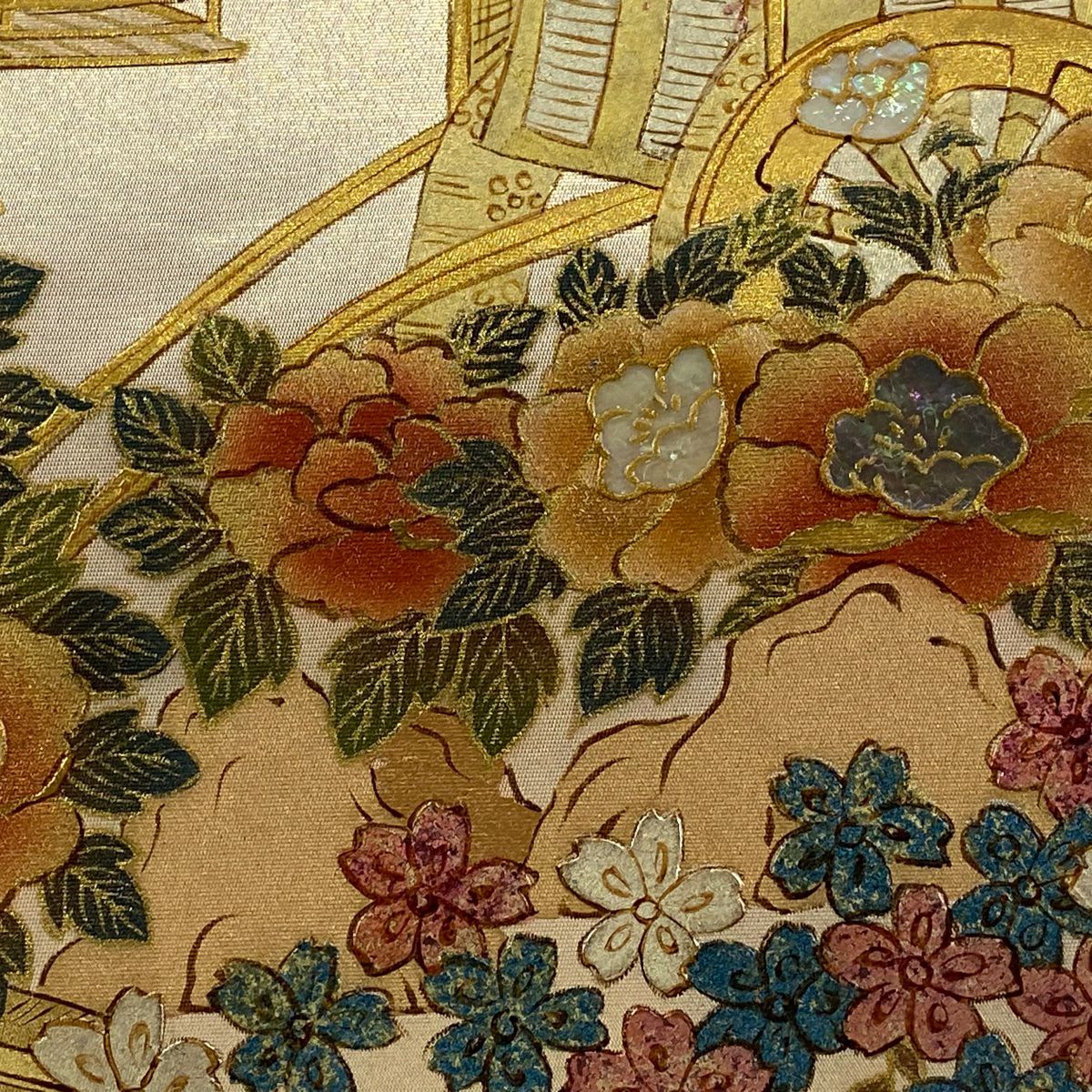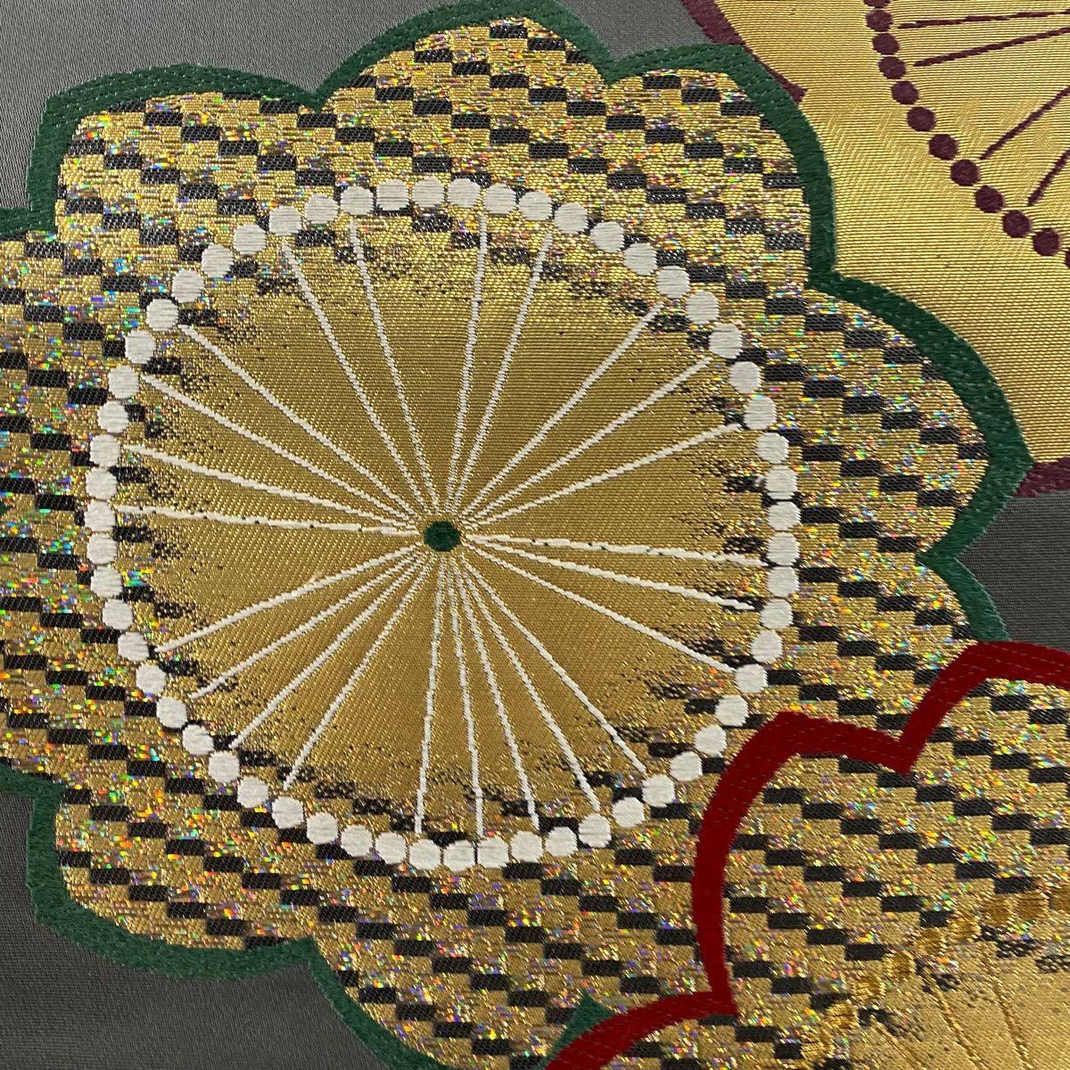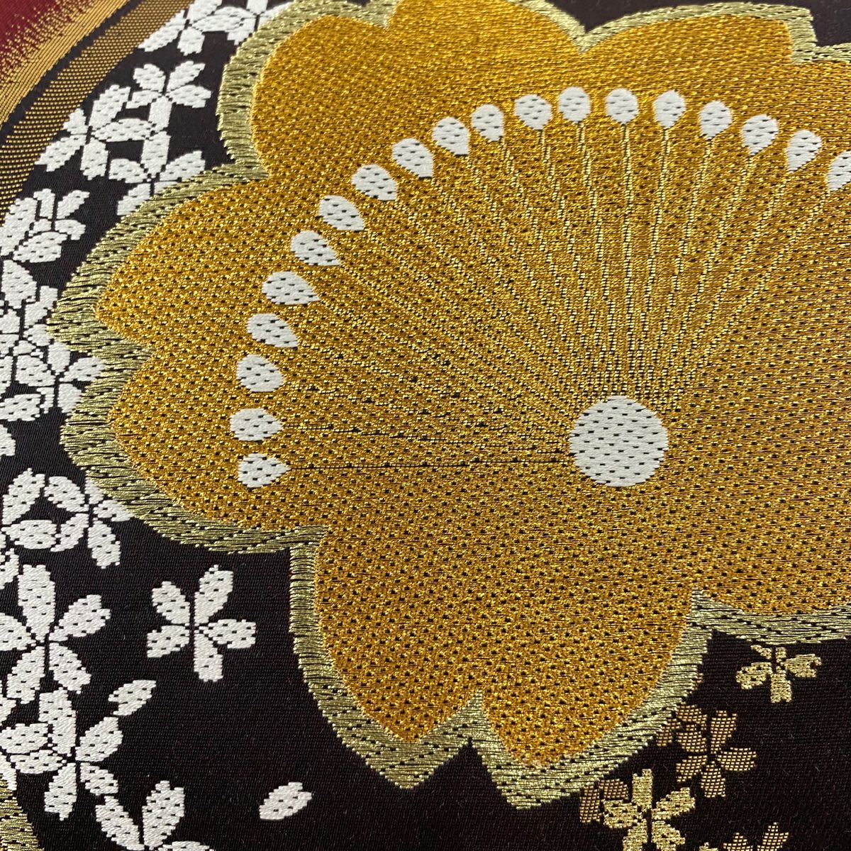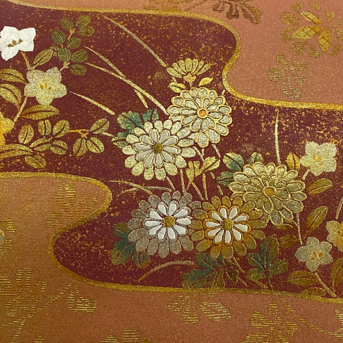 【在庫一掃】 袋帯 秀品 菊 枝梅 箔 唐織 ベージュ 六通 正絹